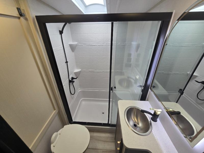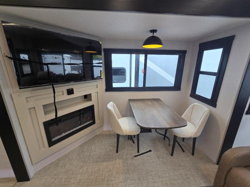 Whether you enjoy being outside or inside, this Wildwood Heritage Glen fifth wheel gives you the best of both! Imagine relaxing in a chair or on the tri-fold sofa and being able to look out panoramic windows at the scenery. Or, you might like to watch a show on the 50" LED TV with a fireplace below, and you can dine at the table and chairs that allows you to move the chairs if needed. The 16-cubic foot 12V refrigerator next to the pantry will allow you to stock up on ingredients and cold beverages for a long trip, and you will appreciate the custom king bed slide and the residential walk-in shower after being outside all day, even if just under the 13' awning. There is plenty of storage in the master bedroom and throughout, plus the XL Texas size pass-through compartment will surely come in handy for your charcoal, outdoor games, and such.