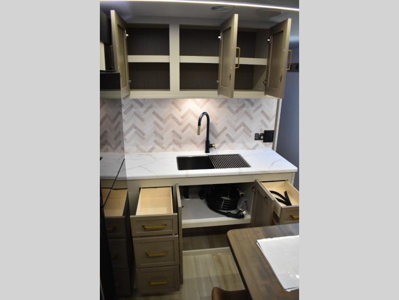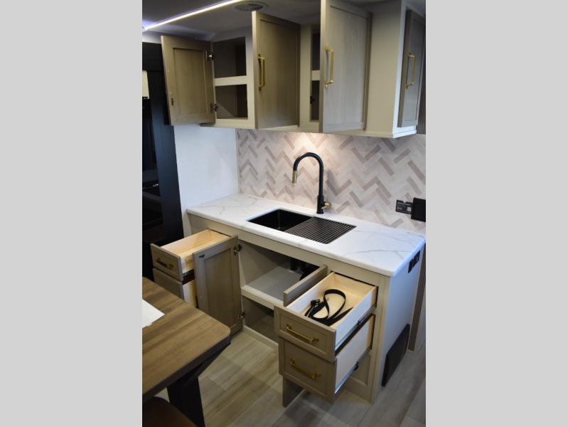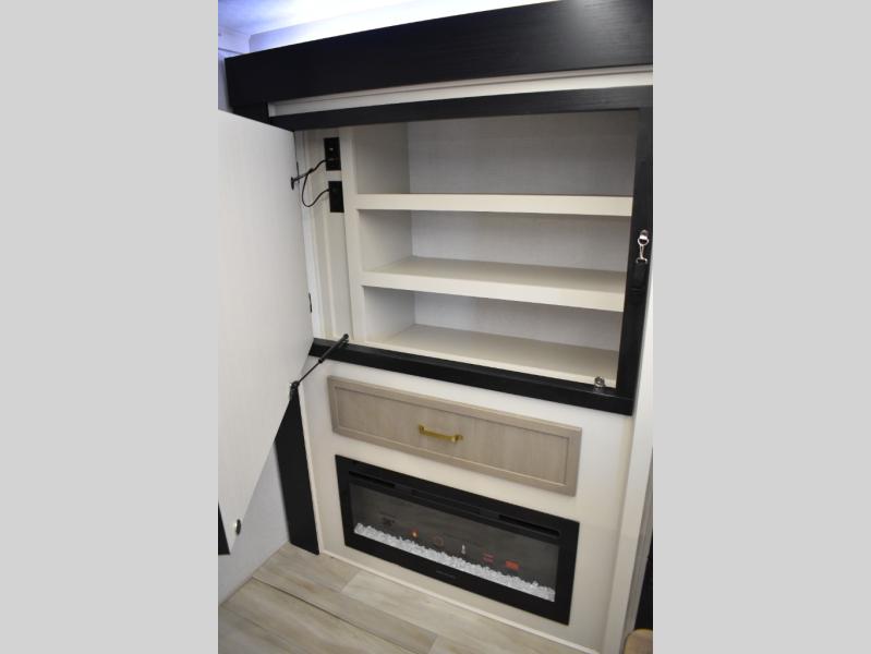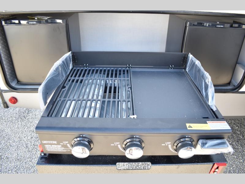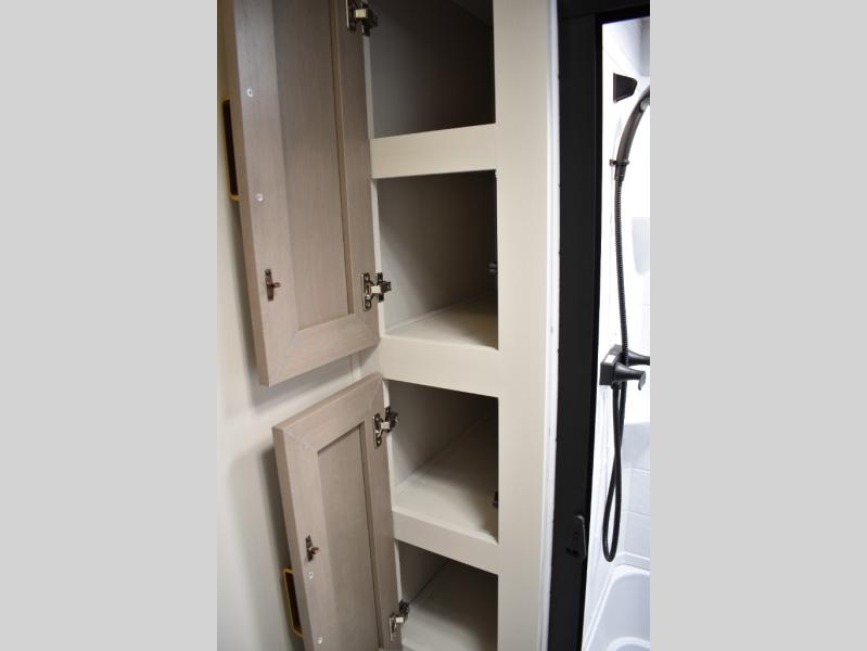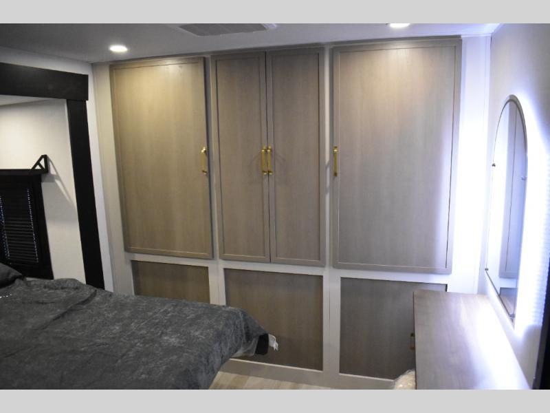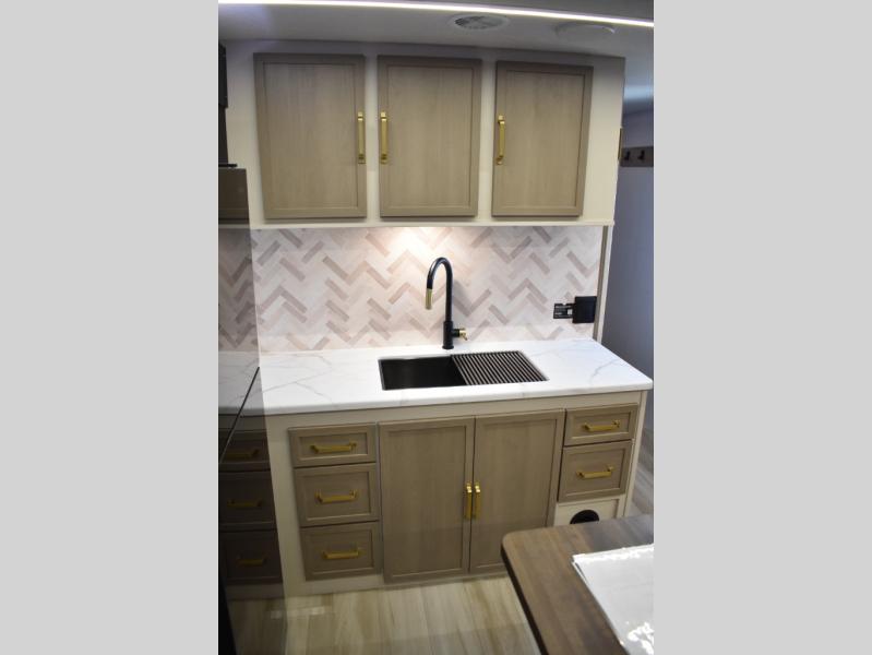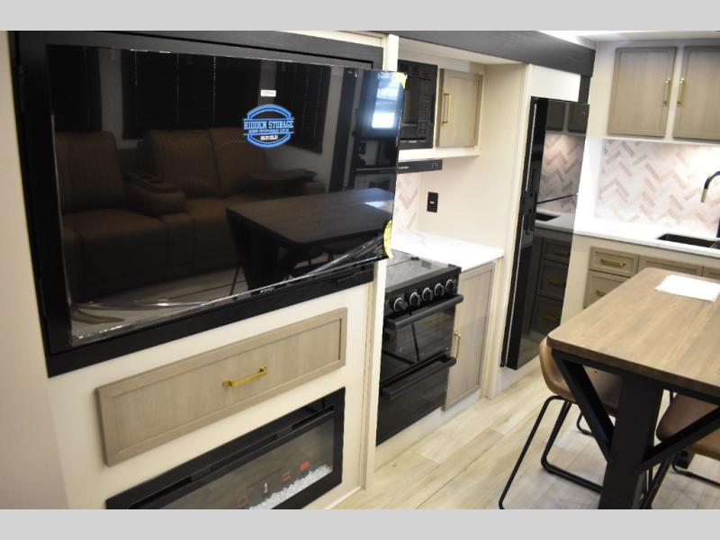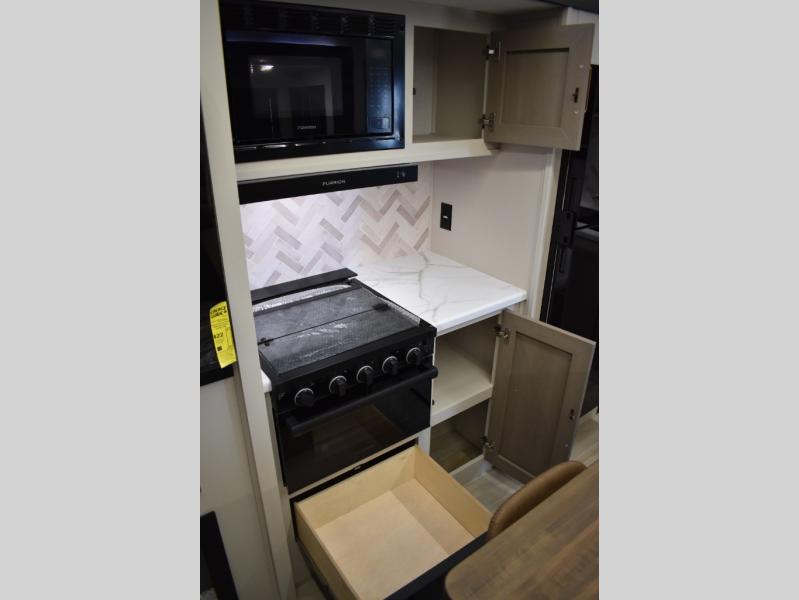 With any Wildwood Heritage Glen travel trailer by Forest River, the quality construction, attention to detail and design along with a bright and welcoming interior allows you to relax in comfort. Each model includes a WeatherShield one piece fiberglass roof, nitrogen-filled radial tires, and an enclosed underbelly with 12V tank heaters on all holding tanks for added protection. You will appreciate the on-demand tankless water heater, along with power stabilizer and tongue jacks, and an extra-large pass-thru storage with slam latch baggage doors. Head inside to enjoy matte gold hardware, wood door casings in place of plastic door casings, and an ultimate interior lighting upgrade with 4k puck/strip lights and a stylish LED back-lit bath mirror!