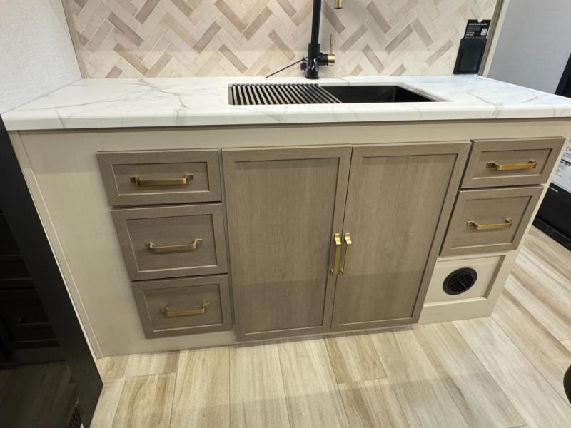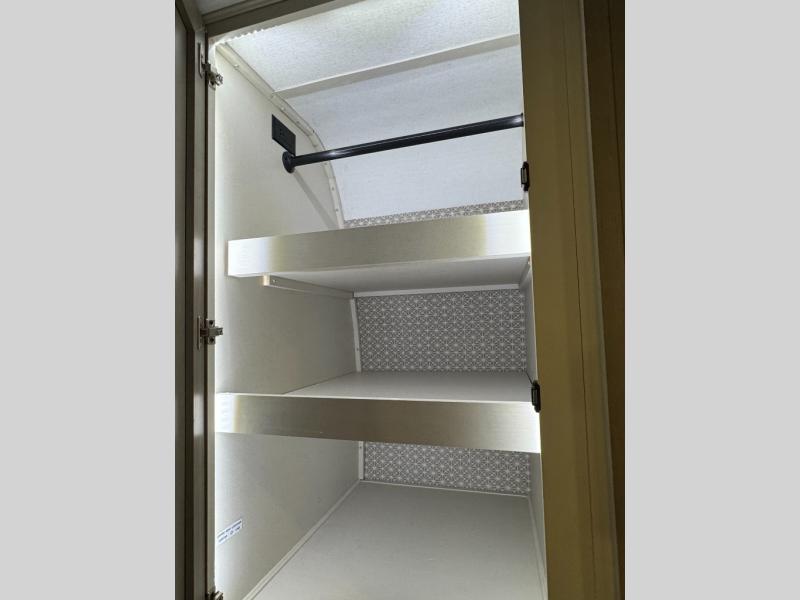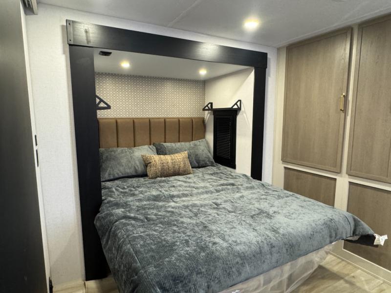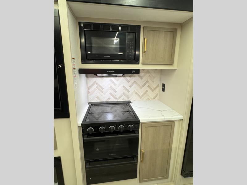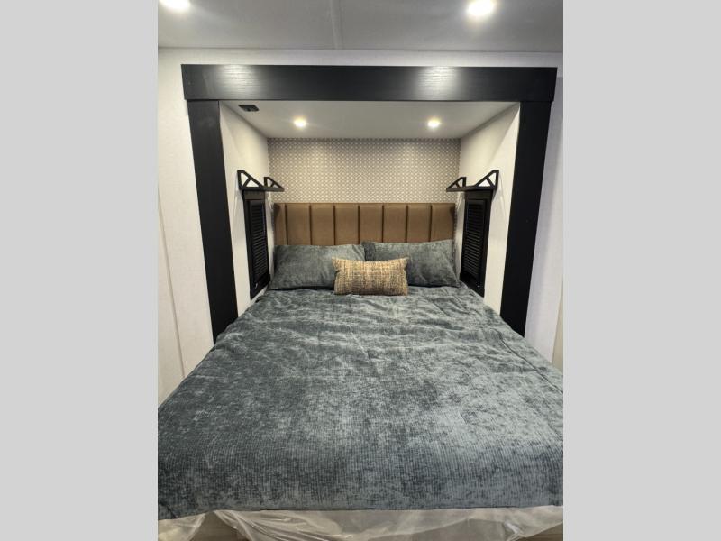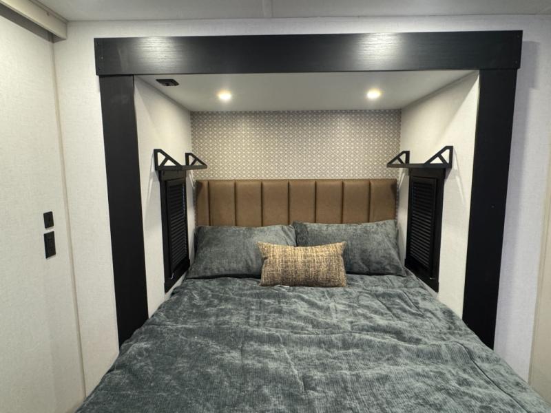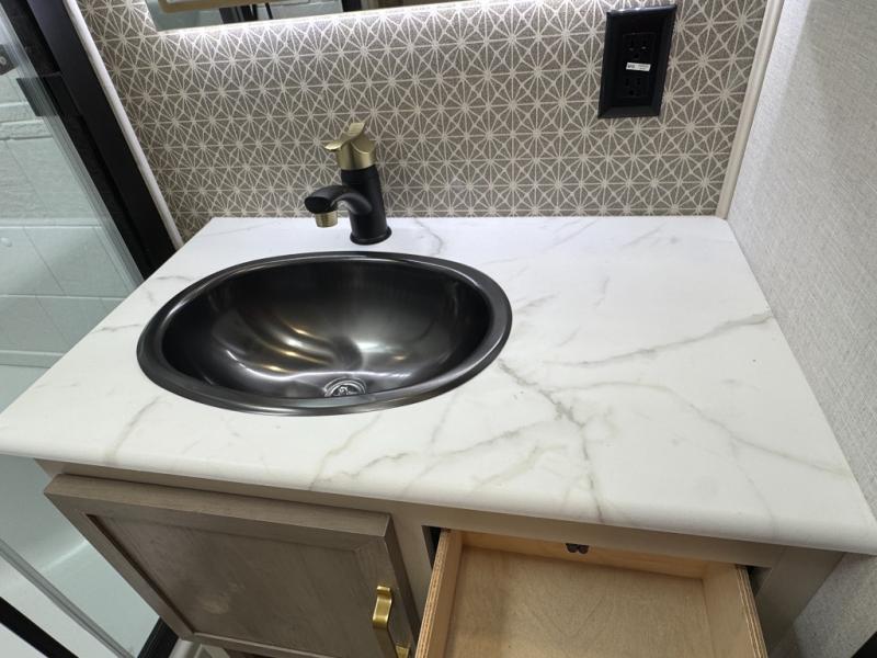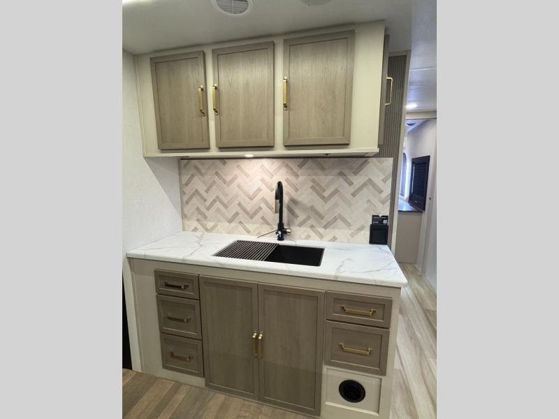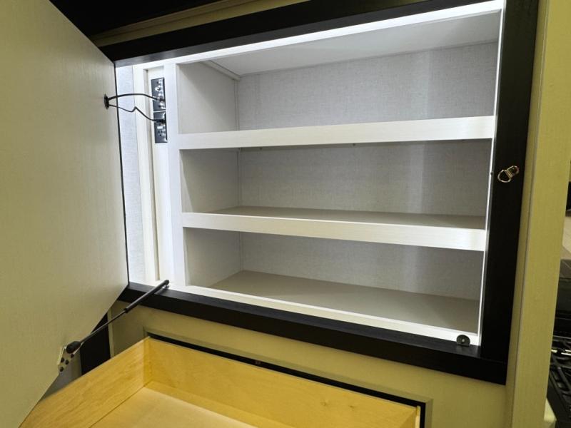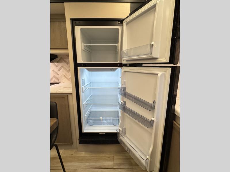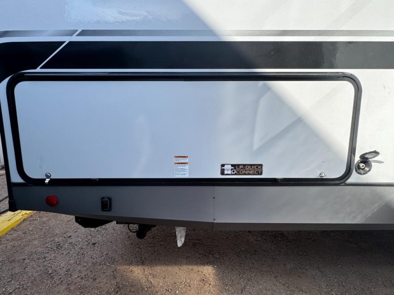 With any Wildwood Heritage Glen travel trailer by Forest River, the quality construction, attention to detail and design along with a bright and welcoming interior allows you to relax in comfort. Each model includes a WeatherShield one piece fiberglass roof, nitrogen-filled radial tires, and an enclosed underbelly with 12V tank heaters on all holding tanks for added protection. You will appreciate the on-demand tankless water heater, along with power stabilizer and tongue jacks, and an extra-large pass-thru storage with slam latch baggage doors. Head inside to enjoy matte gold hardware, wood door casings in place of plastic door casings, and an ultimate interior lighting upgrade with 4k puck/strip lights and a stylish LED back-lit bath mirror!