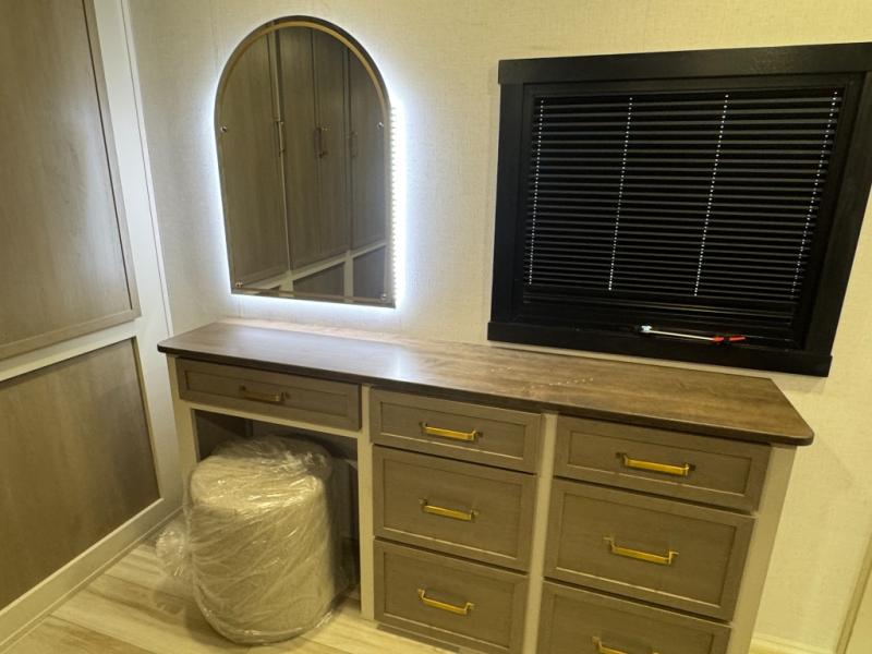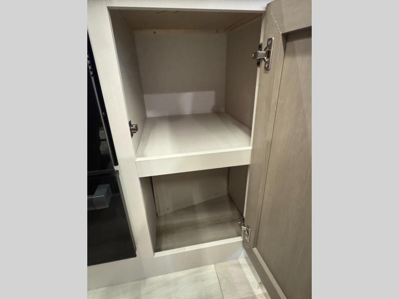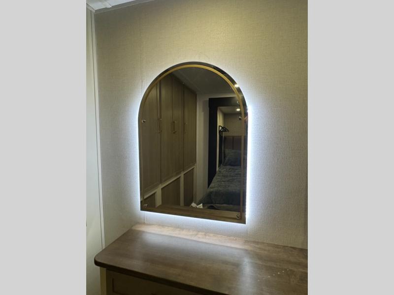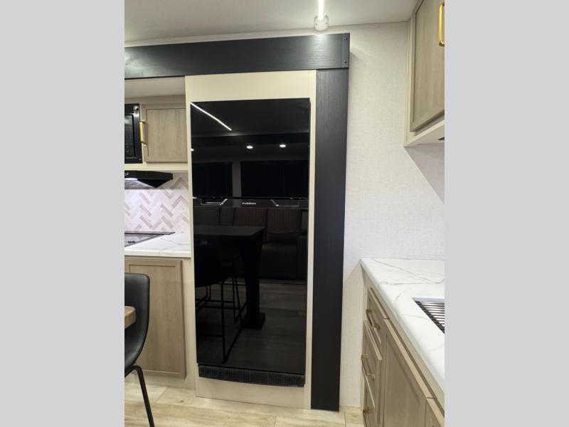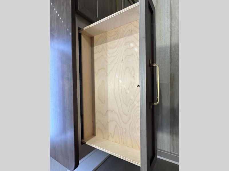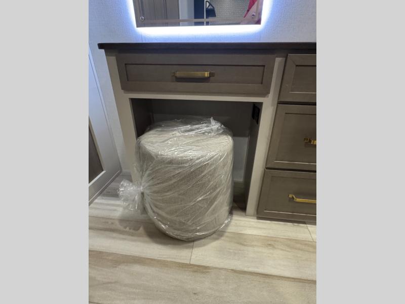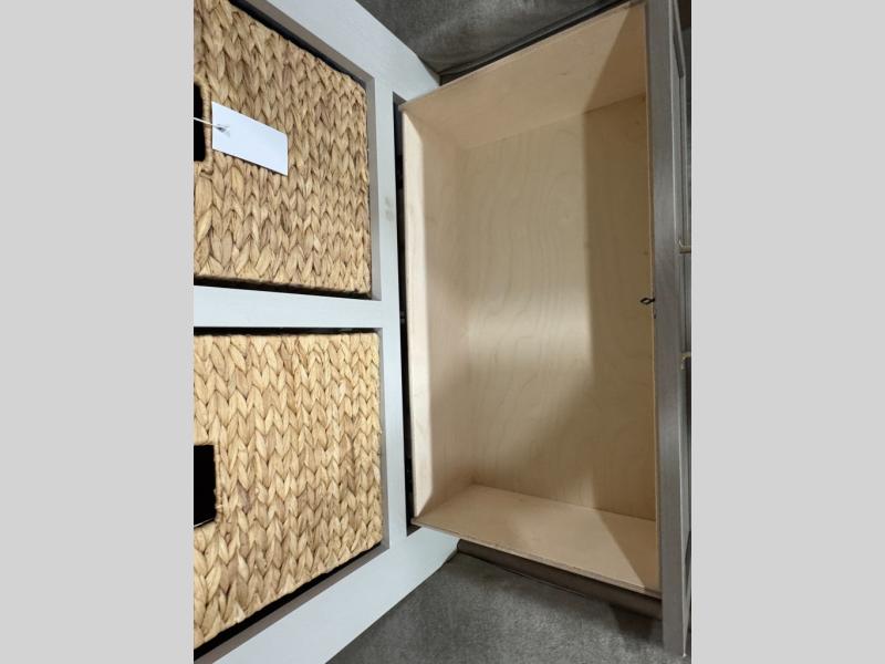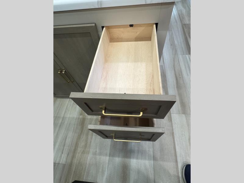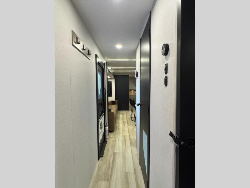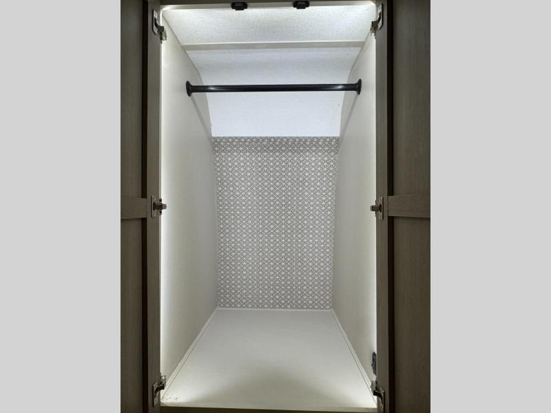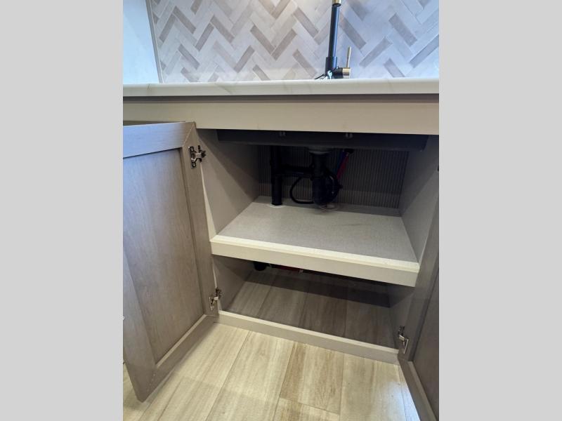 With any Wildwood Heritage Glen travel trailer by Forest River, the quality construction, attention to detail and design along with a bright and welcoming interior allows you to relax in comfort. Each model includes a WeatherShield one piece fiberglass roof, nitrogen-filled radial tires, and an enclosed underbelly with 12V tank heaters on all holding tanks for added protection. You will appreciate the on-demand tankless water heater, along with power stabilizer and tongue jacks, and an extra-large pass-thru storage with slam latch baggage doors. Head inside to enjoy matte gold hardware, wood door casings in place of plastic door casings, and an ultimate interior lighting upgrade with 4k puck/strip lights and a stylish LED back-lit bath mirror!