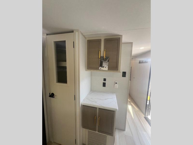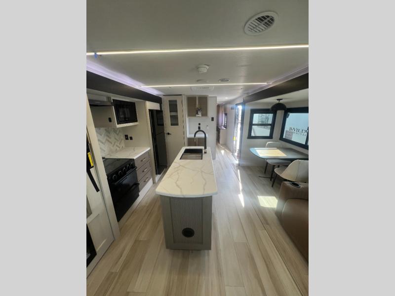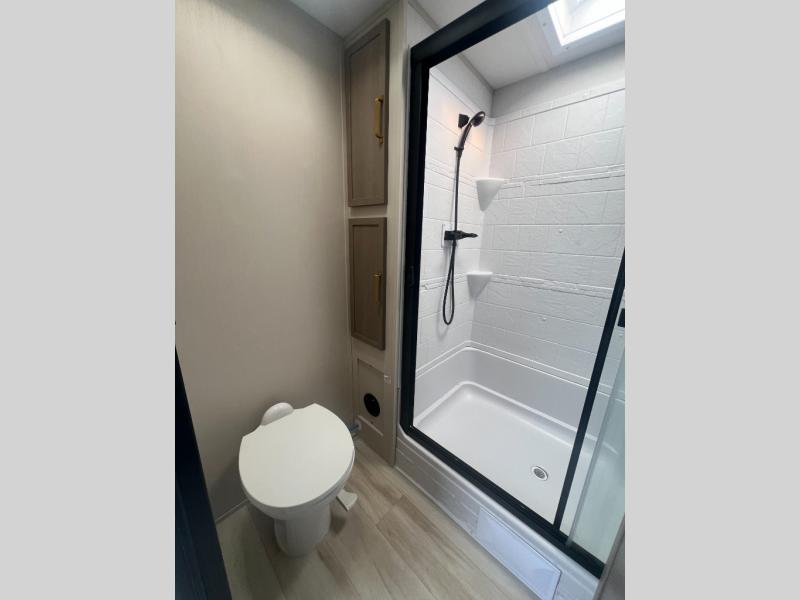 With any Wildwood Heritage Glen travel trailer by Forest River, the quality construction, attention to detail and design along with a bright and welcoming interior allows you to relax in comfort with conveniences while exploring outdoors. Each model includes a WeatherShield one piece fiberglass roof, Maxxis radial tires, and an enclosed underbelly with 12V tank heaters on all holding tanks for added protection. You will appreciate the on-demand tankless water heater, along with the 15K BTU Quite Cool A/C and 50 Amp service with a brace for a second A/C. There is an outside shower with hot and cold water, solar prep, a power tongue jack, plus many more exterior conveniences. Head inside to enjoy matte gold hardware, wood door casings in place of plastic door casings, and full length barreled ceilings for additional head room.
