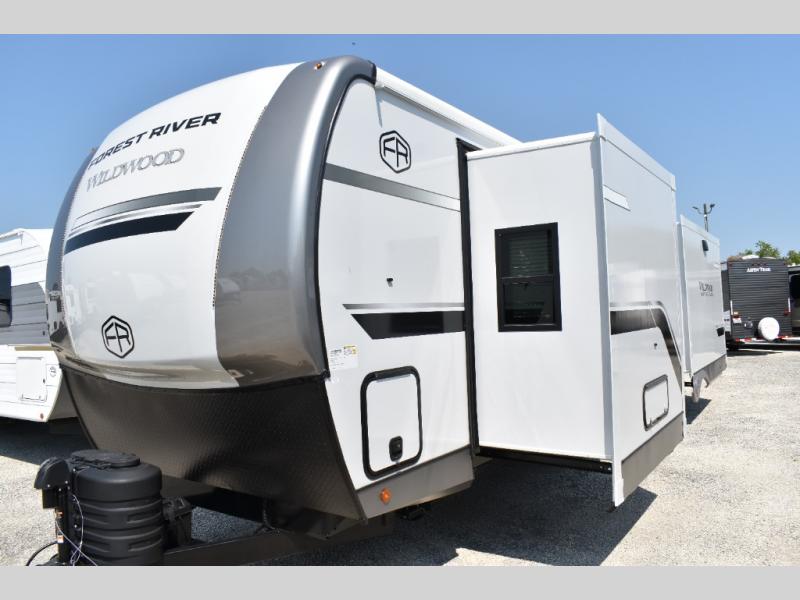 With any Wildwood Heritage Glen travel trailer by Forest River, the quality construction, attention to detail and design along with a bright and welcoming interior allows you to relax in comfort with conveniences while exploring outdoors. Each model includes a WeatherShield one piece fiberglass roof, Maxxis radial tires, and an enclosed underbelly with 12V tank heaters on all holding tanks for added protection. You will appreciate the on-demand tankless water heater, along with the 15K BTU Quite Cool A/C and 50 Amp service with a brace for a second A/C. There is an outside shower with hot and cold water, solar prep, a power tongue jack, plus many more exterior conveniences. Head inside to enjoy matte gold hardware, wood door casings in place of plastic door casings, and full length barreled ceilings for additional head room.