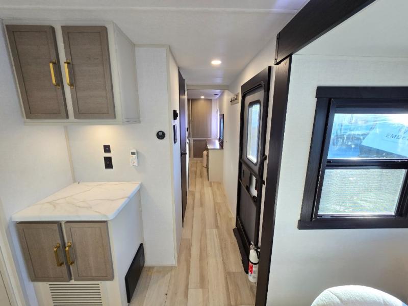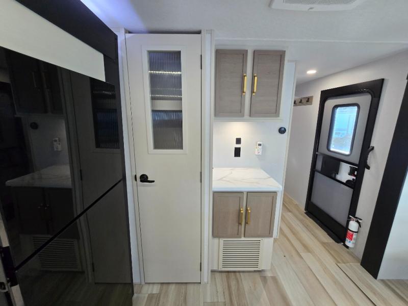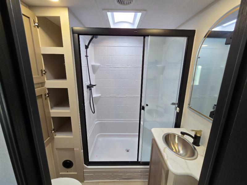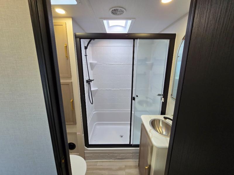 With any Wildwood Heritage Glen travel trailer by Forest River, the quality construction, attention to detail and design along with a bright and welcoming interior allows you to relax in comfort with conveniences while exploring outdoors. Each model includes a WeatherShield one piece fiberglass roof, Maxxis radial tires, and an enclosed underbelly with 12V tank heaters on all holding tanks for added protection. You will appreciate the on-demand tankless water heater, along with the 15K BTU Quite Cool A/C and 50 Amp service with a brace for a second A/C. There is an outside shower with hot and cold water, solar prep, a power tongue jack, plus many more exterior conveniences. Head inside to enjoy matte gold hardware, wood door casings in place of plastic door casings, and full length barreled ceilings for additional head room.