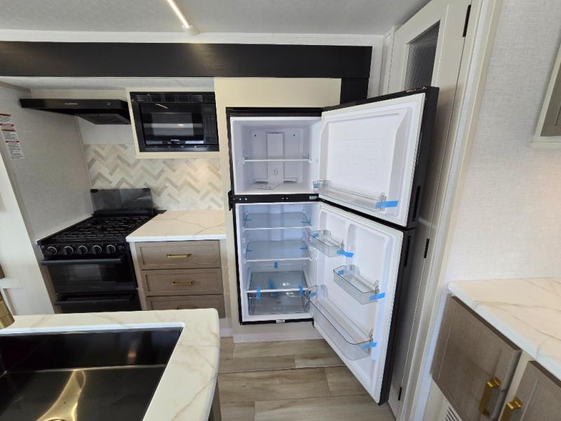 With any Wildwood Heritage Glen travel trailer by Forest River, the quality construction, attention to detail and design along with a bright and welcoming interior allows you to relax in comfort with conveniences while exploring outdoors. Each model includes a WeatherShield one piece fiberglass roof, Maxxis radial tires, and an enclosed underbelly with 12V tank heaters on all holding tanks for added protection. You will appreciate the on-demand tankless water heater, along with the 15K BTU Quite Cool A/C and 50 Amp service with a brace for a second A/C. There is an outside shower with hot and cold water, solar prep, a power tongue jack, plus many more exterior conveniences. Head inside to enjoy matte gold hardware, wood door casings in place of plastic door casings, and full length barreled ceilings for additional head room.