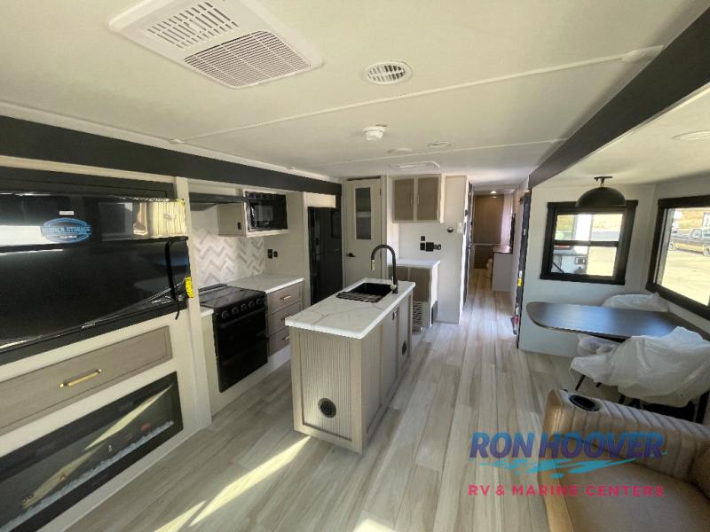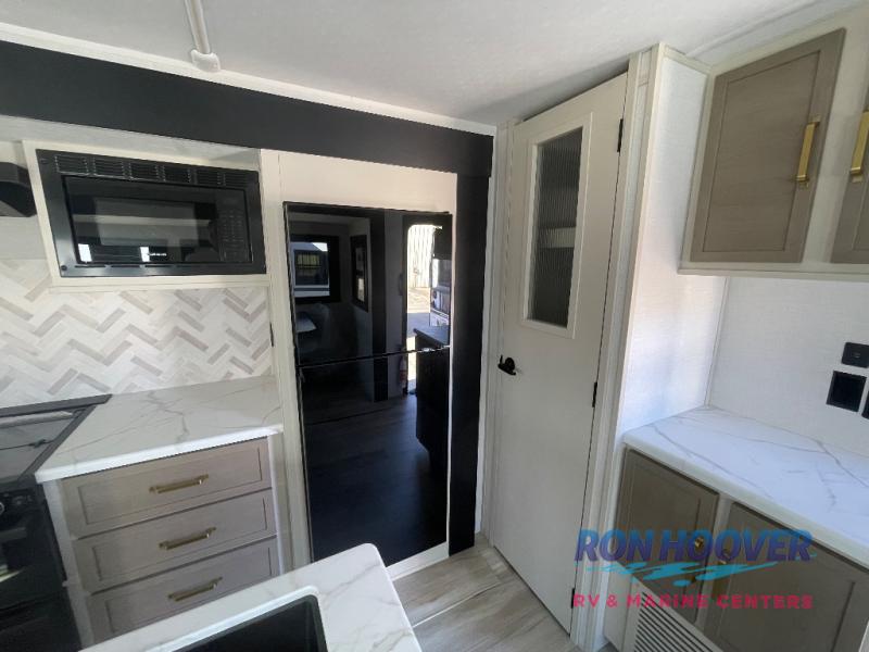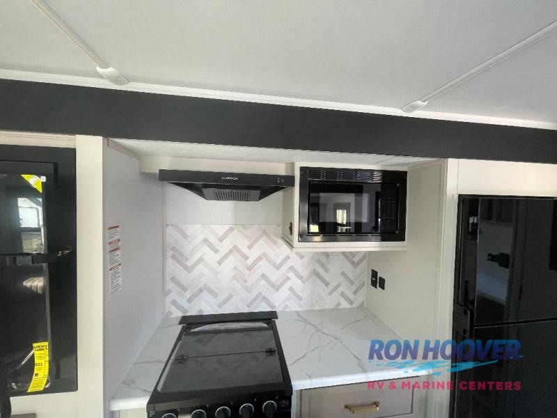 With any Wildwood Heritage Glen travel trailer by Forest River, the quality construction, attention to detail and design along with a bright and welcoming interior allows you to relax in comfort. Each model includes a WeatherShield one piece fiberglass roof, nitrogen-filled radial tires, and an enclosed underbelly with 12V tank heaters on all holding tanks for added protection. You will appreciate the on-demand tankless water heater, along with power stabilizer and tongue jacks, and an extra-large pass-thru storage with slam latch baggage doors. Head inside to enjoy matte gold hardware, wood door casings in place of plastic door casings, and an ultimate interior lighting upgrade with 4k puck/strip lights and a stylish LED back-lit bath mirror!