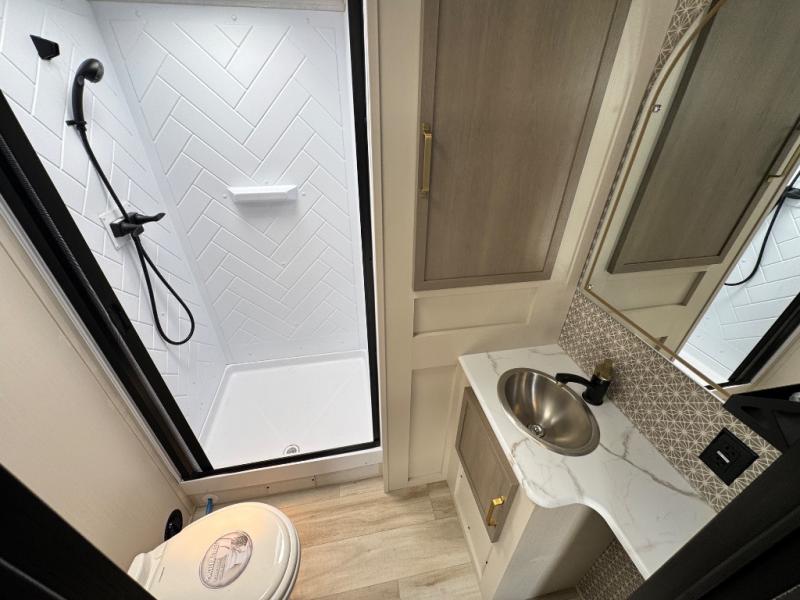 With any Wildwood Heritage Glen travel trailer by Forest River, the quality construction, attention to detail and design along with a bright and welcoming interior allows you to relax in comfort with conveniences while exploring outdoors. Each model includes a WeatherShield one piece fiberglass roof, Maxxis radial tires, and an enclosed underbelly with 12V tank heaters on all holding tanks for added protection. You will appreciate the on-demand tankless water heater, along with the 15K BTU Quite Cool A/C and 50 Amp service with a brace for a second A/C. There is an outside shower with hot and cold water, solar prep, a power tongue jack, plus many more exterior conveniences. Head inside to enjoy matte gold hardware, wood door casings in place of plastic door casings, and full length barreled ceilings for additional head room.