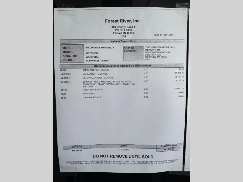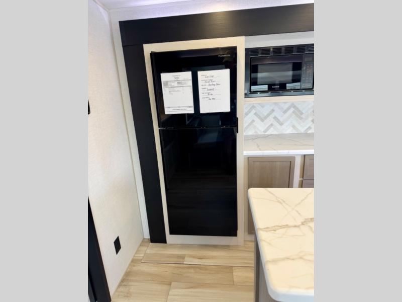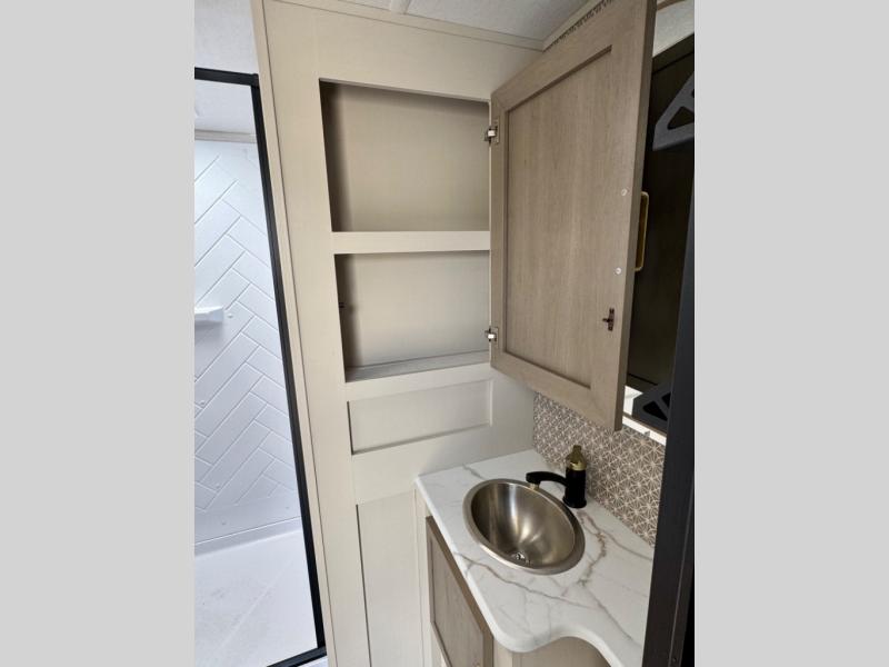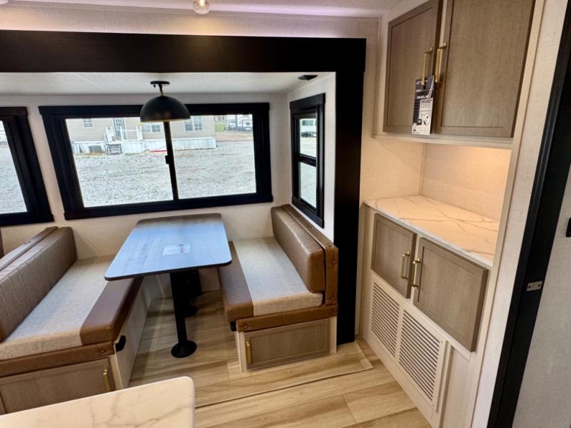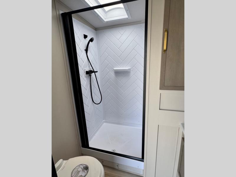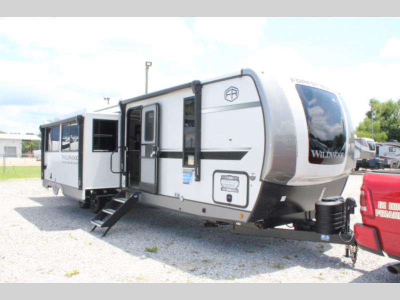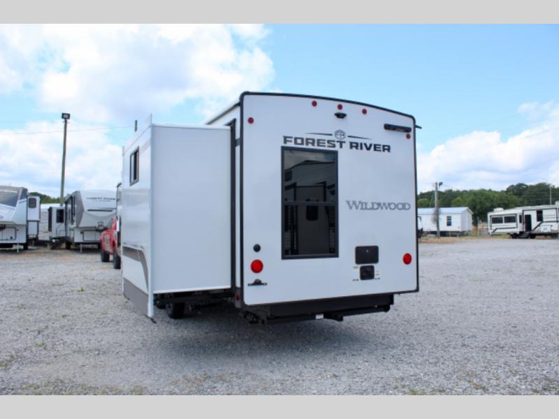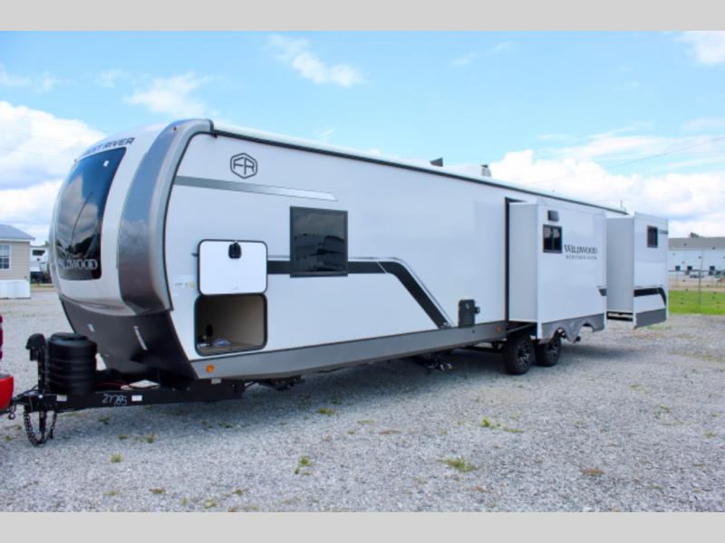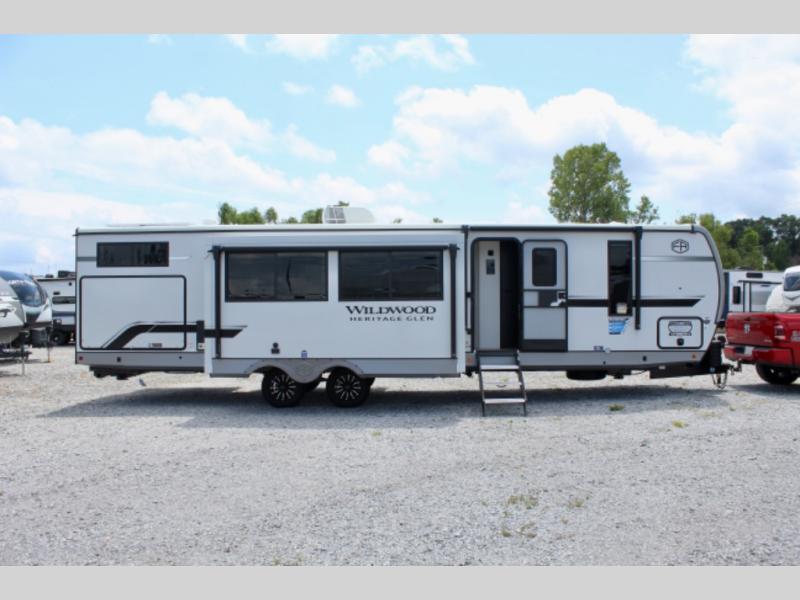 With any Wildwood Heritage Glen travel trailer by Forest River, the quality construction, attention to detail and design along with a bright and welcoming interior allows you to relax in comfort with conveniences while exploring outdoors. Each model includes a WeatherShield one piece fiberglass roof, Maxxis radial tires, and an enclosed underbelly with 12V tank heaters on all holding tanks for added protection. You will appreciate the on-demand tankless water heater, along with the 15K BTU Quite Cool A/C and 50 Amp service with a brace for a second A/C. There is an outside shower with hot and cold water, solar prep, a power tongue jack, plus many more exterior conveniences. Head inside to enjoy matte gold hardware, wood door casings in place of plastic door casings, and full length barreled ceilings for additional head room.
