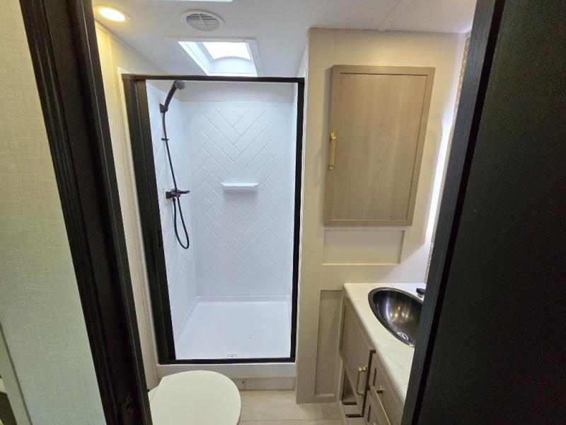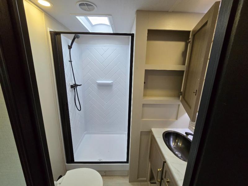 With any Wildwood Heritage Glen travel trailer by Forest River, the quality construction, attention to detail and design along with a bright and welcoming interior allows you to relax in comfort with conveniences while exploring outdoors. Each model includes a WeatherShield one piece fiberglass roof, Maxxis radial tires, and an enclosed underbelly with 12V tank heaters on all holding tanks for added protection. You will appreciate the on-demand tankless water heater, along with the 15K BTU Quite Cool A/C and 50 Amp service with a brace for a second A/C. There is an outside shower with hot and cold water, solar prep, a power tongue jack, plus many more exterior conveniences. Head inside to enjoy matte gold hardware, wood door casings in place of plastic door casings, and full length barreled ceilings for additional head room.