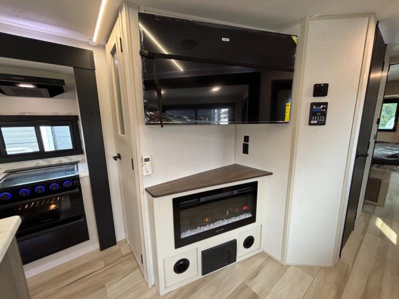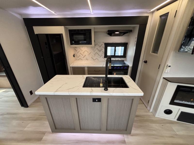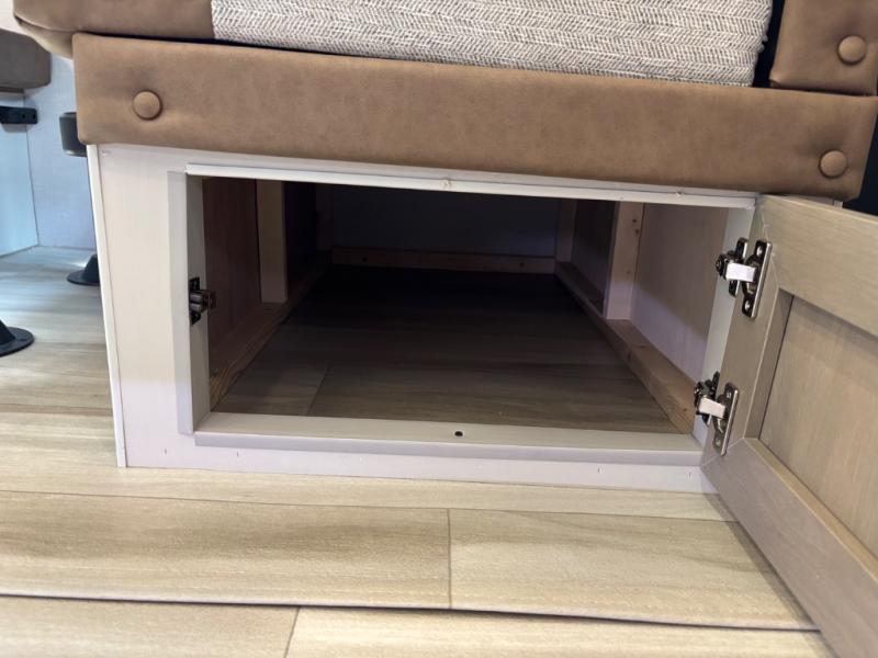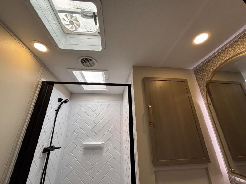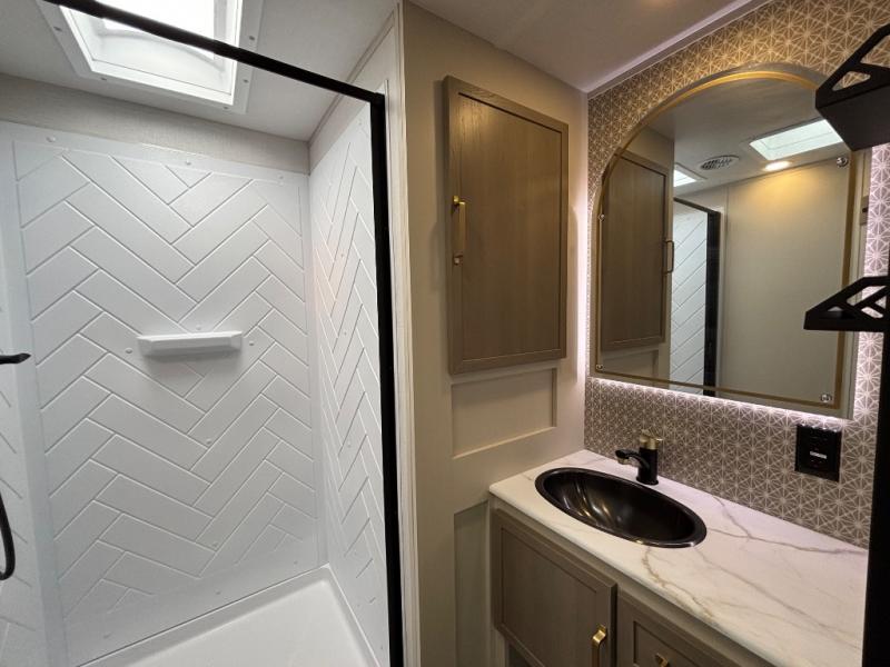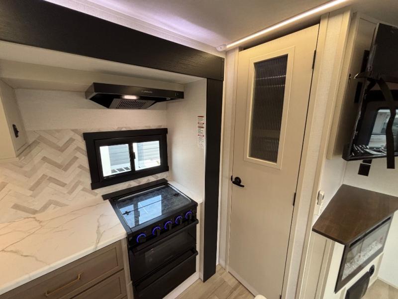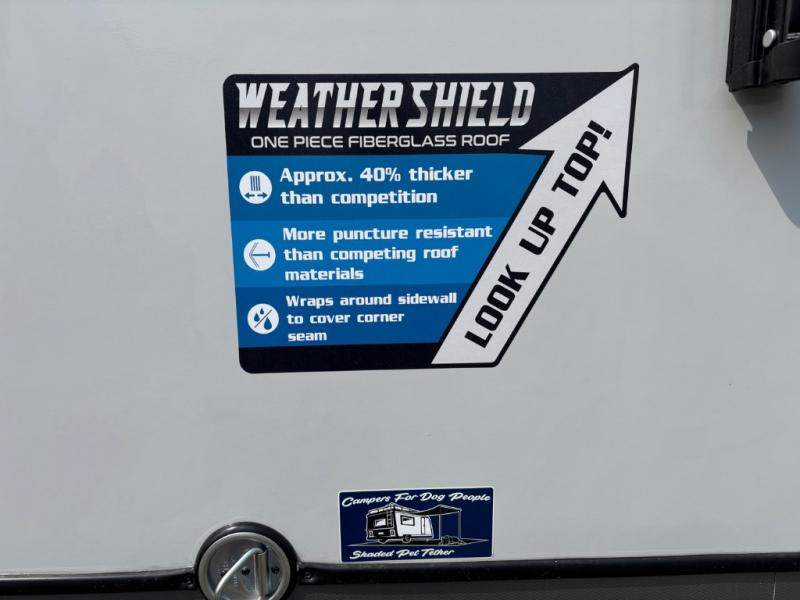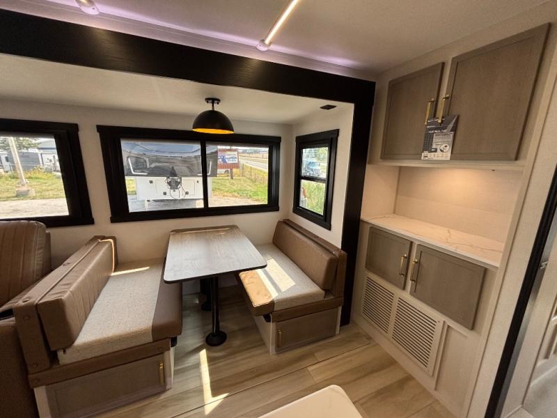 With any Wildwood Heritage Glen travel trailer by Forest River, the quality construction, attention to detail and design along with a bright and welcoming interior allows you to relax in comfort. Each model includes a WeatherShield one piece fiberglass roof, nitrogen-filled radial tires, and an enclosed underbelly with 12V tank heaters on all holding tanks for added protection. You will appreciate the on-demand tankless water heater, along with power stabilizer and tongue jacks, and an extra-large pass-thru storage with slam latch baggage doors. Head inside to enjoy matte gold hardware, wood door casings in place of plastic door casings, and an ultimate interior lighting upgrade with 4k puck/strip lights and a stylish LED back-lit bath mirror!