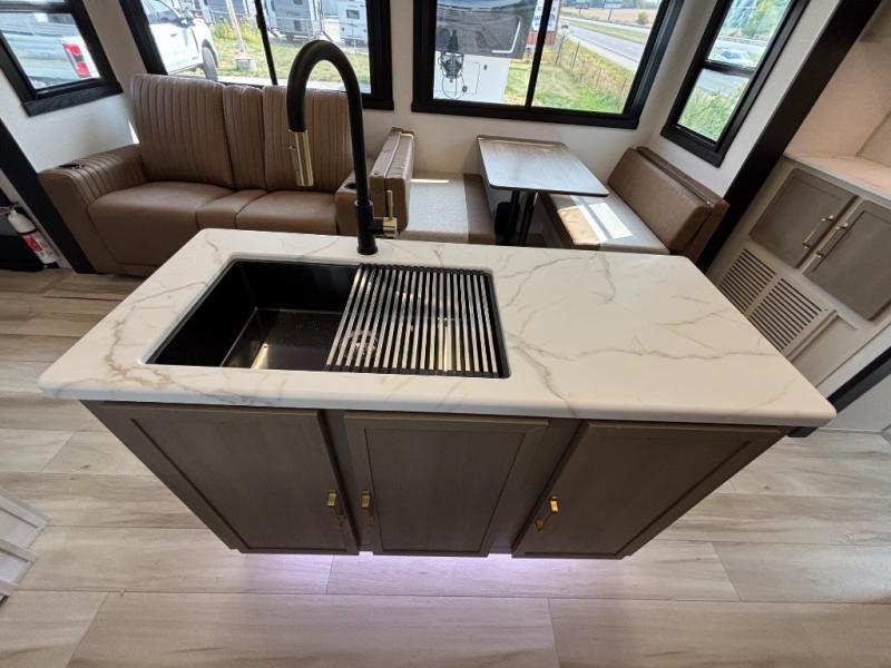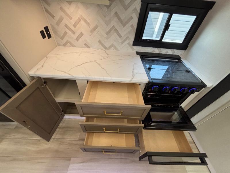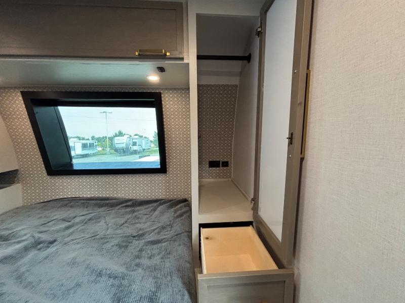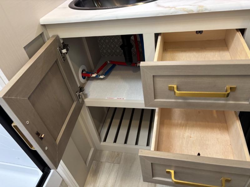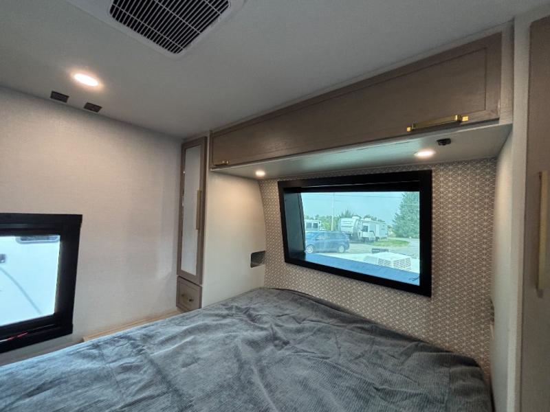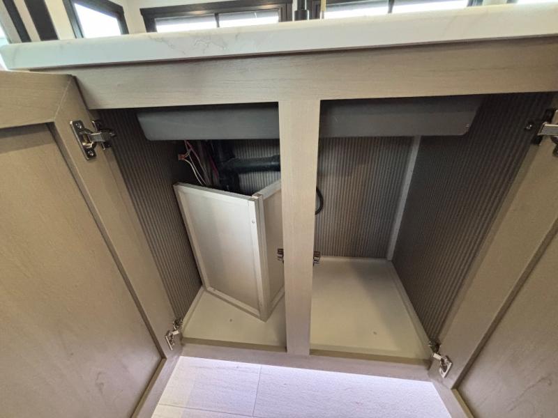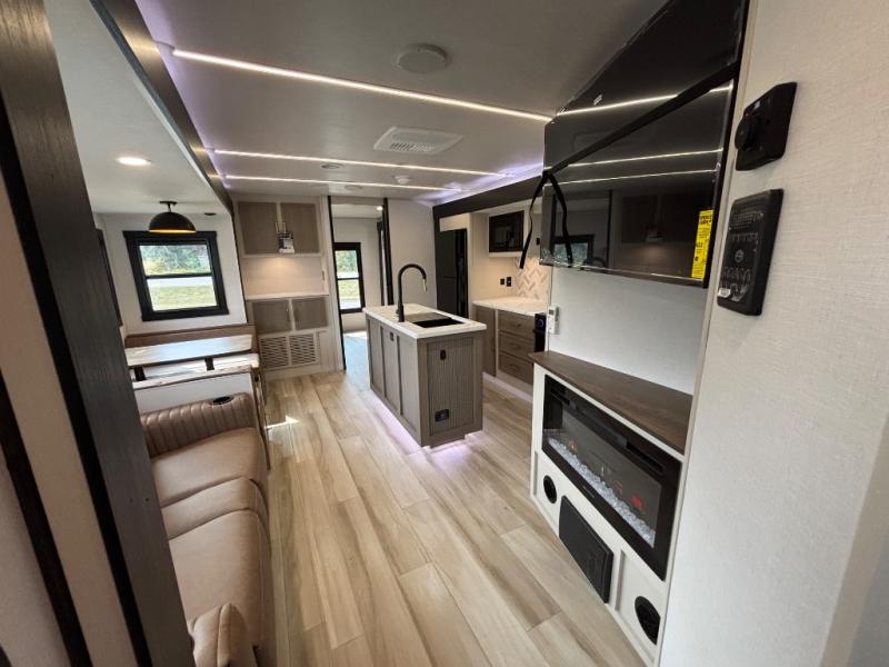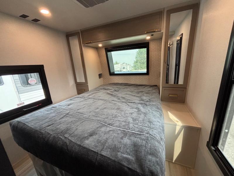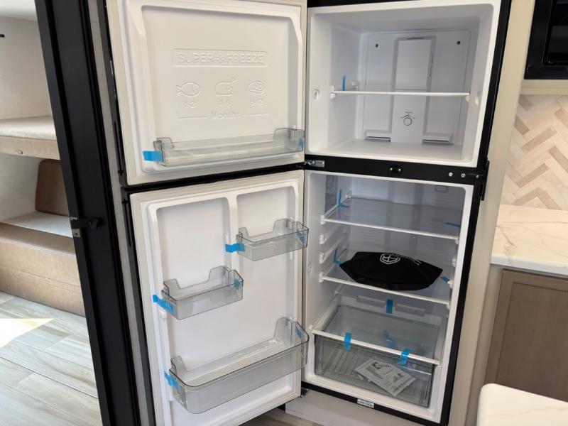 With any Wildwood Heritage Glen travel trailer by Forest River, the quality construction, attention to detail and design along with a bright and welcoming interior allows you to relax in comfort. Each model includes a WeatherShield one piece fiberglass roof, nitrogen-filled radial tires, and an enclosed underbelly with 12V tank heaters on all holding tanks for added protection. You will appreciate the on-demand tankless water heater, along with power stabilizer and tongue jacks, and an extra-large pass-thru storage with slam latch baggage doors. Head inside to enjoy matte gold hardware, wood door casings in place of plastic door casings, and an ultimate interior lighting upgrade with 4k puck/strip lights and a stylish LED back-lit bath mirror!