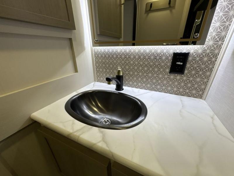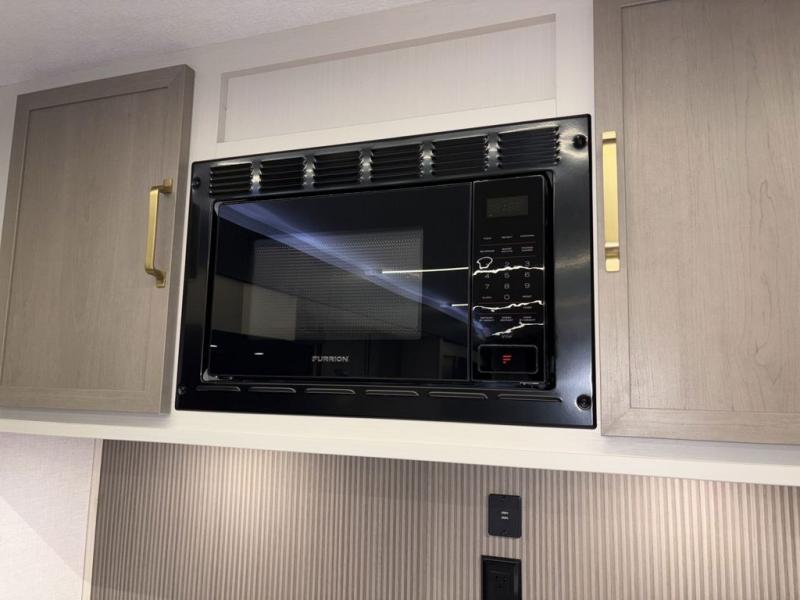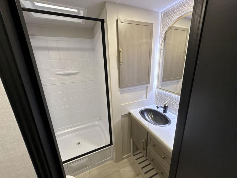 With any Wildwood Heritage Glen travel trailer by Forest River, the quality construction, attention to detail and design along with a bright and welcoming interior allows you to relax in comfort. Each model includes a WeatherShield one piece fiberglass roof, nitrogen-filled radial tires, and an enclosed underbelly with 12V tank heaters on all holding tanks for added protection. You will appreciate the on-demand tankless water heater, along with power stabilizer and tongue jacks, and an extra-large pass-thru storage with slam latch baggage doors. Head inside to enjoy matte gold hardware, wood door casings in place of plastic door casings, and an ultimate interior lighting upgrade with 4k puck/strip lights and a stylish LED back-lit bath mirror!