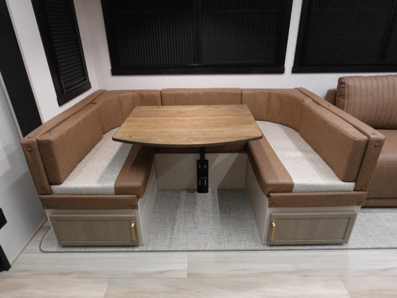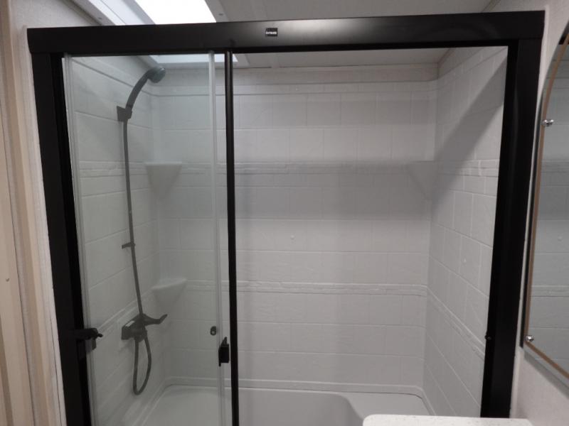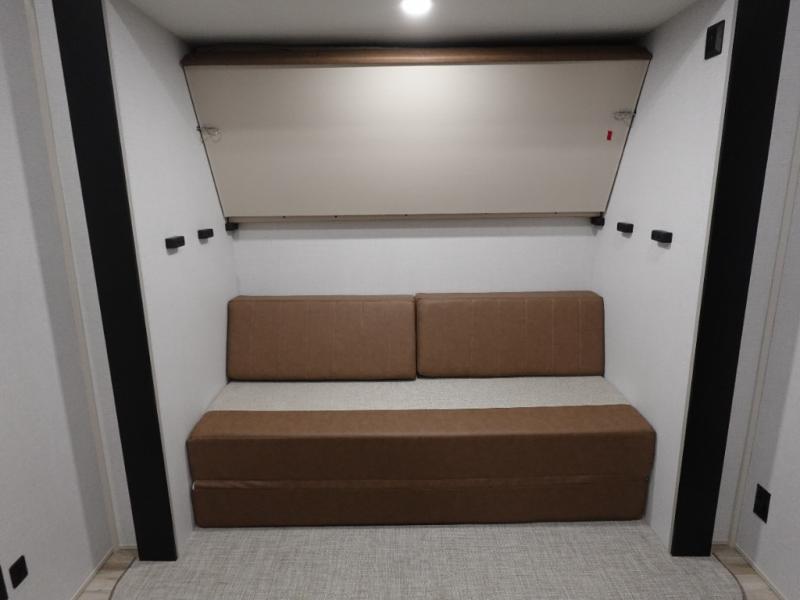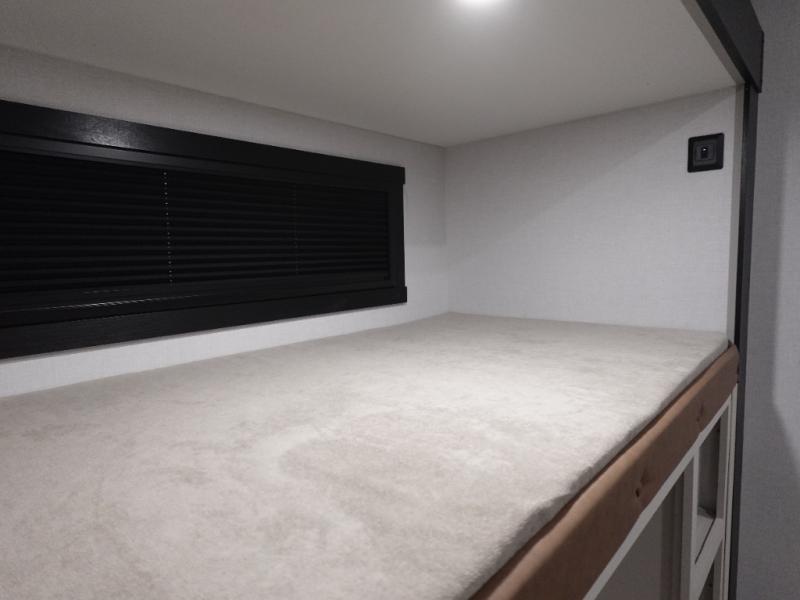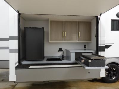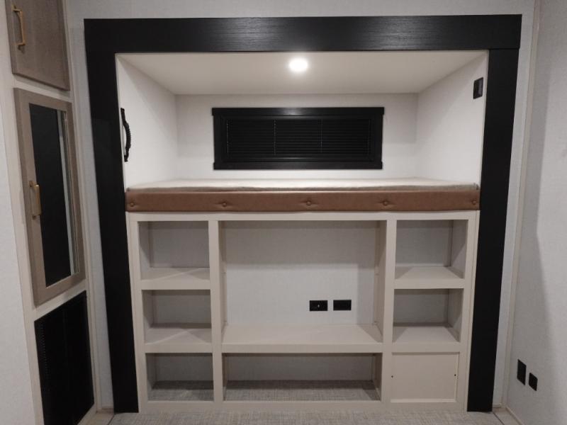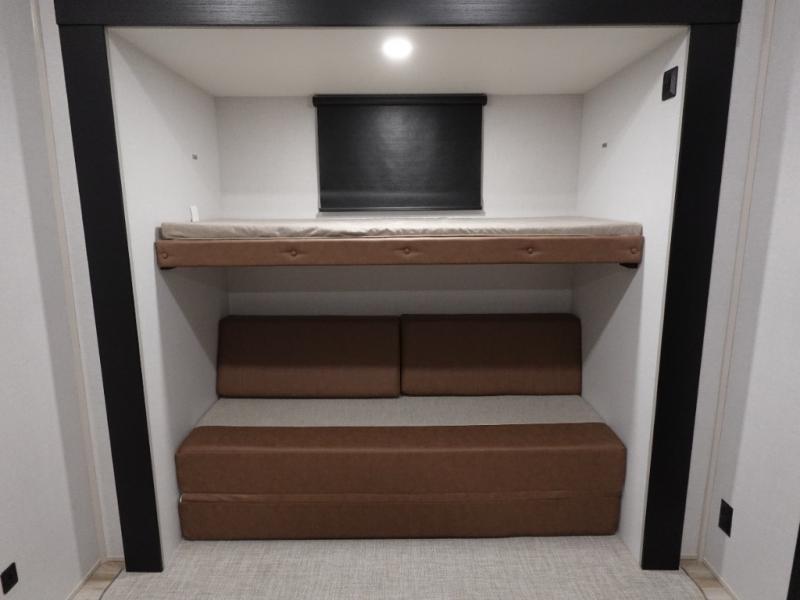 Not all fifth wheels are alike, and once you own this Wildwood Heritage Glen, you will understand! The rear entry into the second full bathroom allows the kids or your friends to enter and exit quickly to get back outside to the fun. They will also be able to shower and then enter their private bunkhouse that has two bunks, a convertible sofa bed, and two slides that offer lots of floor space to play. You will have your own oasis on the opposite side in the front private bedroom that has a custom king bed, a full-width wardrobe, and washer and dryer prep. The other full bathroom is only steps away from the main entrance and living area. The inside kitchen offers even more amenities, and the fourth slide provides a family U-shaped dinette and tri-fold sofa.