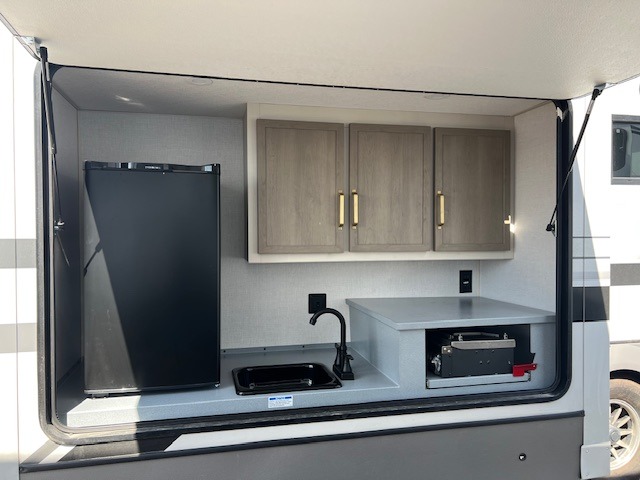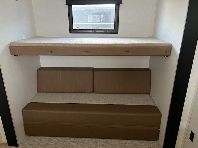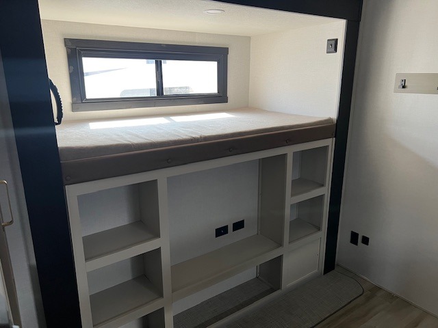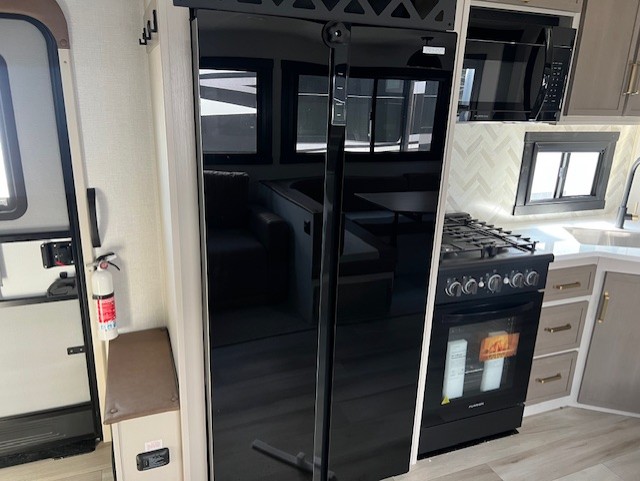 Not all fifth wheels are alike, and once you own this Wildwood Heritage Glen, you will understand! The rear entry into the second full bathroom allows the kids or your friends to enter and exit quickly to get back outside to the fun. They will also be able to shower and then enter their private bunkhouse that has two bunks, a convertible sofa bed, and two slides that offer lots of floor space to play. You will have your own oasis on the opposite side in the front private bedroom that has a custom king bed, a full-width wardrobe, and washer and dryer prep. The other full bathroom is only steps away from the main entrance and living area. The inside kitchen offers even more amenities, and the fourth slide provides a family U-shaped dinette and tri-fold sofa.