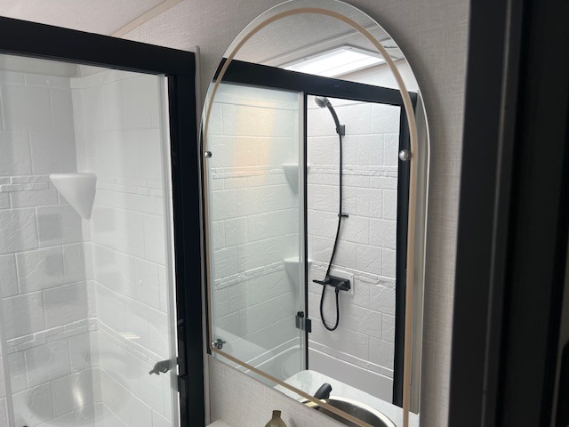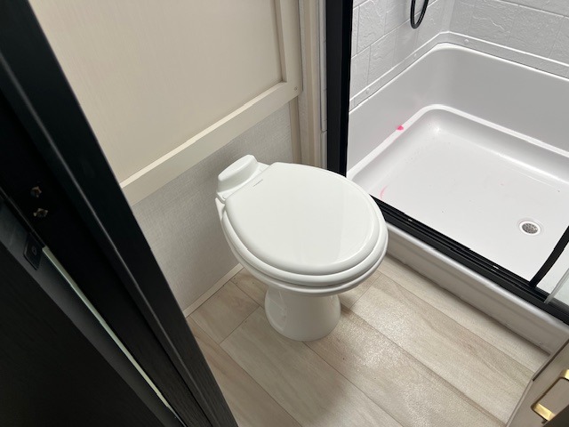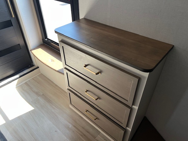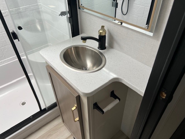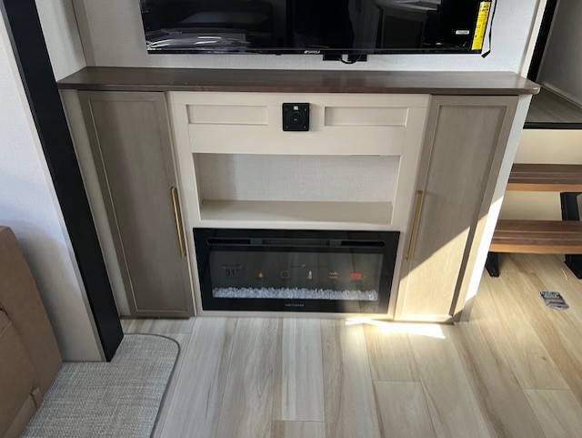 With any Wildwood Heritage Glen fifth wheel by Forest River, the quality construction, attention to detail and design along with a bright and welcoming interior allows you to relax in comfort with conveniences while exploring outdoors. The Summer Wind colored horizontal plank linoleum flooring is unique, beautiful and durable, and there are gold-accented faucets with stainless steel sinks in the bathrooms for added luxury. The Accessibelly underbelly with 12V tank heaters will help protect your unit from the elements, and the power stabilizer jacks and landing gear will make set-up a breeze. More features that provide convenience include the high-end solid surface countertops, an RV Airflow System that provides at least 25% better airflow, and solar prep for off-grid capabilities.