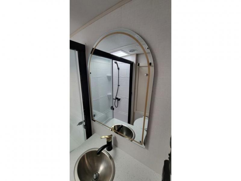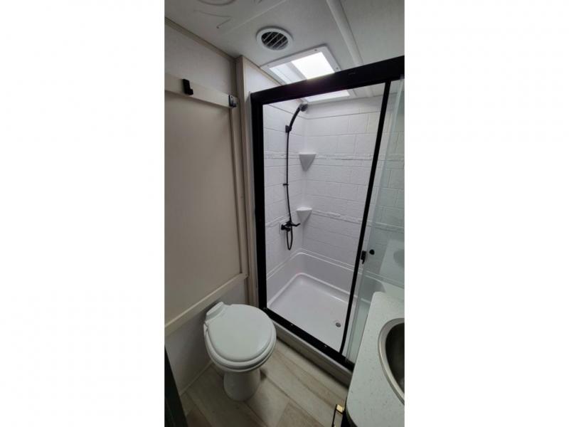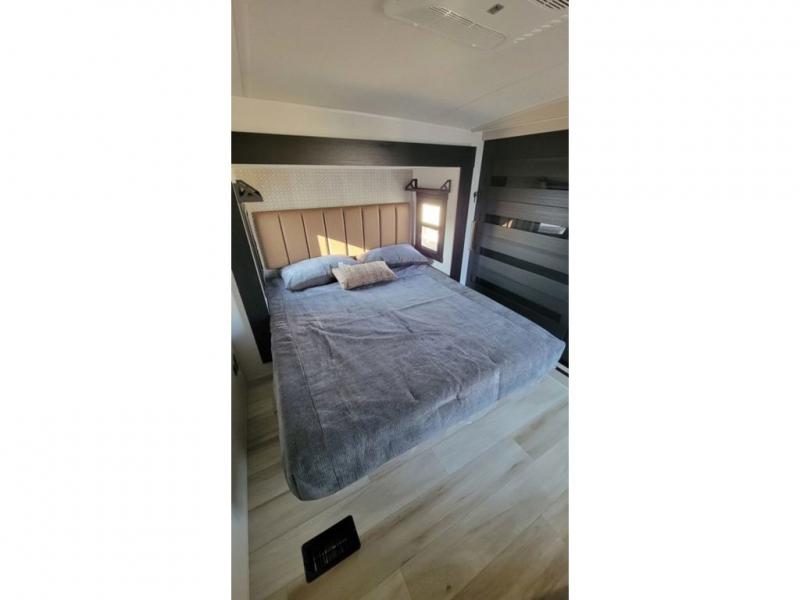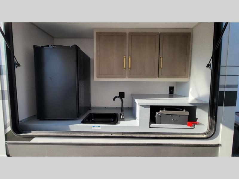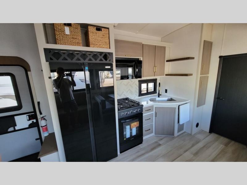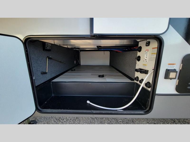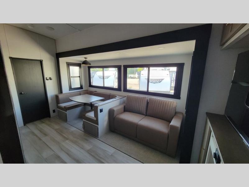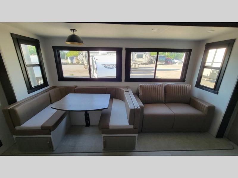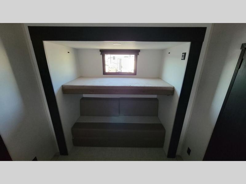 Not all fifth wheels are alike, and once you own this Wildwood Heritage Glen, you will understand! The rear entry into the second full bathroom allows the kids or your friends to enter and exit quickly to get back outside to the fun. They will also be able to shower and then enter their private bunkhouse that has two bunks, a convertible sofa bed, and two slides that offer lots of floor space to play. You will have your own oasis on the opposite side in the front private bedroom that has a custom king bed, a full-width wardrobe, and washer and dryer prep. The other full bathroom is only steps away from the main entrance and living area. The inside kitchen offers even more amenities, and the fourth slide provides a family U-shaped dinette and tri-fold sofa.