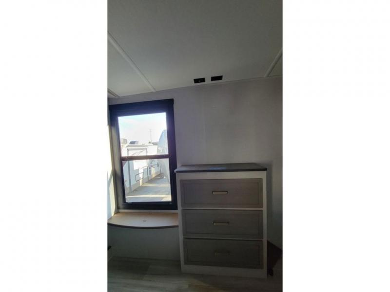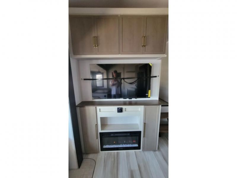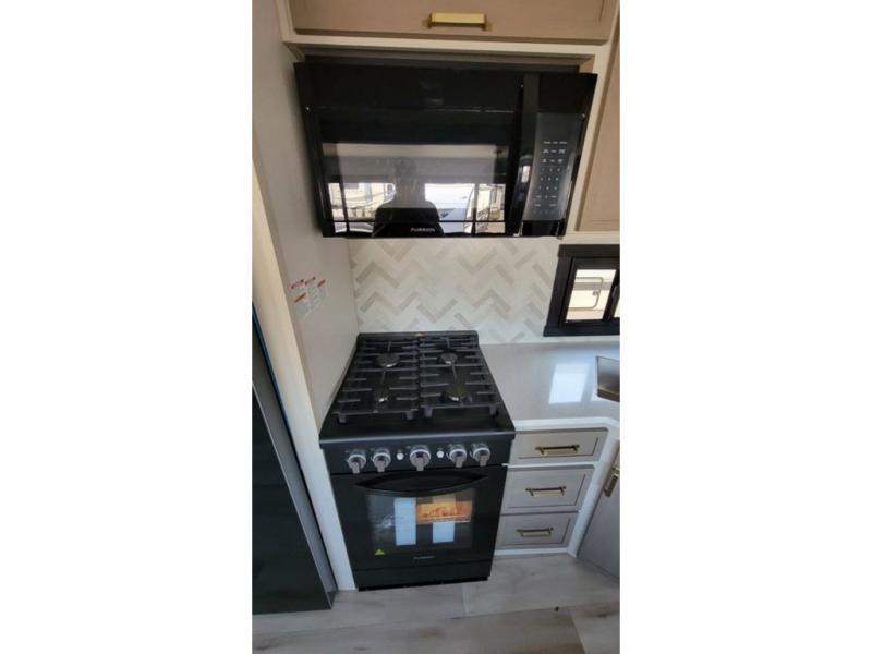 With any Wildwood Heritage Glen fifth wheel by Forest River, the quality construction, attention to detail and design along with a bright and welcoming interior allows you to relax in comfort with conveniences while exploring outdoors. The Summer Wind colored horizontal plank linoleum flooring is unique, beautiful and durable, and there are gold-accented faucets with stainless steel sinks in the bathrooms for added luxury. The Accessibelly underbelly with 12V tank heaters will help protect your unit from the elements, and the power stabilizer jacks and landing gear will make set-up a breeze. More features that provide convenience include the high-end solid surface countertops, an RV Airflow System that provides at least 25% better airflow, and solar prep for off-grid capabilities.