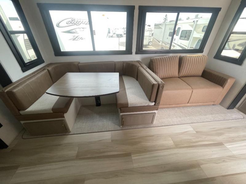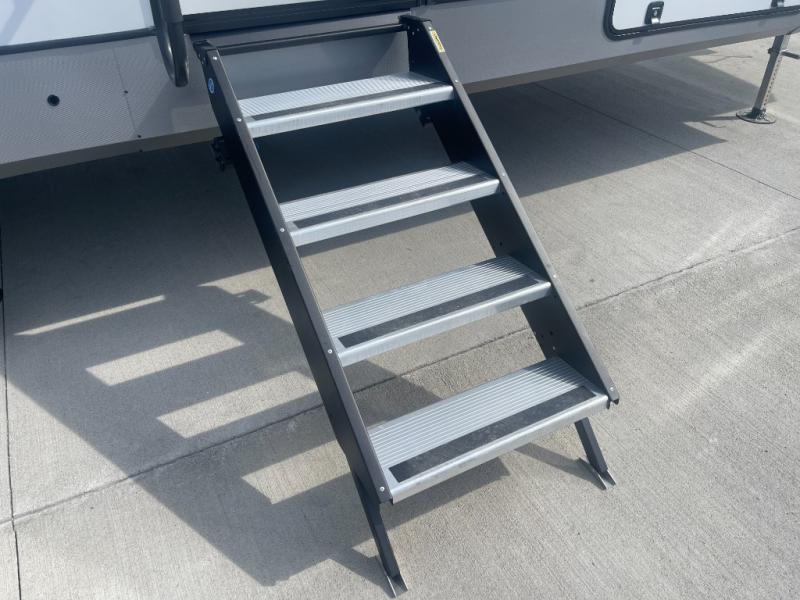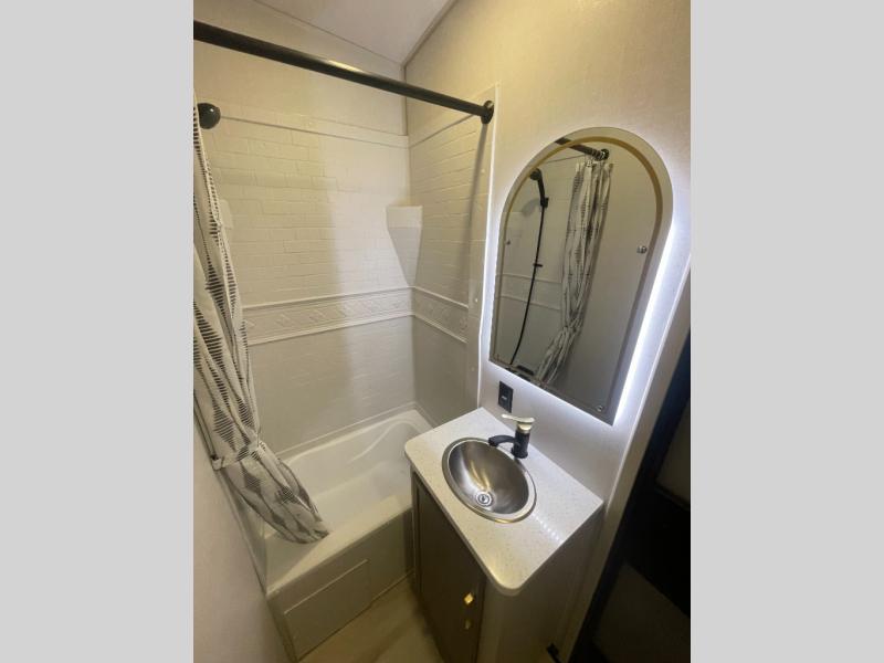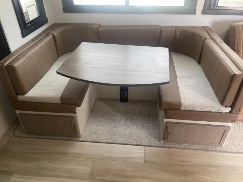 Not all fifth wheels are alike, and once you own this Wildwood Heritage Glen, you will understand! The rear entry into the second full bathroom allows the kids or your friends to enter and exit quickly to get back outside to the fun. They will also be able to shower and then enter their private bunkhouse that has two bunks, a convertible sofa bed, and two slides that offer lots of floor space to play. You will have your own oasis on the opposite side in the front private bedroom that has a custom king bed, a full-width wardrobe, and washer and dryer prep. The other full bathroom is only steps away from the main entrance and living area. The inside kitchen offers even more amenities, and the fourth slide provides a family U-shaped dinette and tri-fold sofa.