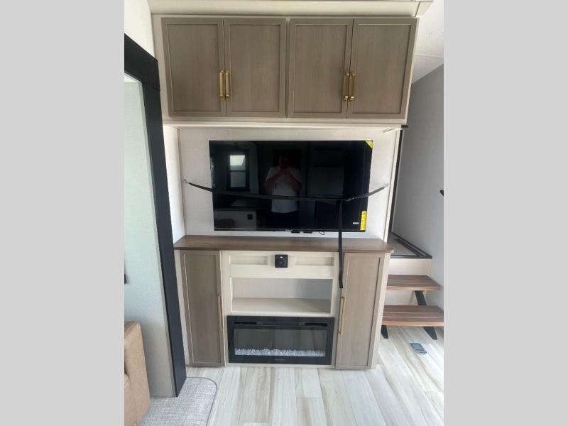 With any Wildwood Heritage Glen fifth wheel by Forest River, the quality construction, attention to detail and design along with a bright and welcoming interior allows you to relax in comfort with conveniences while exploring outdoors. The Summer Wind colored horizontal plank linoleum flooring is unique, beautiful and durable, and there are gold-accented faucets with stainless steel sinks in the bathrooms for added luxury. The Accessibelly underbelly with 12V tank heaters will help protect your unit from the elements, and the power stabilizer jacks and landing gear will make set-up a breeze. More features that provide convenience include the high-end solid surface countertops, an RV Airflow System that provides at least 25% better airflow, and solar prep for off-grid capabilities.