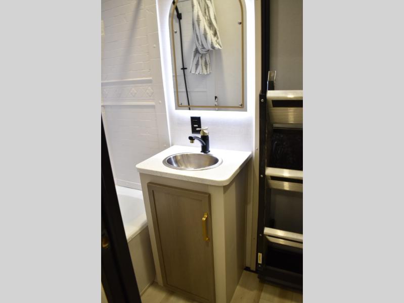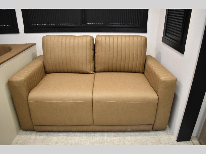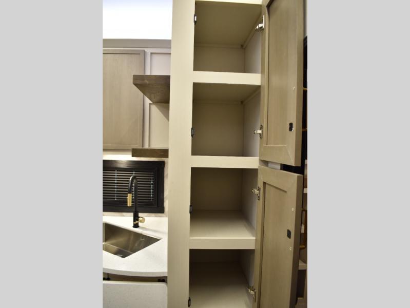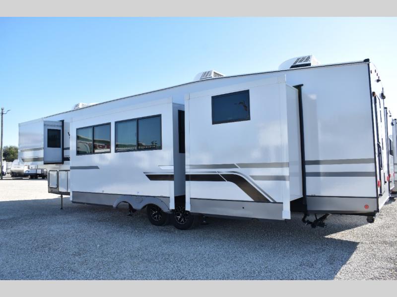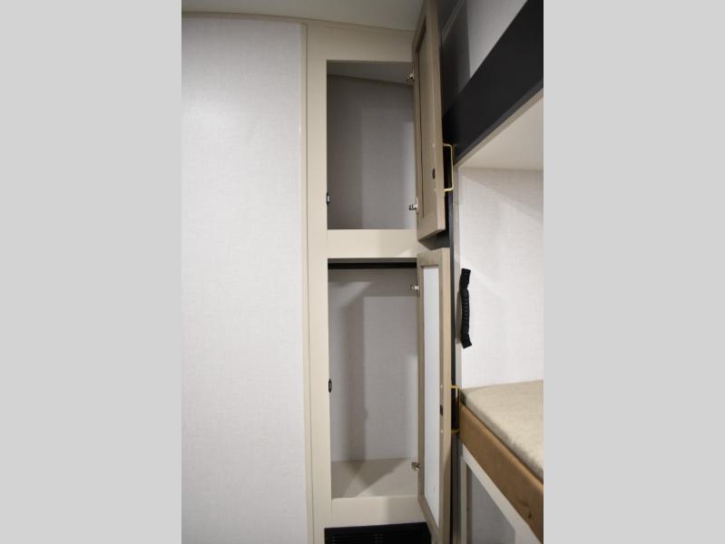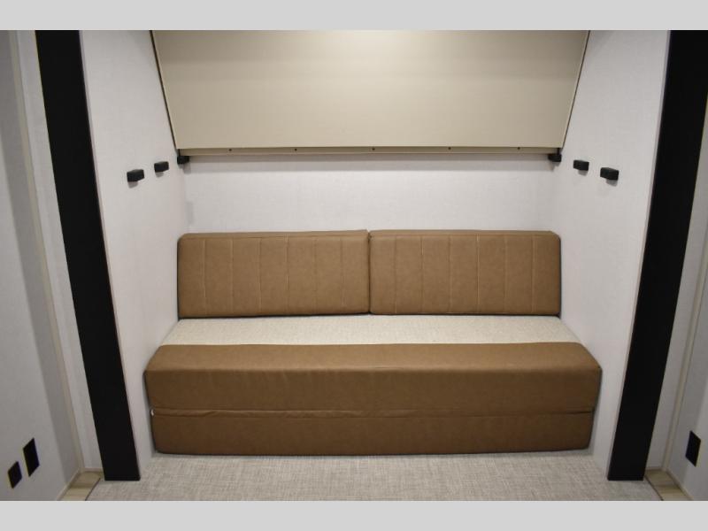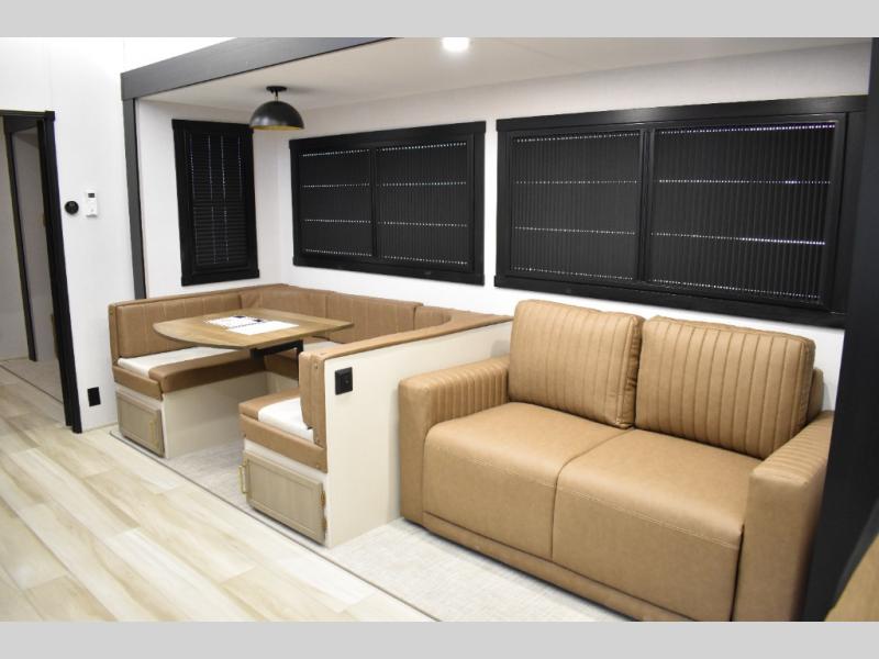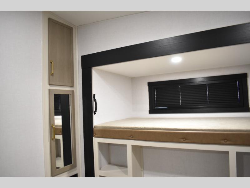 Not all fifth wheels are alike, and once you own this Wildwood Heritage Glen, you will understand! The rear entry into the second full bathroom allows the kids or your friends to enter and exit quickly to get back outside to the fun. They will also be able to shower and then enter their private bunkhouse that has two bunks, a convertible sofa bed, and two slides that offer lots of floor space to play. You will have your own oasis on the opposite side in the front private bedroom that has a custom king bed, a full-width wardrobe, and washer and dryer prep. The other full bathroom is only steps away from the main entrance and living area. The inside kitchen offers even more amenities, and the fourth slide provides a family U-shaped dinette and tri-fold sofa.