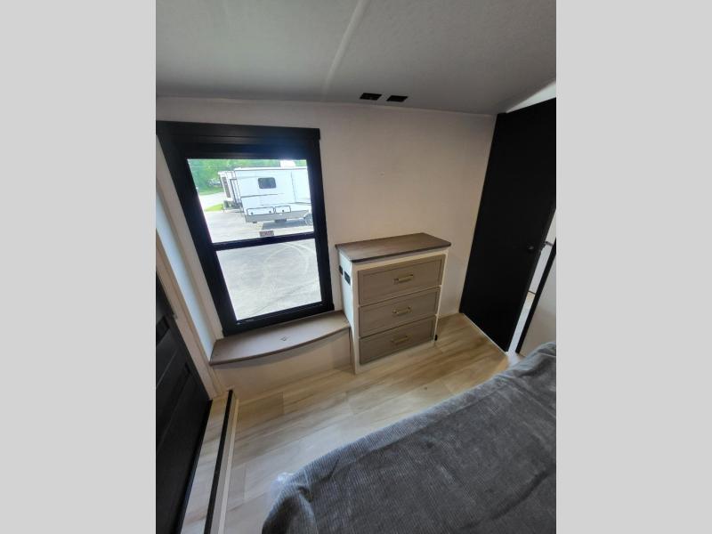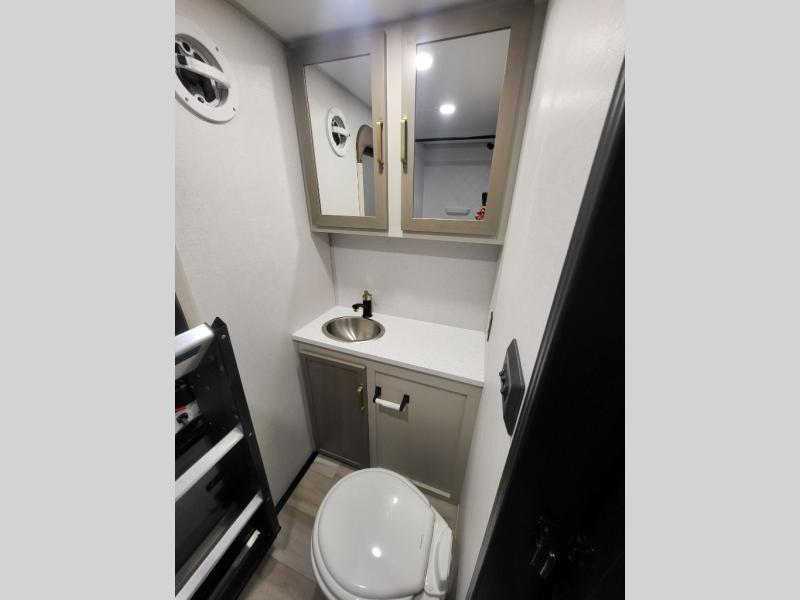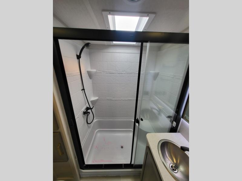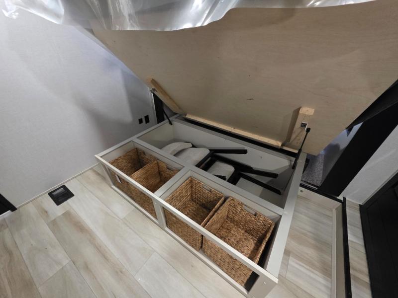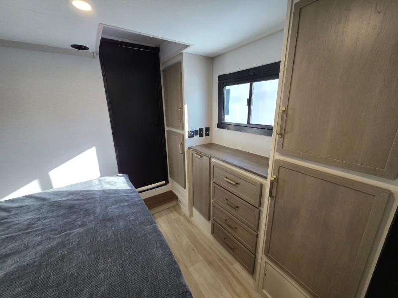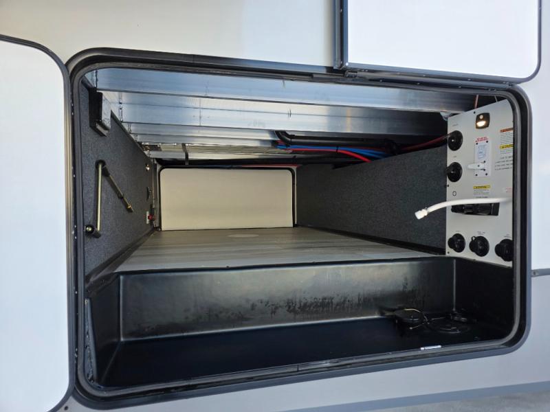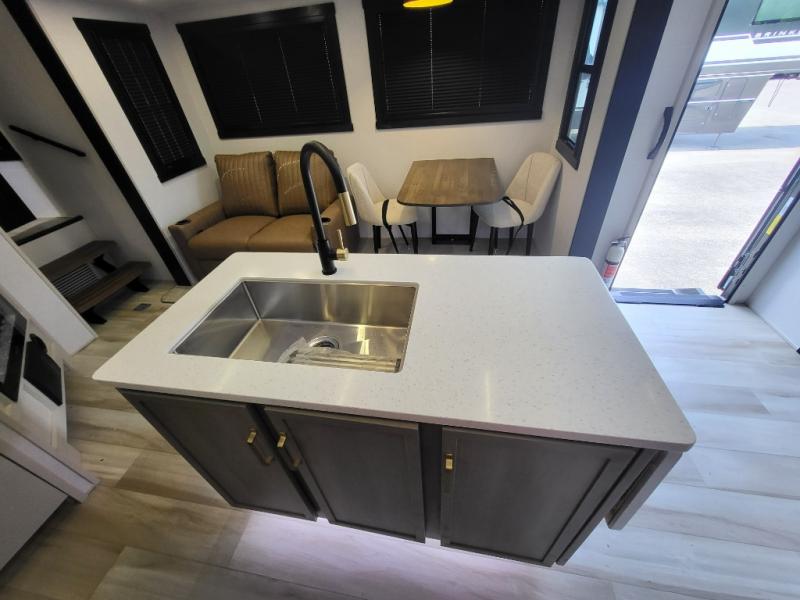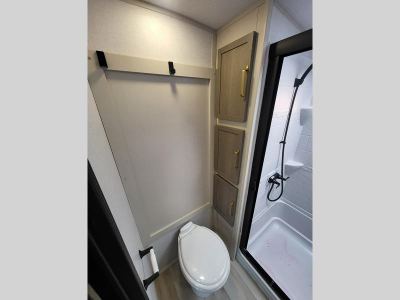 With any Wildwood Heritage Glen fifth wheel by Forest River, the quality construction, attention to detail and design along with a bright and welcoming interior allows you to relax in comfort with conveniences while exploring outdoors. The Summer Wind colored horizontal plank linoleum flooring is unique, beautiful and durable, and there are gold-accented faucets with stainless steel sinks in the bathrooms for added luxury. The Accessibelly underbelly with 12V tank heaters will help protect your unit from the elements, and the power stabilizer jacks and landing gear will make set-up a breeze. More features that provide convenience include the high-end solid surface countertops, an RV Airflow System that provides at least 25% better airflow, and solar prep for off-grid capabilities.
