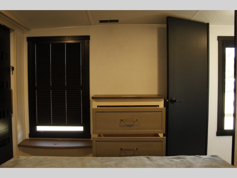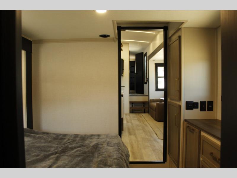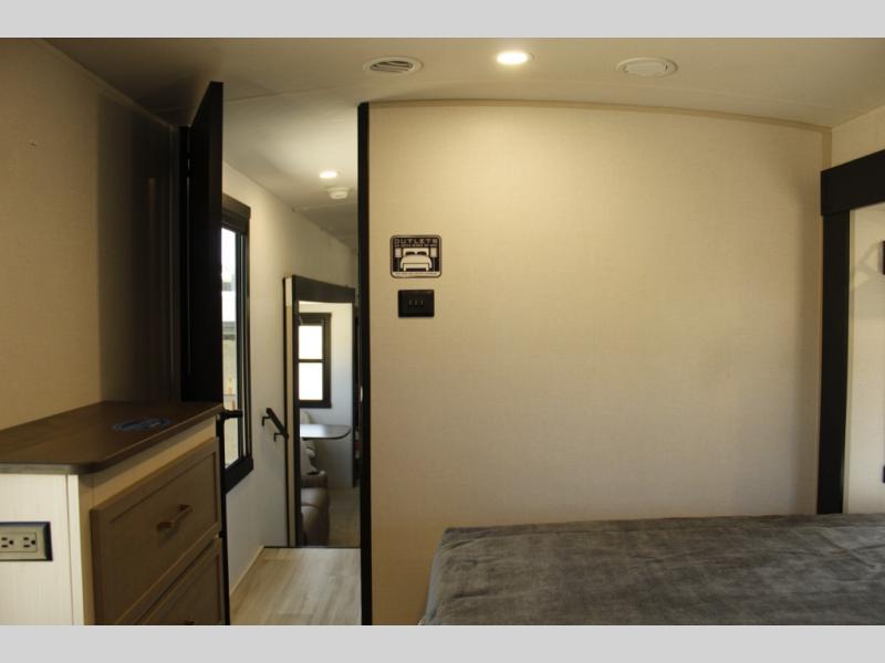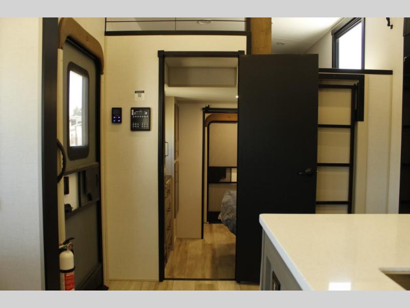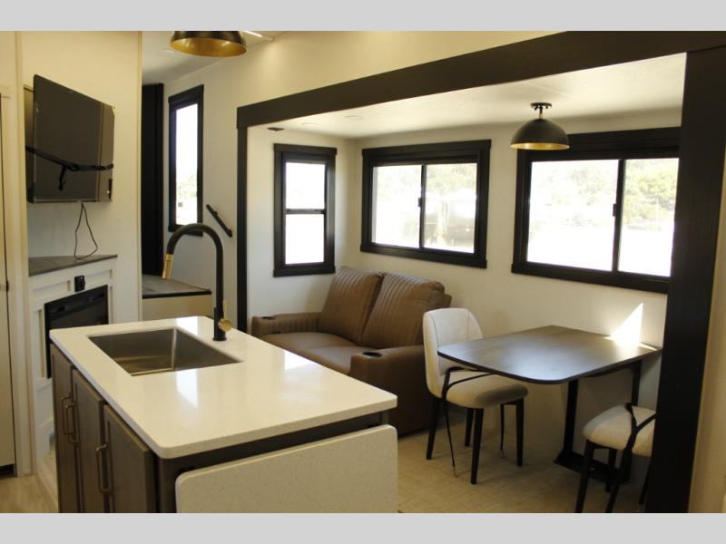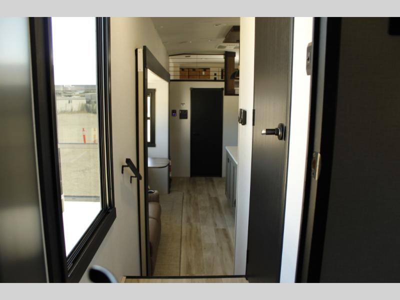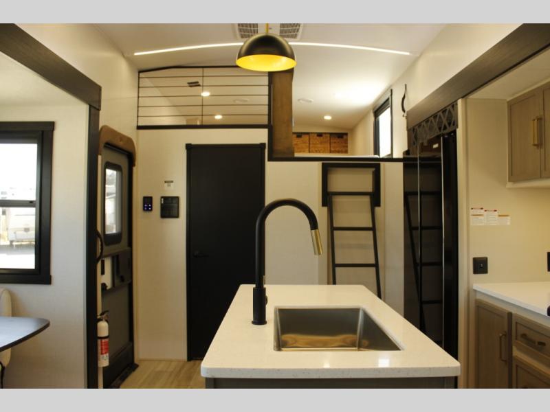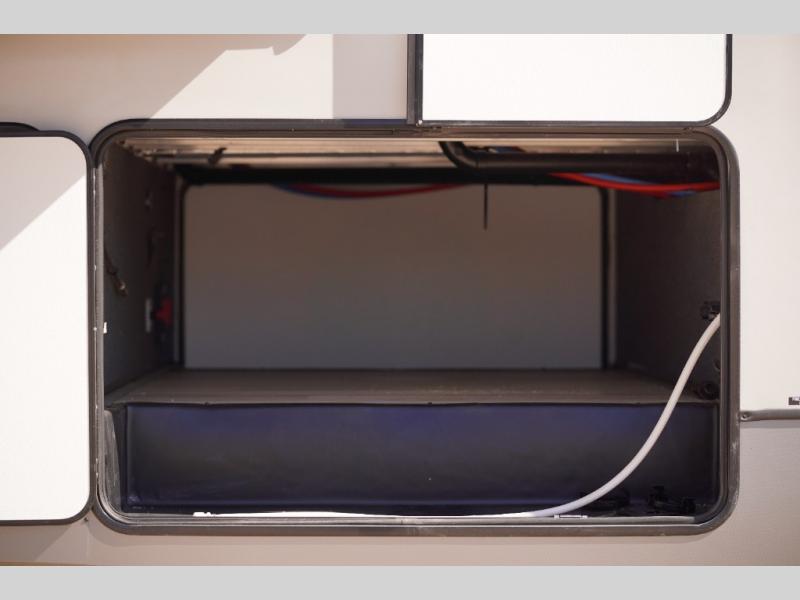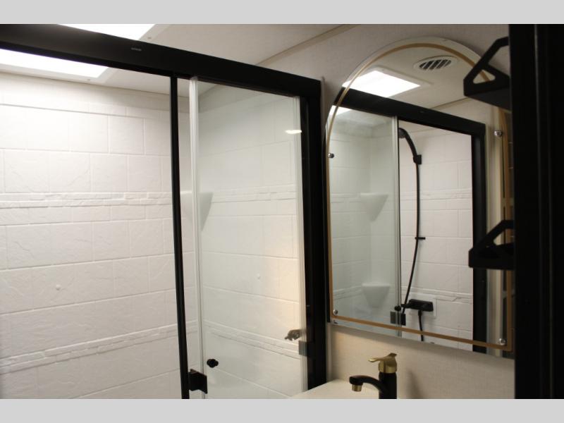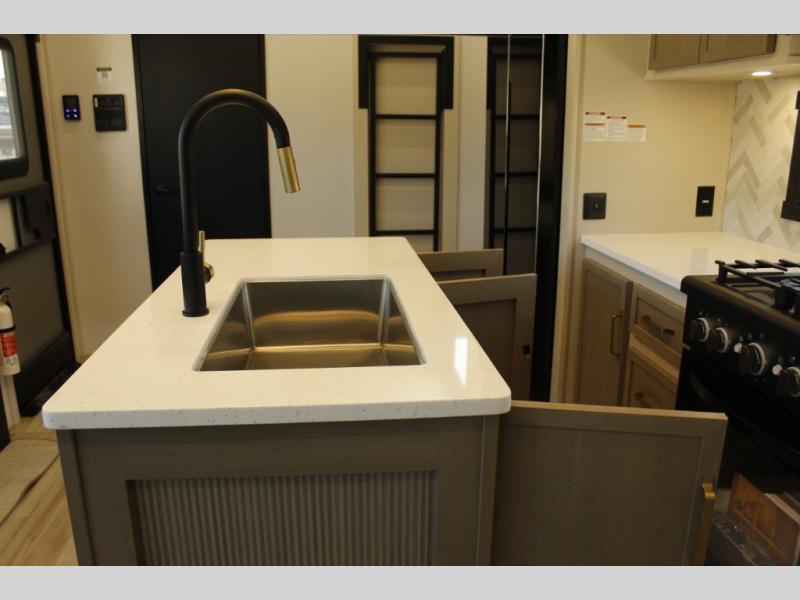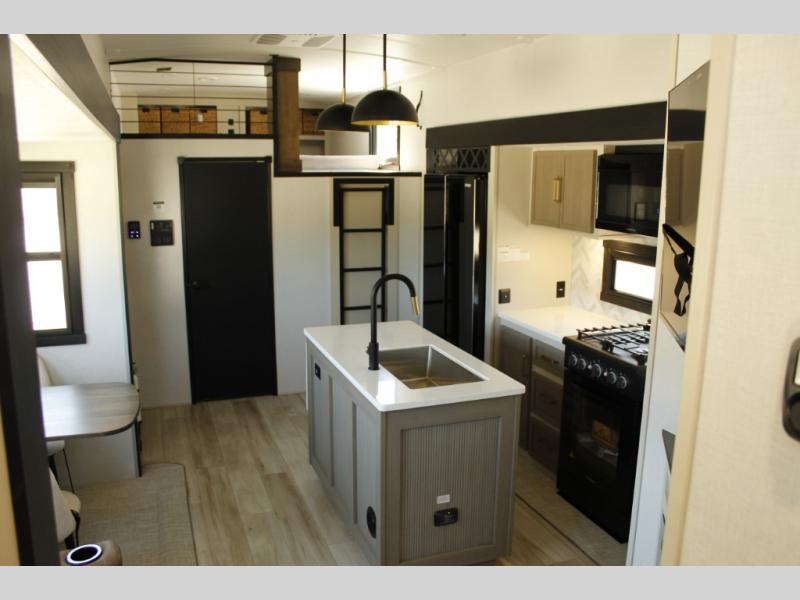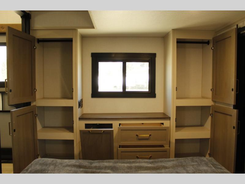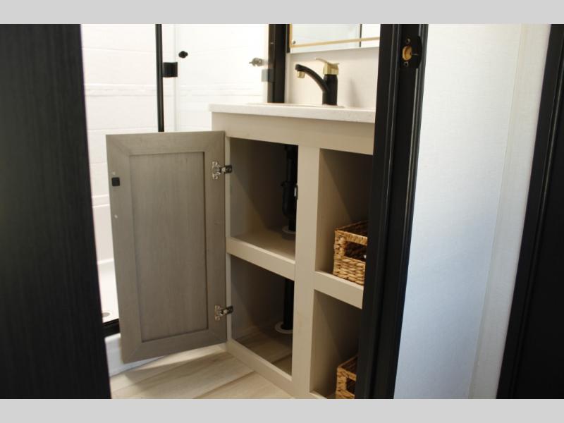 With any Wildwood Heritage Glen fifth wheel by Forest River, the quality construction, attention to detail and design along with a bright and welcoming interior allows you to relax in comfort with conveniences while exploring outdoors. The Summer Wind colored horizontal plank linoleum flooring is unique, beautiful and durable, and there are gold-accented faucets with stainless steel sinks in the bathrooms for added luxury. The Accessibelly underbelly with 12V tank heaters will help protect your unit from the elements, and the power stabilizer jacks and landing gear will make set-up a breeze. More features that provide convenience include the high-end solid surface countertops, an RV Airflow System that provides at least 25% better airflow, and solar prep for off-grid capabilities.