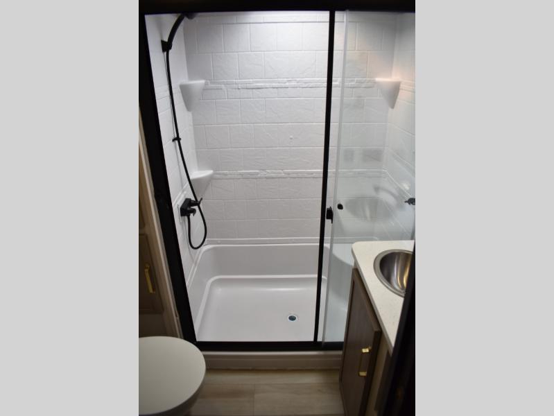 Also has (3) ACs, (2) exterior awnings, washer/dryer prep, auto leveling and more!