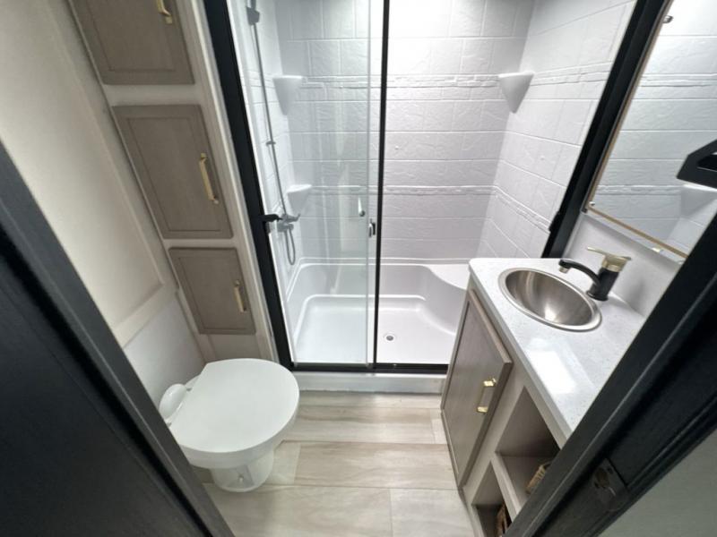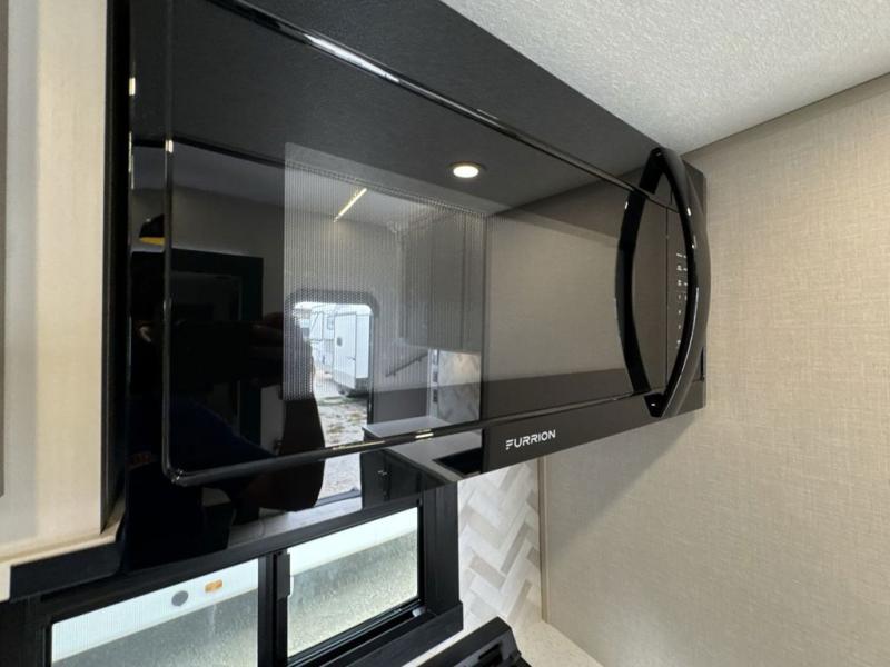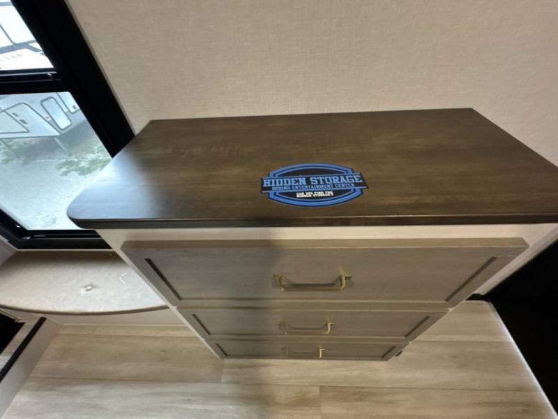 With any Wildwood Heritage Glen fifth wheel by Forest River, the quality construction, attention to detail and design along with a bright and welcoming interior allows you to relax in comfort. You'll love the high-end solid surface countertops included in the Elevated Value Package, along with a JBL sound system, full-length barreled ceilings, and an ultimate interior lighting upgrade. The included Expedition Package features an Accesibelly underbelly panel with 12V tank heaters, nitrogen-filled tires with aluminum rims, and a spacious 30" wide main entry door with a window. The Lippert On-The-Go ladder prep and back-up camera prep let you customize your fifth wheel even more, and the LED awning, front cap, marker and taillights will make it easier than ever to set up camp!