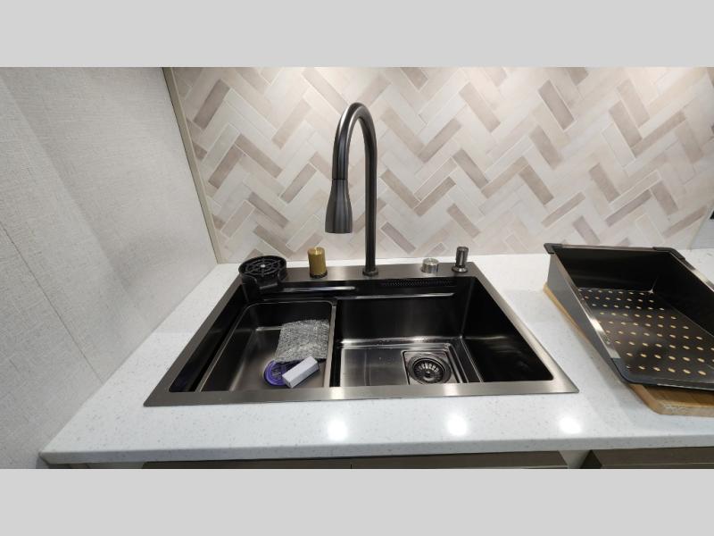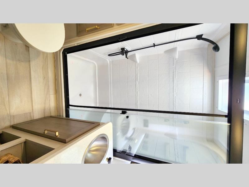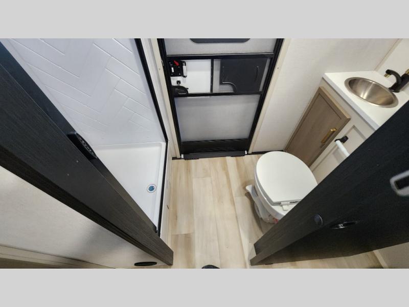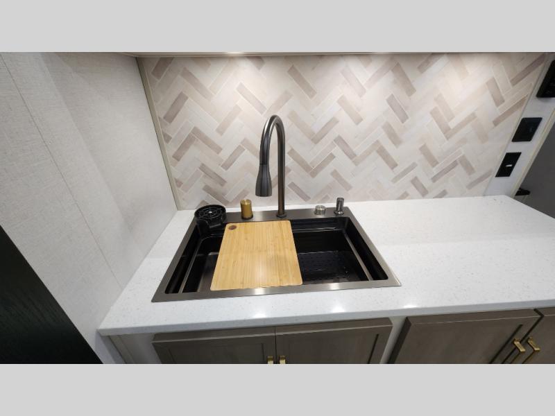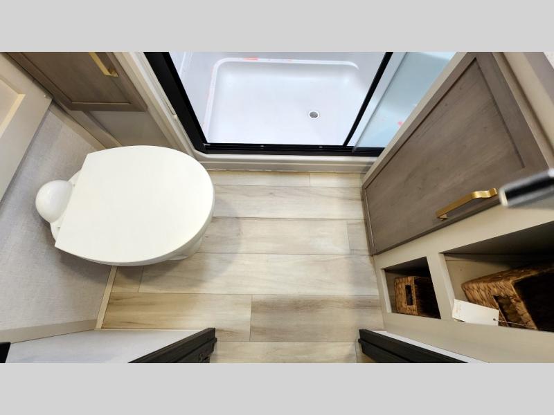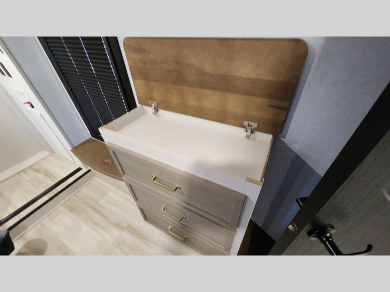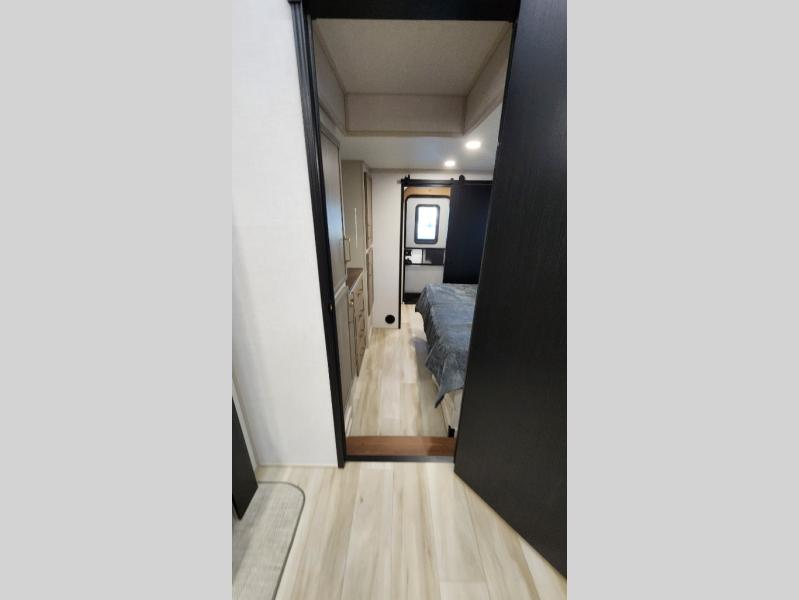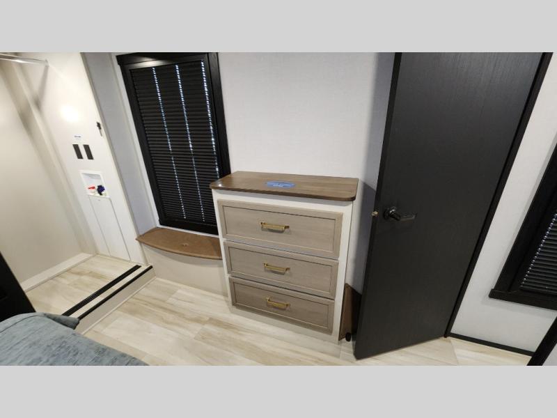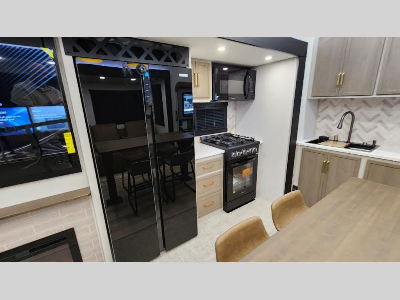 With any Wildwood Heritage Glen fifth wheel by Forest River, the quality construction, attention to detail and design along with a bright and welcoming interior allows you to relax in comfort. You'll love the high-end solid surface countertops included in the Elevated Value Package, along with a JBL sound system, full-length barreled ceilings, and an ultimate interior lighting upgrade. The included Expedition Package features an Accesibelly underbelly panel with 12V tank heaters, nitrogen-filled tires with aluminum rims, and a spacious 30" wide main entry door with a window. The Lippert On-The-Go ladder prep and back-up camera prep let you customize your fifth wheel even more, and the LED awning, front cap, marker and taillights will make it easier than ever to set up camp!