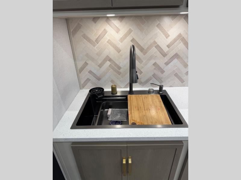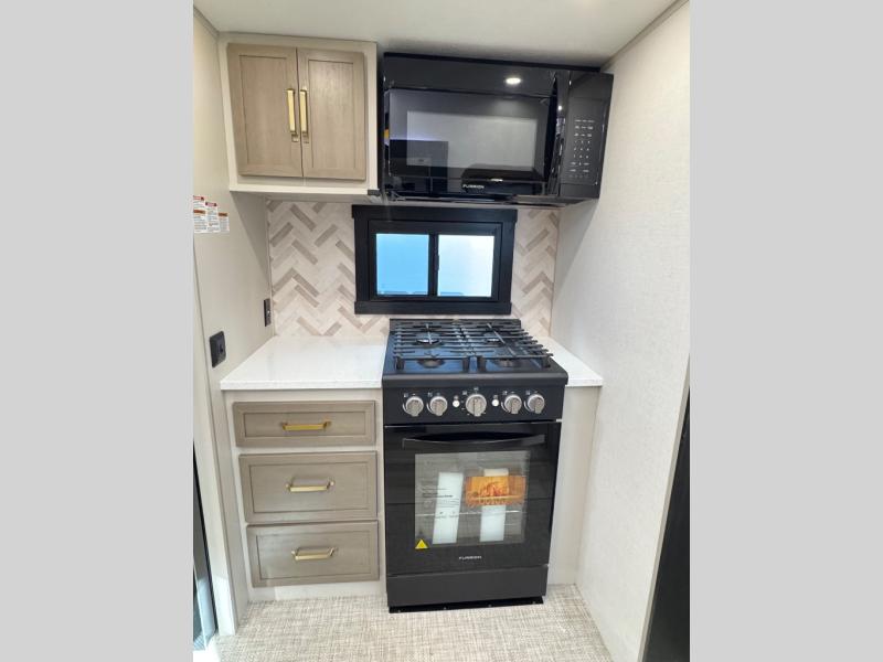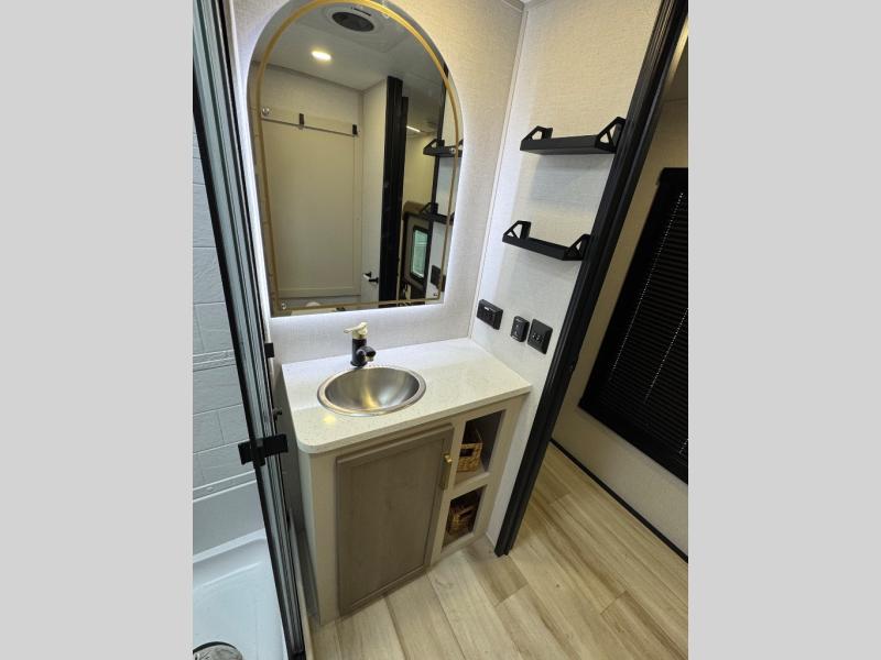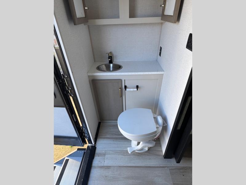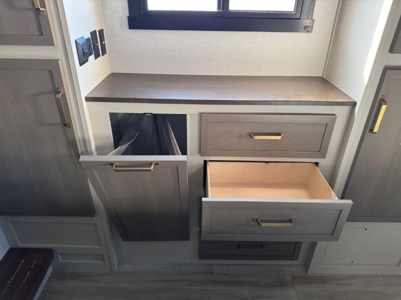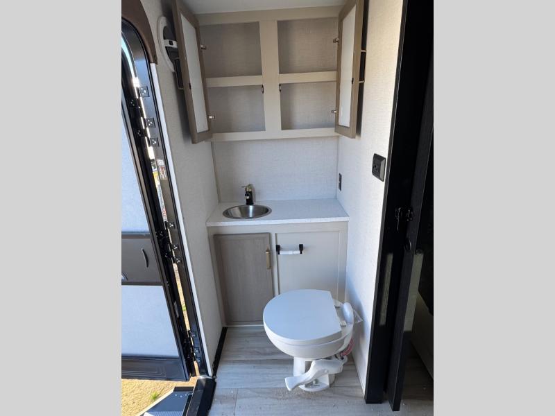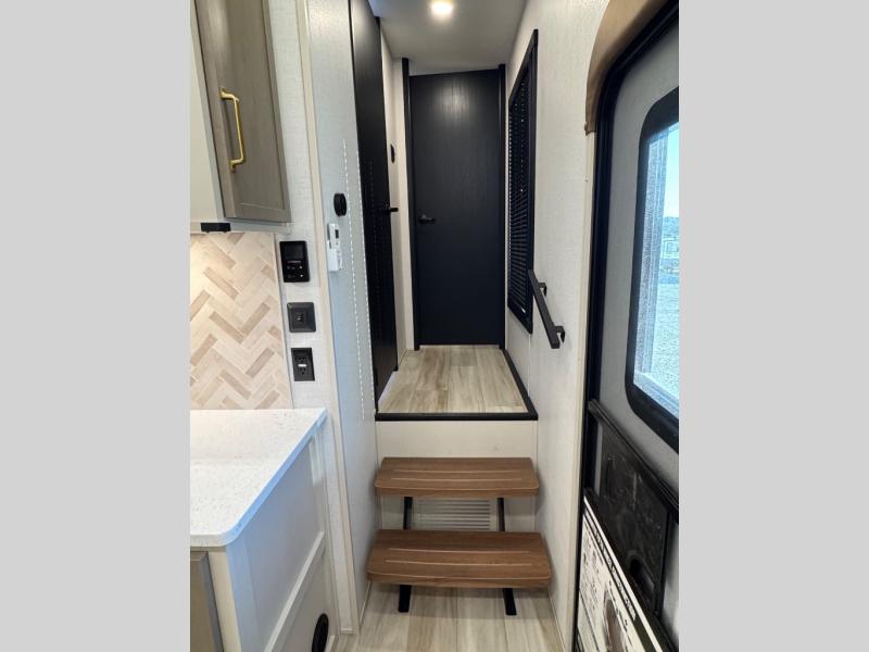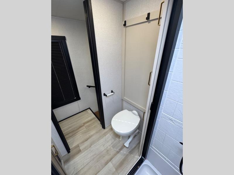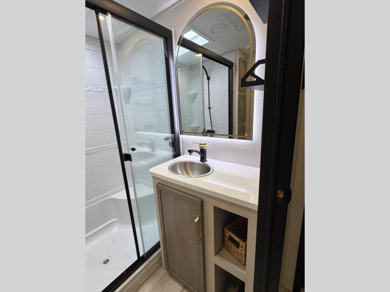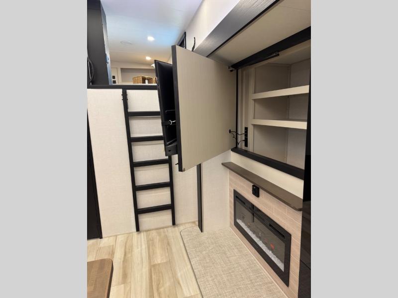 With any Wildwood Heritage Glen fifth wheel by Forest River, the quality construction, attention to detail and design along with a bright and welcoming interior allows you to relax in comfort. You'll love the high-end solid surface countertops included in the Elevated Value Package, along with a JBL sound system, full-length barreled ceilings, and an ultimate interior lighting upgrade. The included Expedition Package features an Accesibelly underbelly panel with 12V tank heaters, nitrogen-filled tires with aluminum rims, and a spacious 30" wide main entry door with a window. The Lippert On-The-Go ladder prep and back-up camera prep let you customize your fifth wheel even more, and the LED awning, front cap, marker and taillights will make it easier than ever to set up camp!