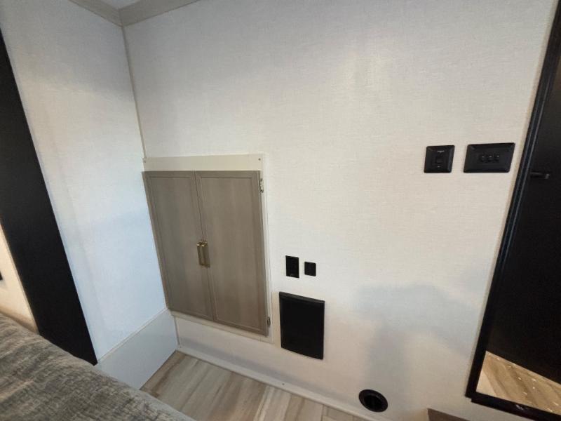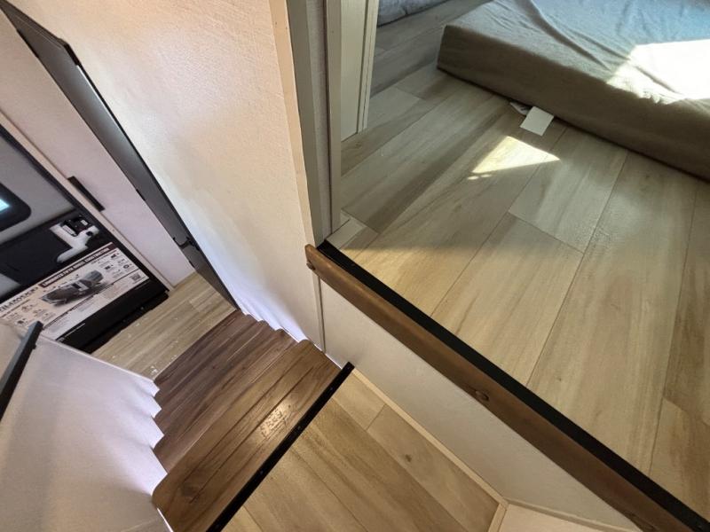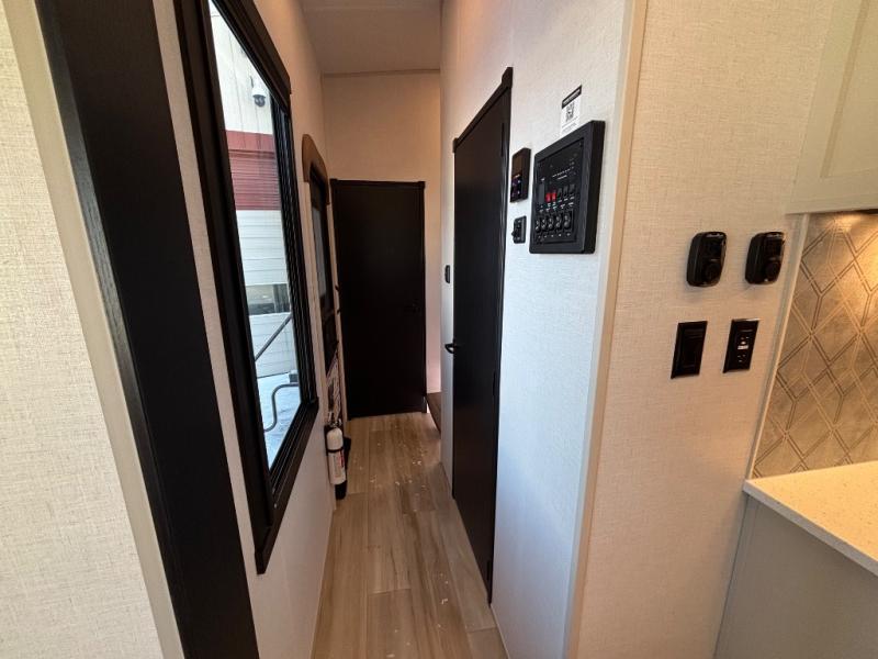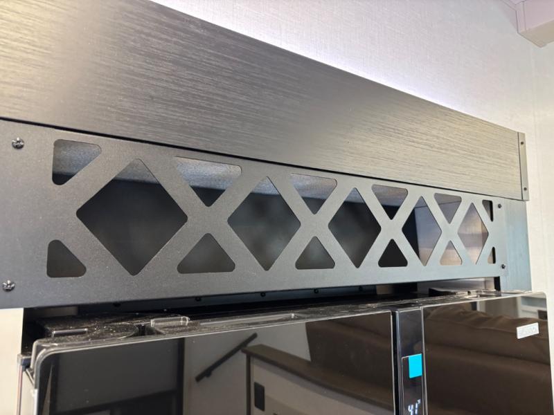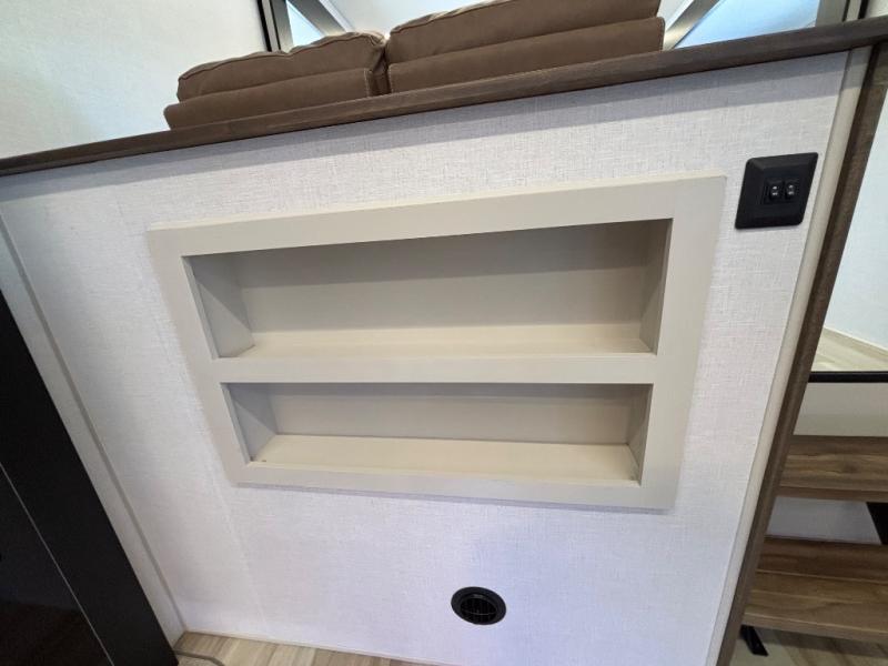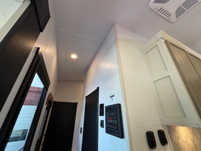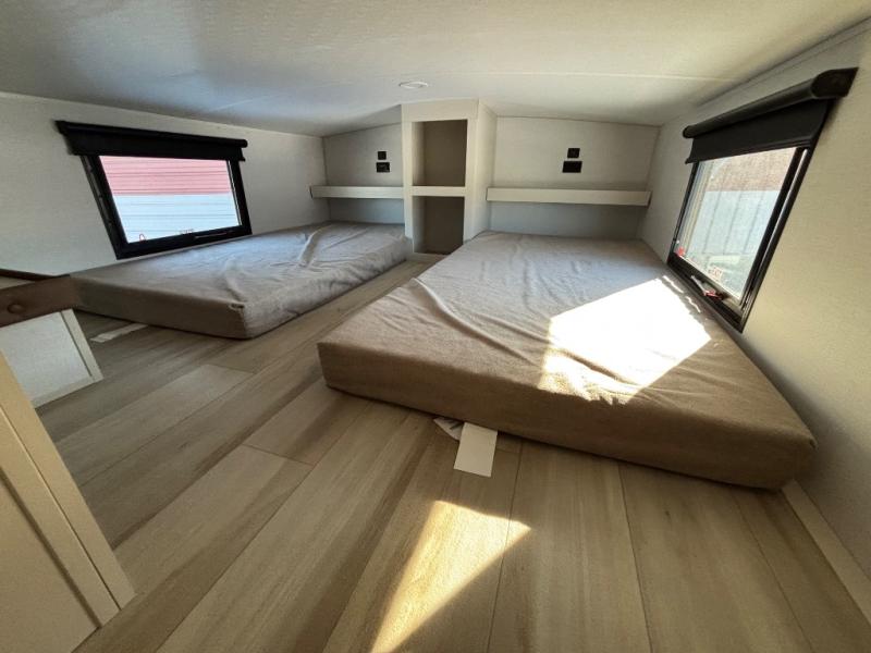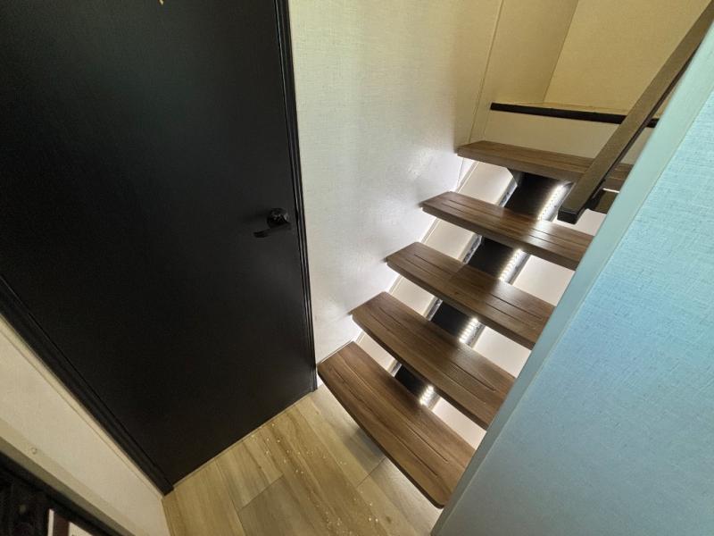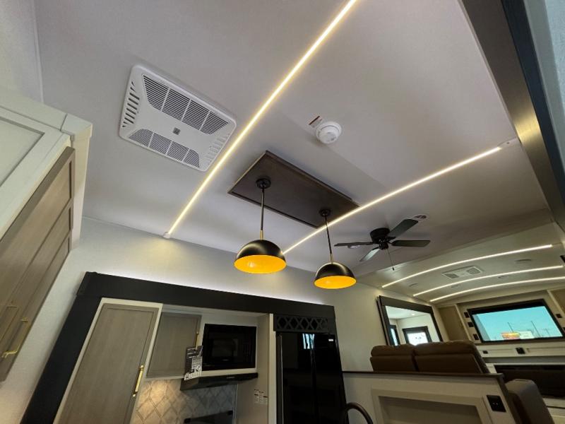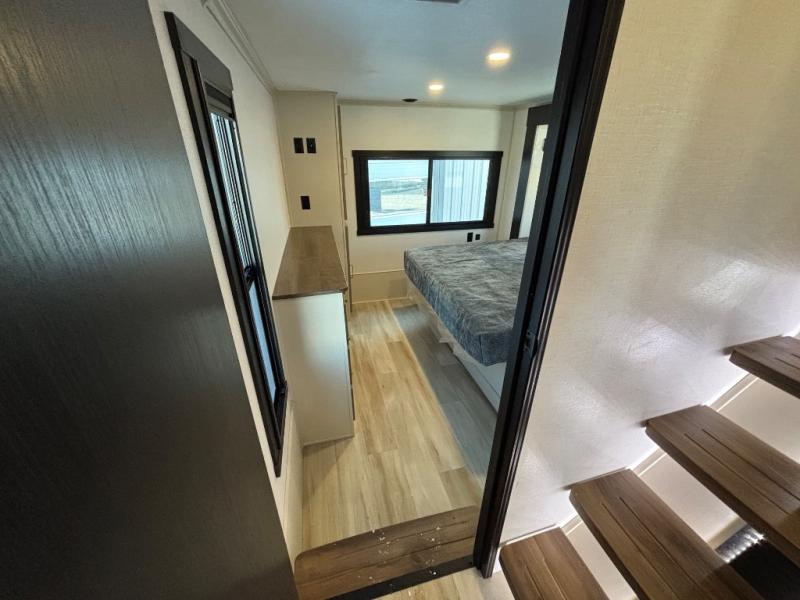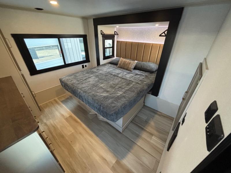 If you are looking for plenty of space, great views, and a place to call home, you have found it with this Wildwood Heritage Glen fifth wheel! The living area is separate from the kitchen and includes dual opposing tri-fold sofas with panoramic windows, theater seating with cupholders, and a 50" LED TV with a fireplace and storage along the front wall. The separate kitchen also offers lots of space with dual slides, a kitchen island, a free-standing table and chairs, and a hutch. You will find the loft stairs beside the full bathroom with a walk-in shower, and the rear private bedroom has a custom king bed slide for endless nights of rest and rejuvenation. There is so much more to enjoy from the loft above the bedroom, the pantry for lots of snack storage as well as the panoramic window in the kitchen and the residential walk-in shower in the full bathroom to mention a few.