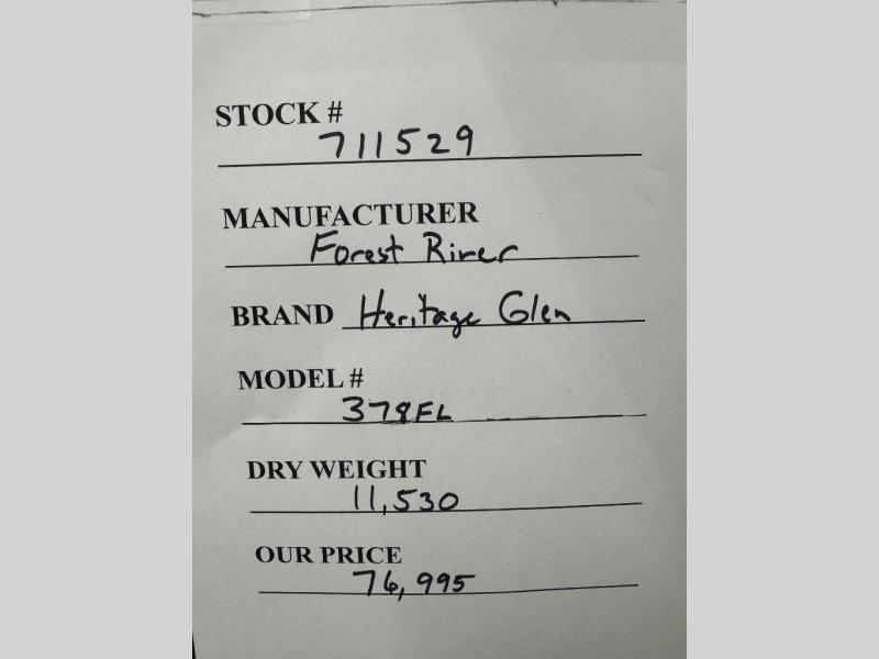 New 2026 Forest River RV Wildwood Heritage Glen 378FL Fifth Wheel