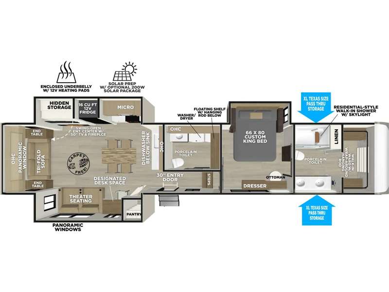 Brand new 2026 layout from Heritage Glen and boy is it a nice one! Pictures and videos do not do this floor plan justice... The entertainment/kitchen slide being larger than normal really opens up the layout and make it feel a lot wider.