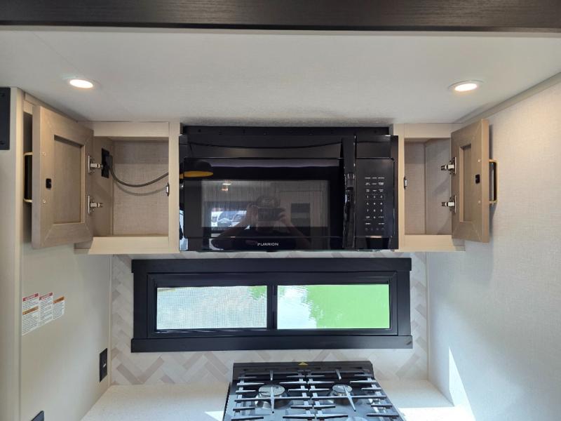 With any Wildwood Heritage Glen fifth wheel by Forest River, the quality construction, attention to detail and design along with a bright and welcoming interior allows you to relax in comfort. You'll love the high-end solid surface countertops included in the Elevated Value Package, along with a JBL sound system, full-length barreled ceilings, and an ultimate interior lighting upgrade. The included Expedition Package features an Accesibelly underbelly panel with 12V tank heaters, nitrogen-filled tires with aluminum rims, and a spacious 30" wide main entry door with a window. The Lippert On-The-Go ladder prep and back-up camera prep let you customize your fifth wheel even more, and the LED awning, front cap, marker and taillights will make it easier than ever to set up camp!