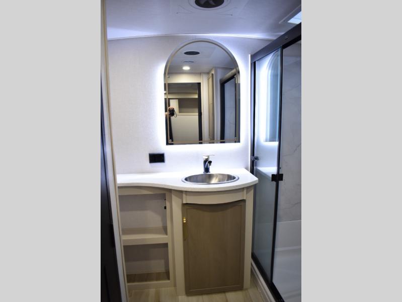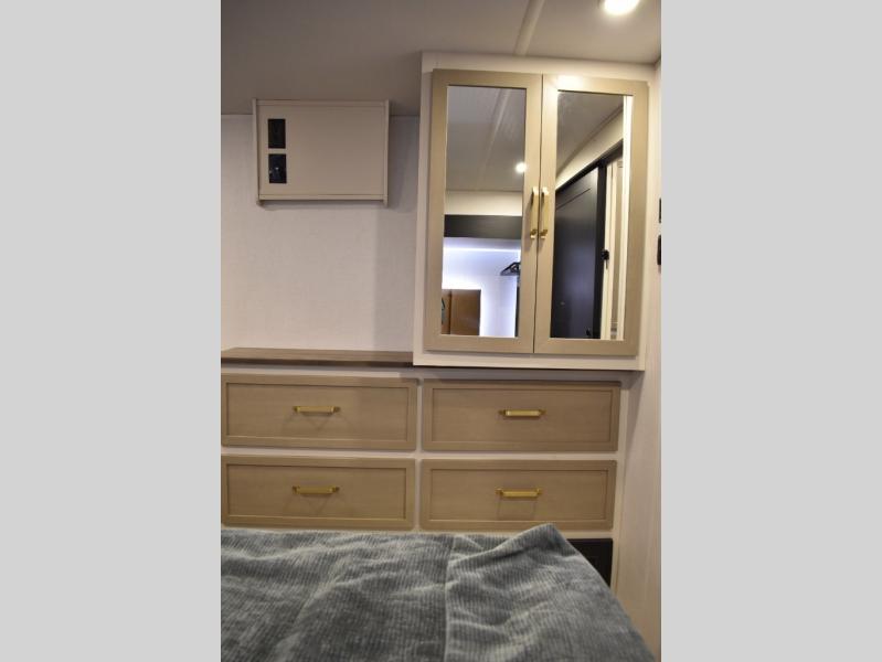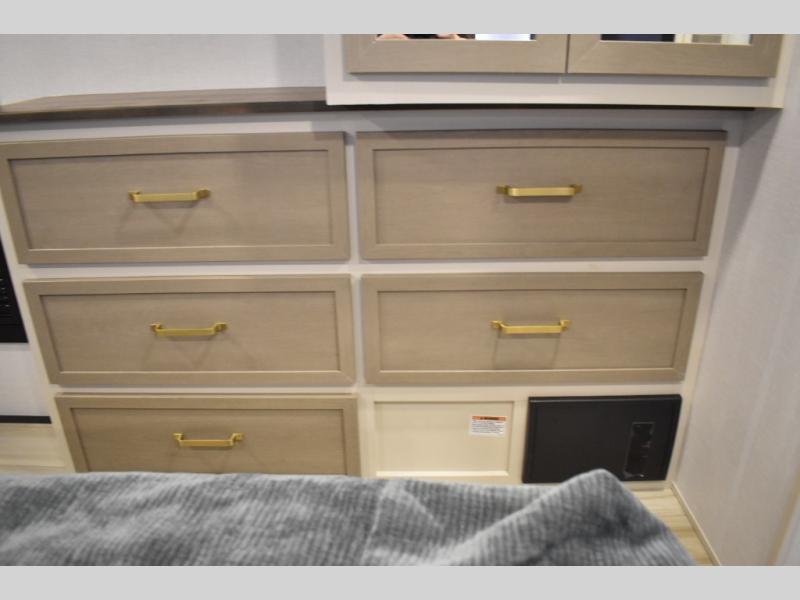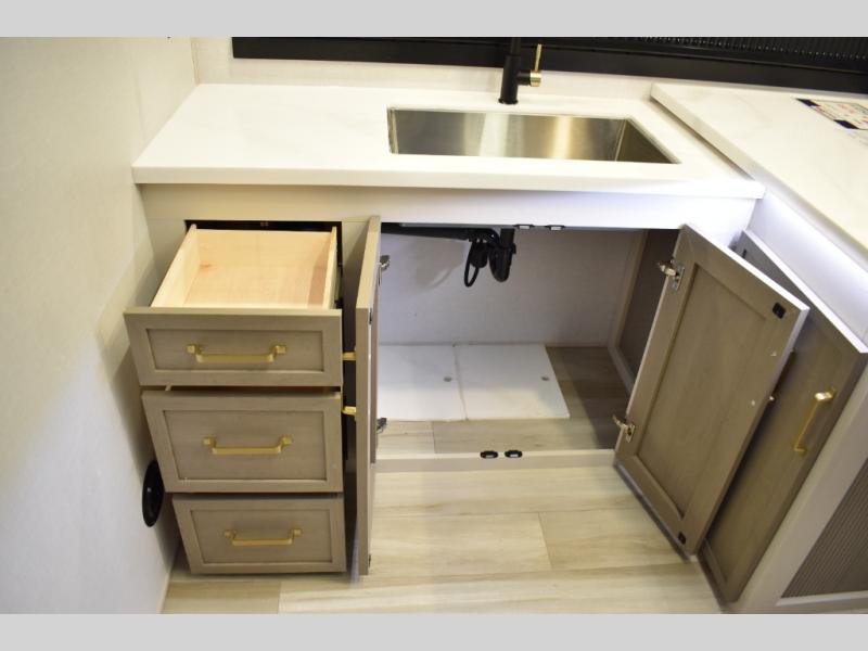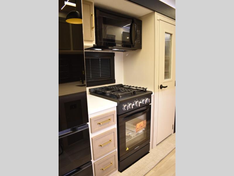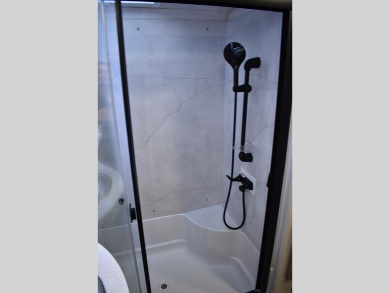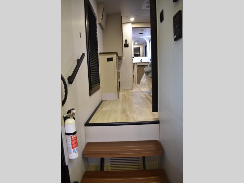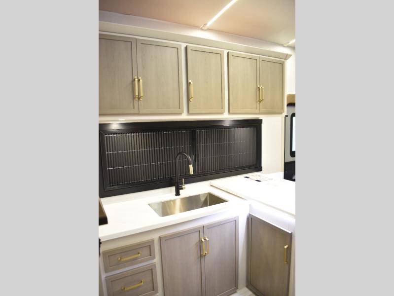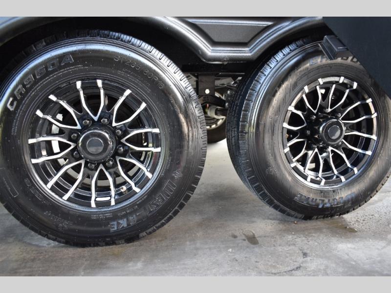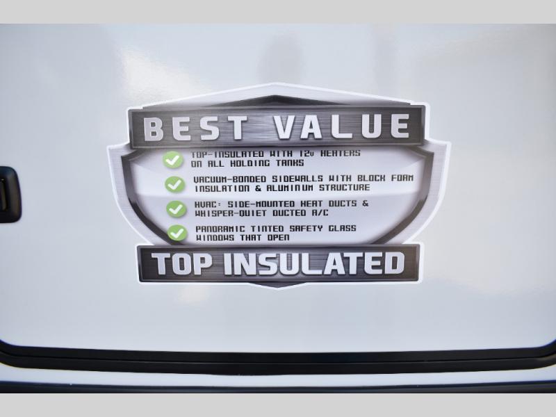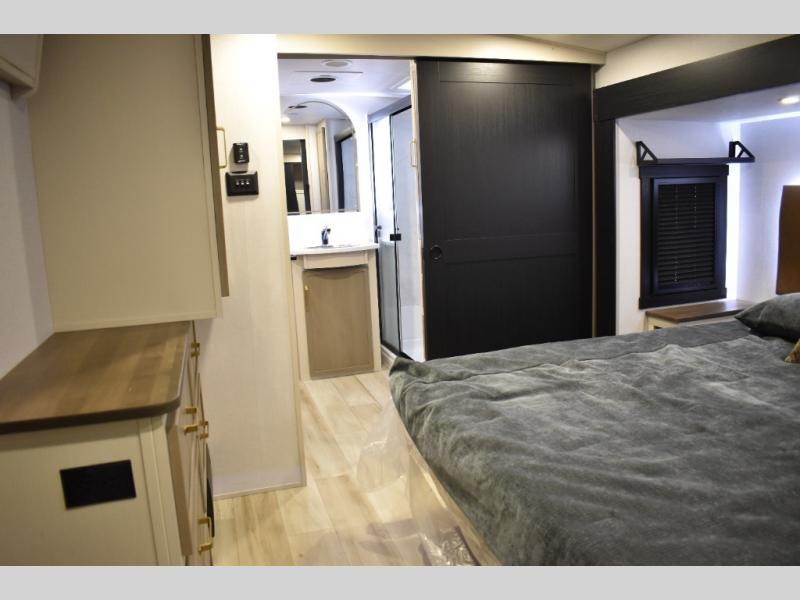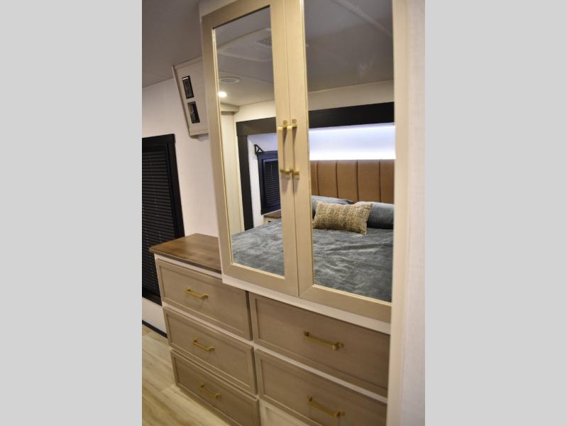 Each Wildwood Heritage Glen Elite Series fifth wheel by Forest River is constructed with vacuum bonded "Aluma Frame" sidewalls and floor, block foam insulation, and an AccessiBelly underbelly with 12V tank heaters on all holding tanks to help extend your camping season. There is an exterior docking station with hot and cold water, along with power stabilizer jacks and landing gear, and Maxxis radial tires with black accented rims. There is also an in-line water filtration system, an RV Airflow system, and an extra large pass-through storage with Slam Latch baggage doors for hassle-free packing. You will love the high-end solid surface countertops inside, along with gold-accented faucets with stainless steel sinks in all bathrooms, and summer wind colored horizontal plank linoleum flooring that is both stylish and easy to keep clean!