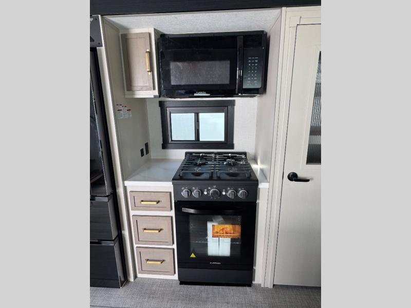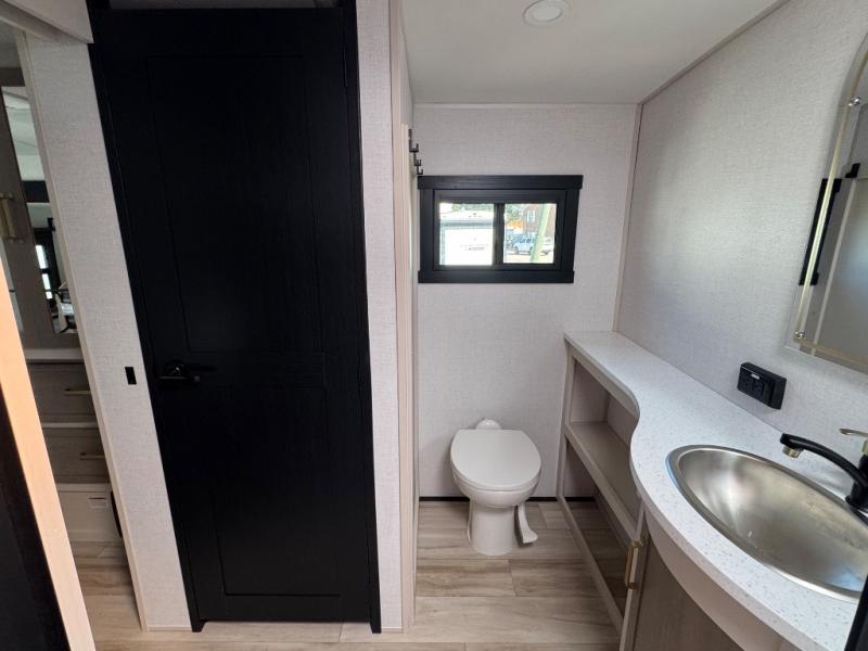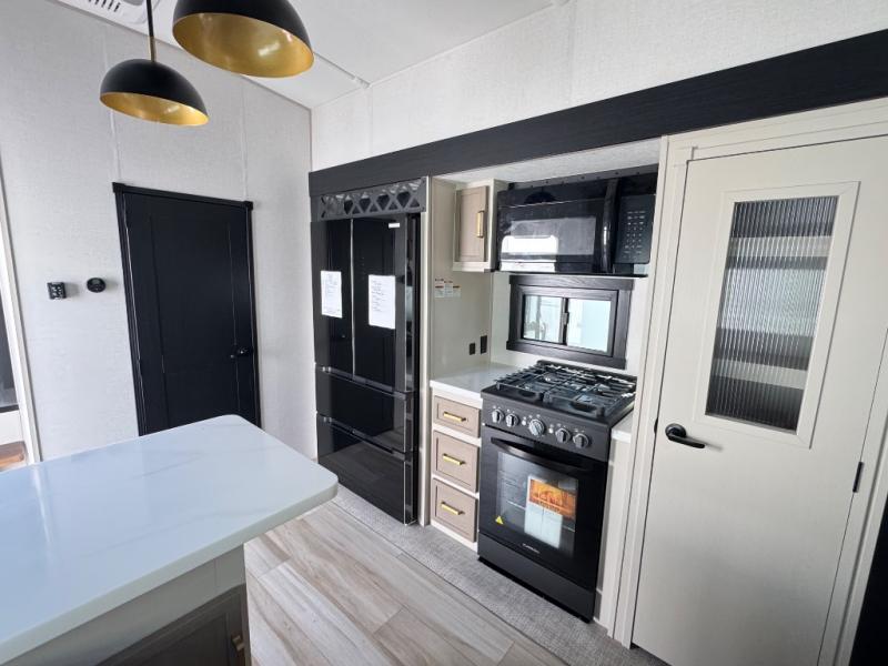 Each Wildwood Heritage Glen Elite Series fifth wheel by Forest River is constructed with vacuum bonded "Aluma Frame" sidewalls and floor, block foam insulation, and an AccessiBelly underbelly with 12V tank heaters on all holding tanks to help extend your camping season. There is an exterior docking station with hot and cold water, along with power stabilizer jacks and landing gear, and Maxxis radial tires with black accented rims. There is also an in-line water filtration system, an RV Airflow system, and an extra large pass-through storage with Slam Latch baggage doors for hassle-free packing. You will love the high-end solid surface countertops inside, along with gold-accented faucets with stainless steel sinks in all bathrooms, and summer wind colored horizontal plank linoleum flooring that is both stylish and easy to keep clean!
