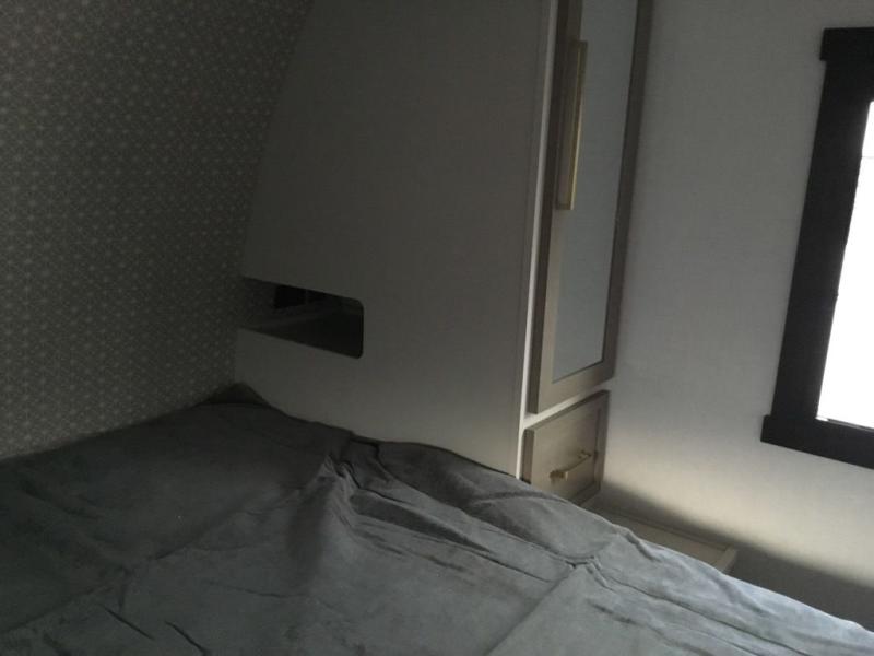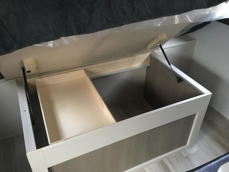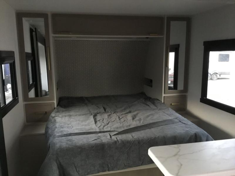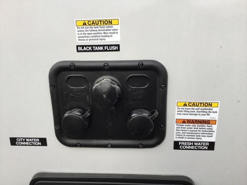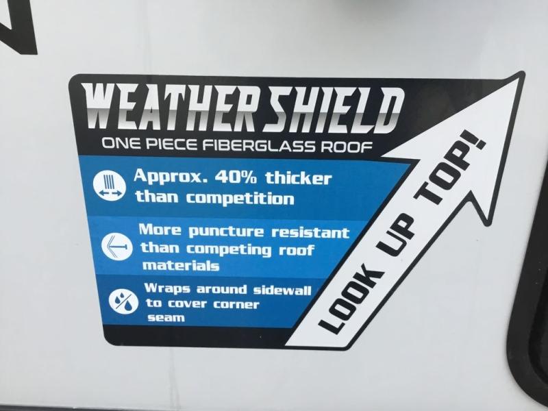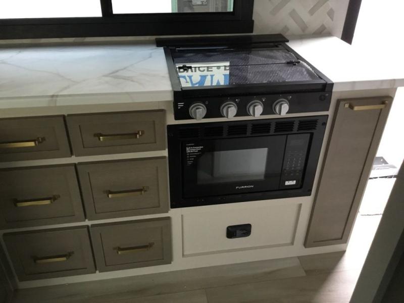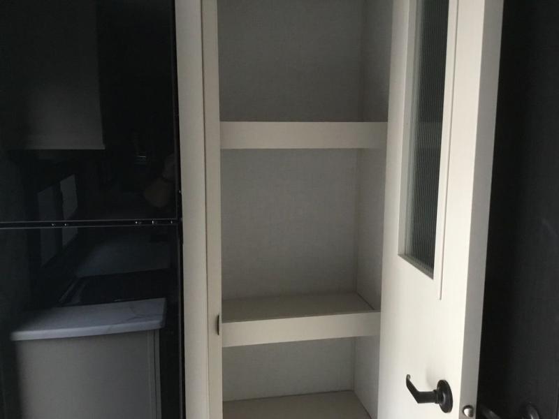 You and your favorite person can enjoy a spacious kitchen and living area thanks to the slide out, once inside leave your jackets on the coat hooks and you can relax on the theater seating slide out. Outside you will find a Texas-sized pass-through storage to grab your camp chairs and games from. Back inside you can take a restroom break in the full bathroom which also includes a shower and storage. The cook will appreciate having a pantry and a 12V refrigerator a few steps away from the microwave and stovetop. When it is time to relax, the front queen bed will be calling your name!