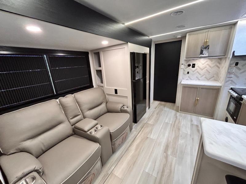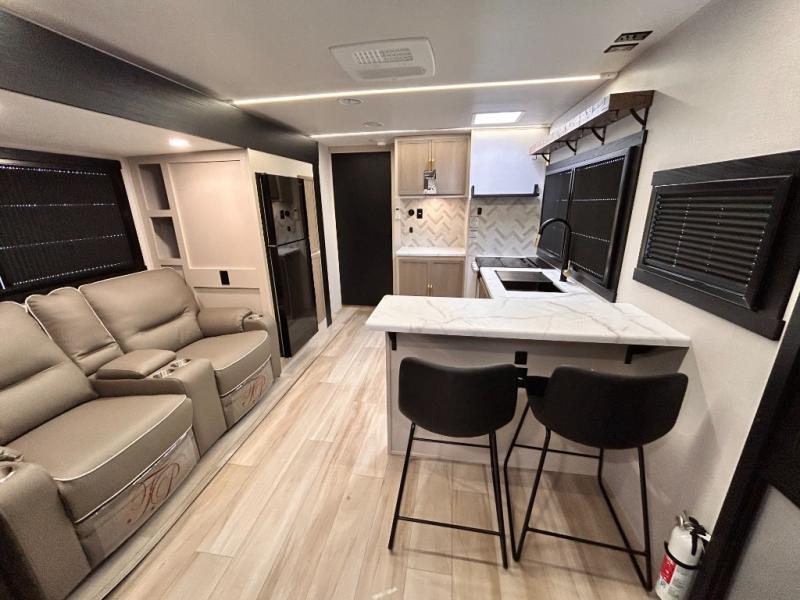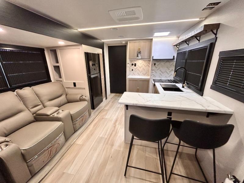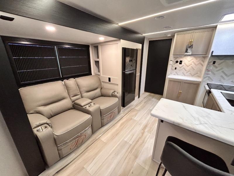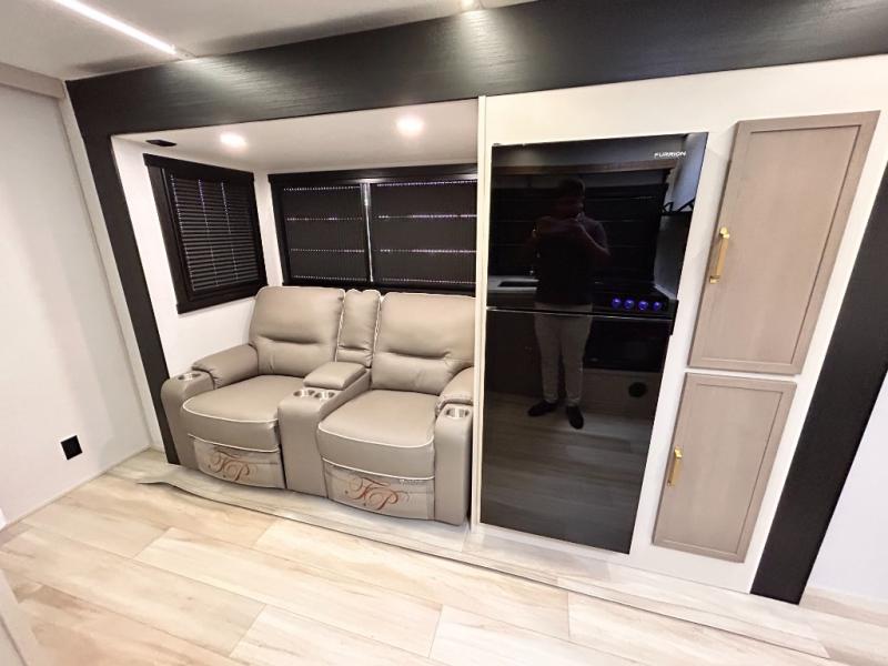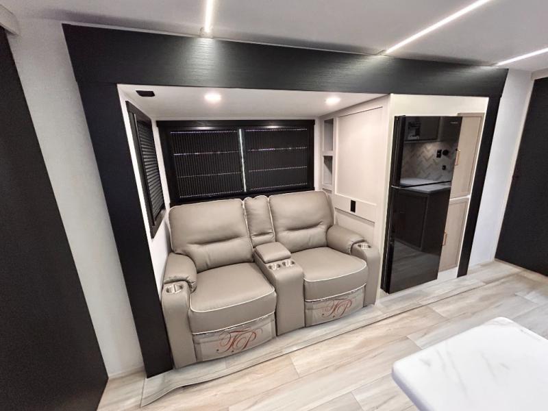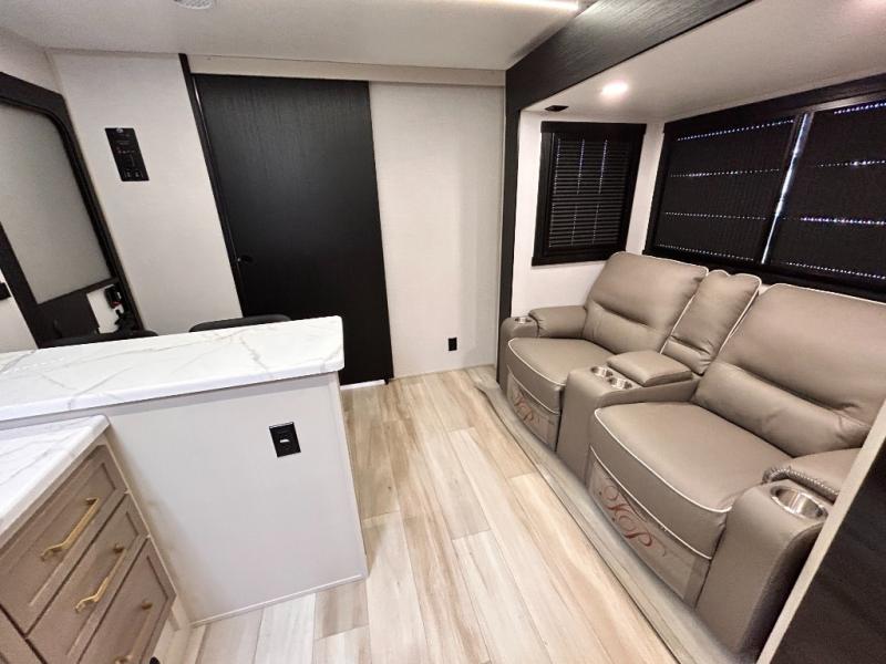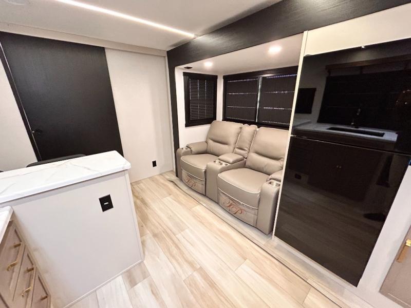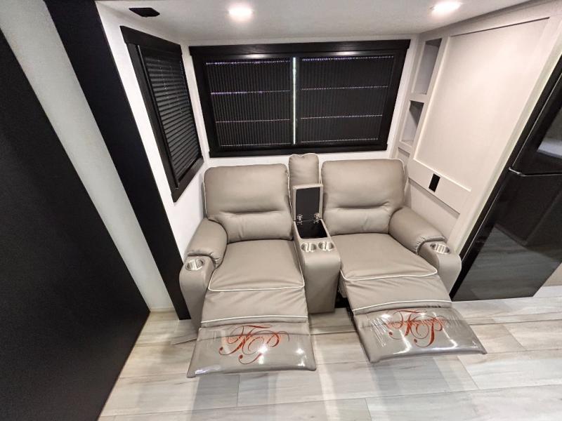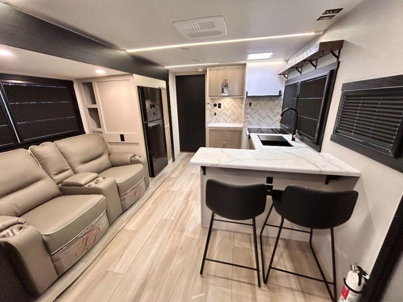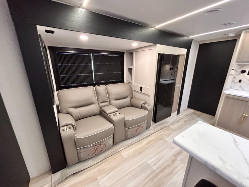 REAR BATH / THEATER SEATING / FRONT PRIVATE BEDROOM / POWER TONGUE JACKS !!