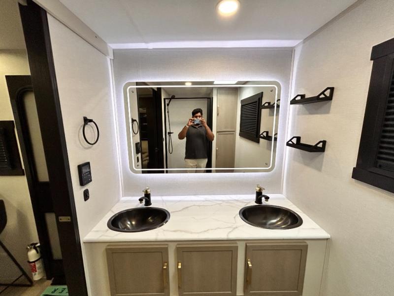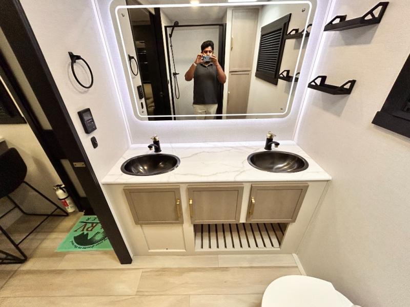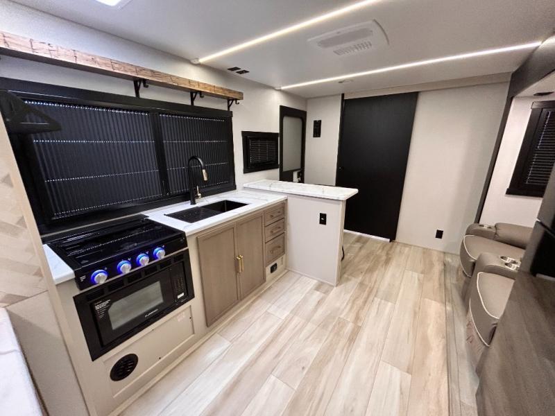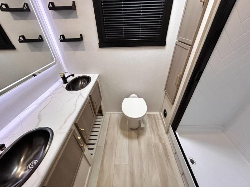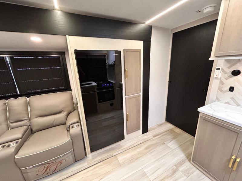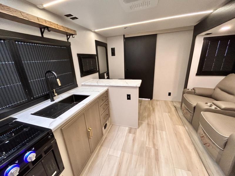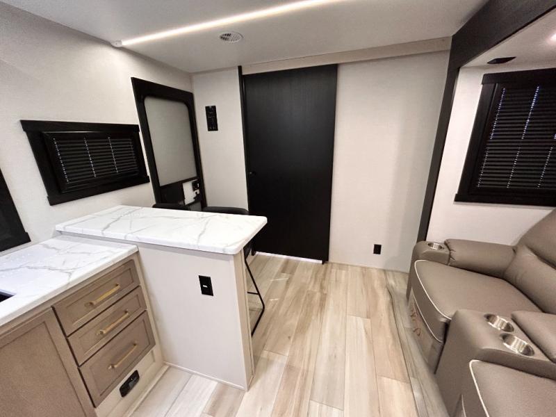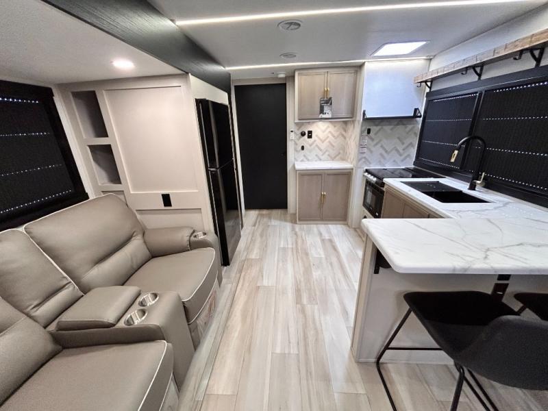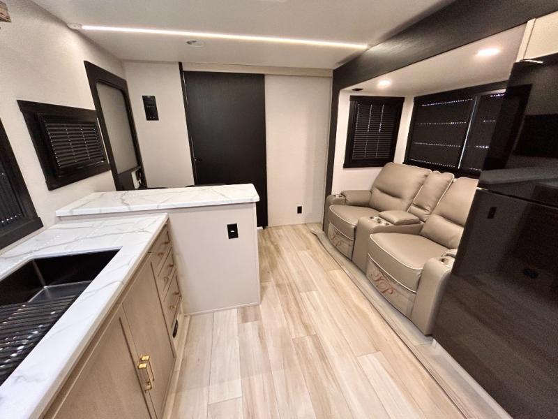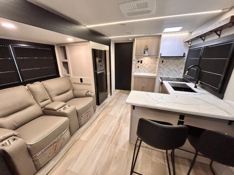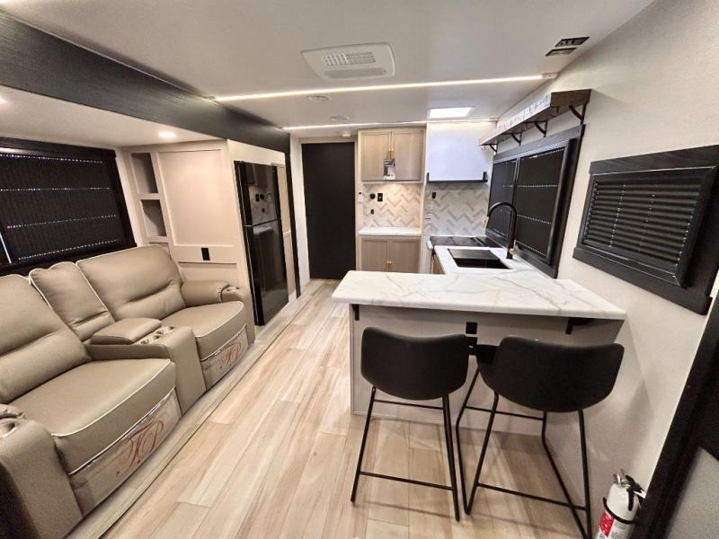 REAR BATH / THEATER SEATING / FRONT PRIVATE BEDROOM / POWER TONGUE JACKS !!