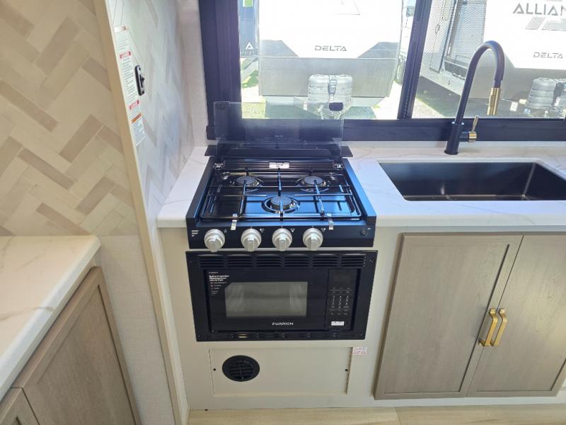 The Wildwood Heritage Glen Hyper-Lyte travel trailer by Forest River offers stability with a wide stance axle system, easy setup with a power tongue jack with an LED docking light, and safe entry with the Step Above aluminum entry steps. The interior includes Temple Cherry cabinetry with matte gold hardware, hidden hinges on the cabinet doors, and a residential single bowl undermount sink. You will also find a back-up camera prep and solar prep, an outdoor shower, and many more exterior conveniences.