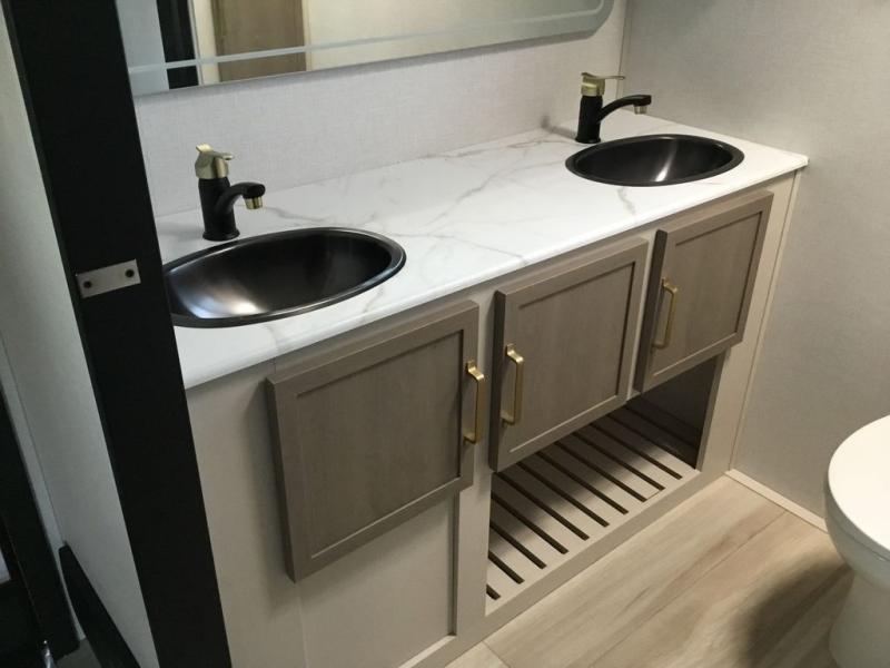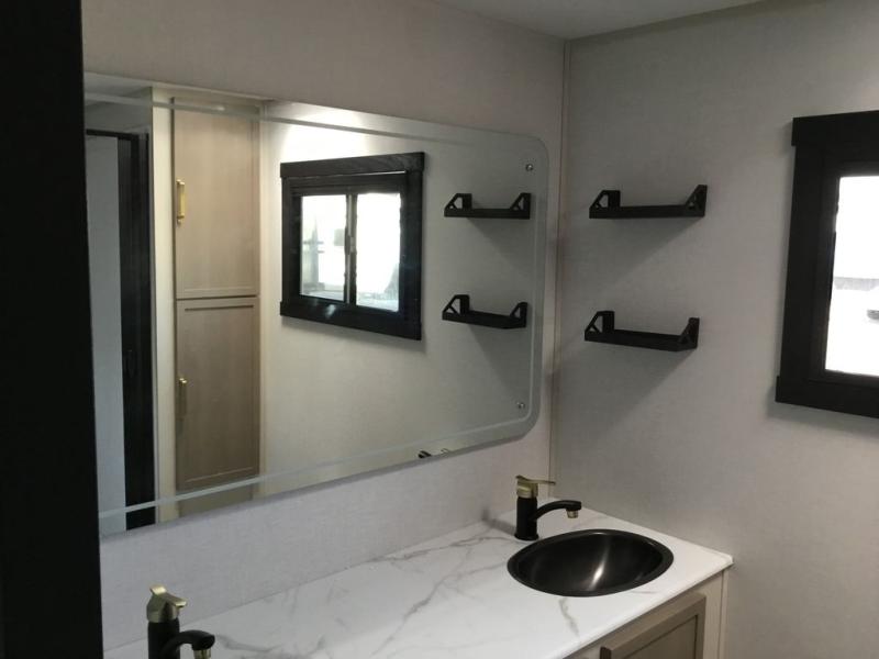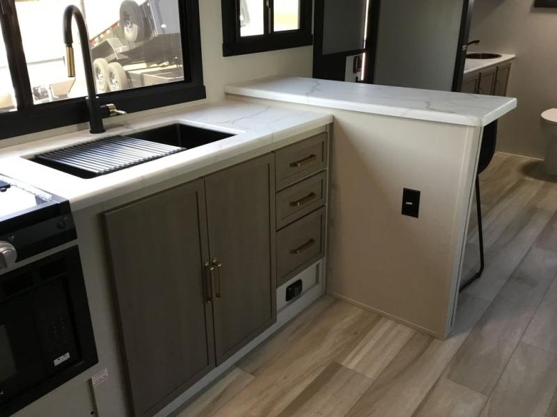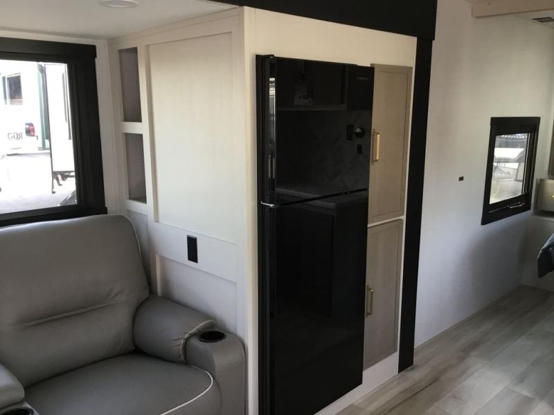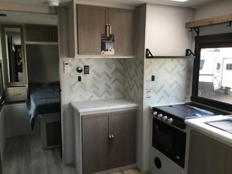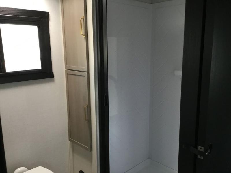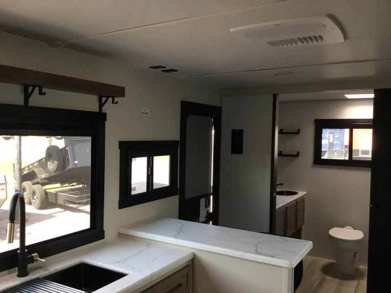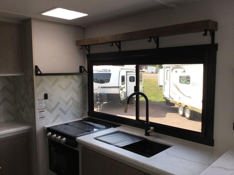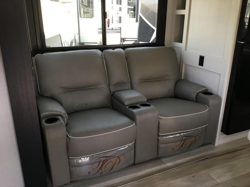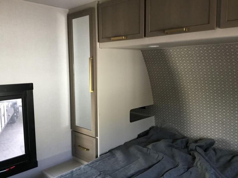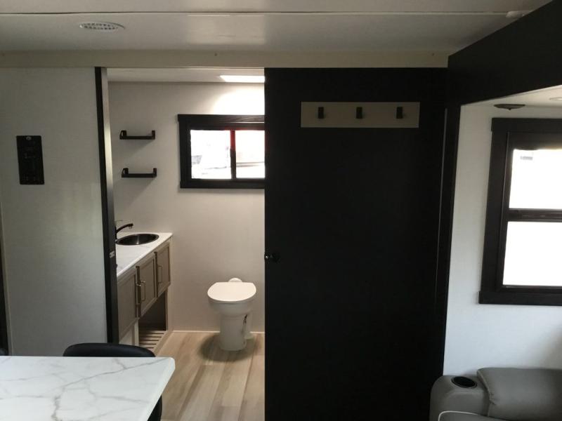 If you've been looking to upgrade your RV, the time is now and the this travel trailer is the one! You will love being able to cook indoors on the three burner cooktop or outdoors on the exterior griddle, plus there is a 19' awning with LED lights for an inviting space. Inside, you can dine around the U-shaped dinette, and this area can become sleeping space for one to two guests. Kick up your feet on the theater seating across from the 40" LED TV and fireplace, then clean up in the walk-through bath before bed. Speaking of bed, you'll love the walk-around queen bed with Versa-Tilt in the master bedroom, and you'll find the second entry door here as well for convenience!