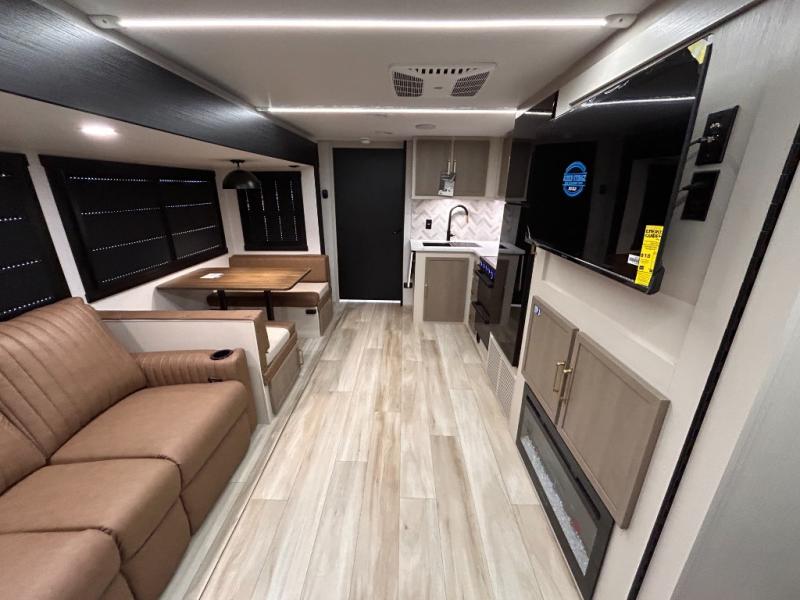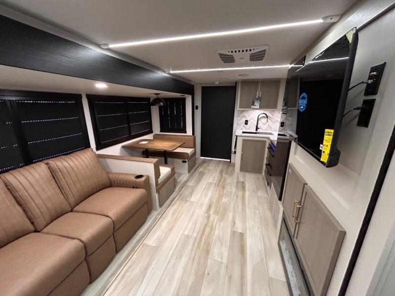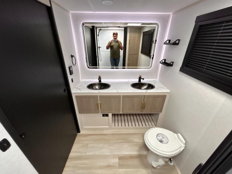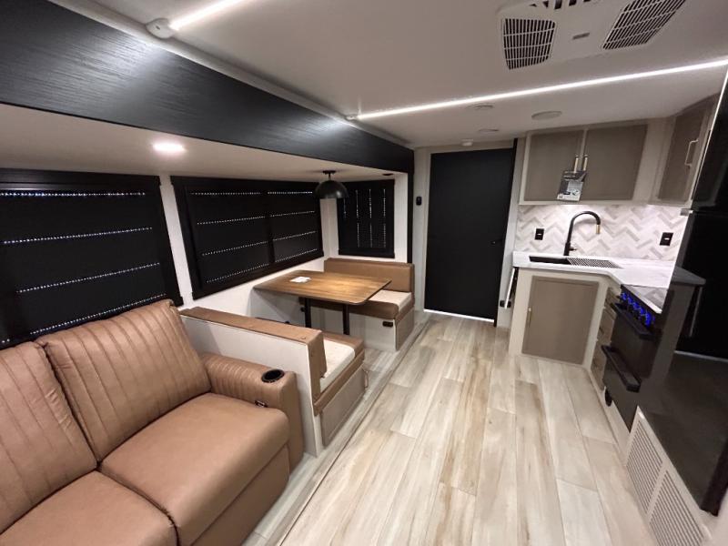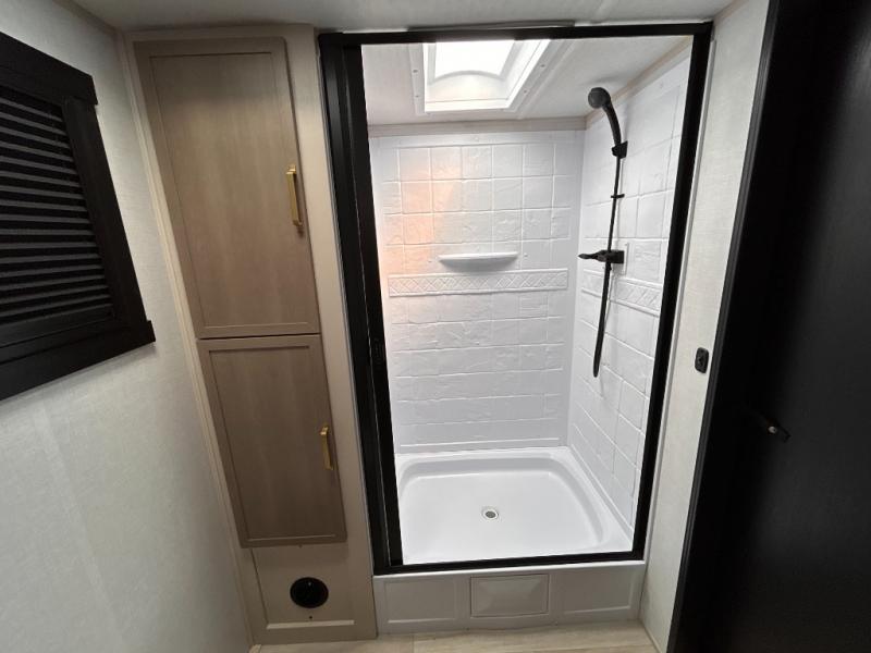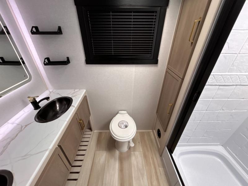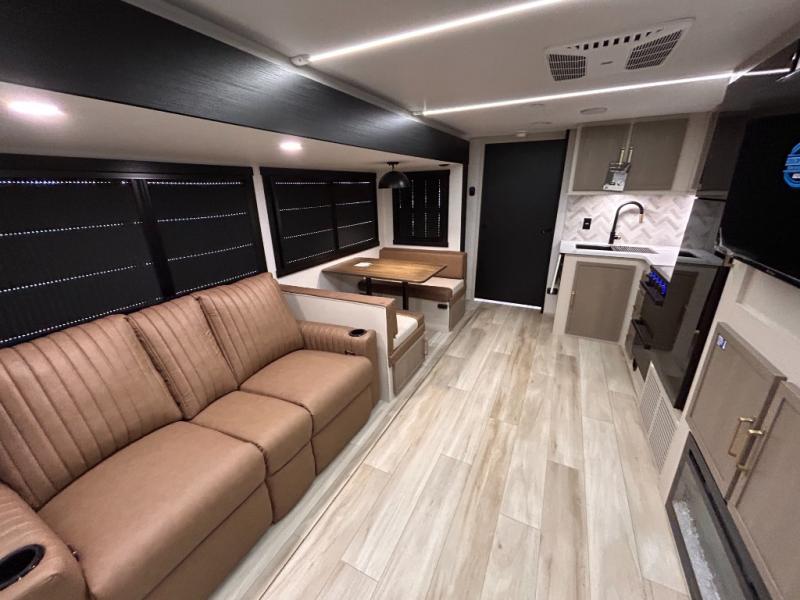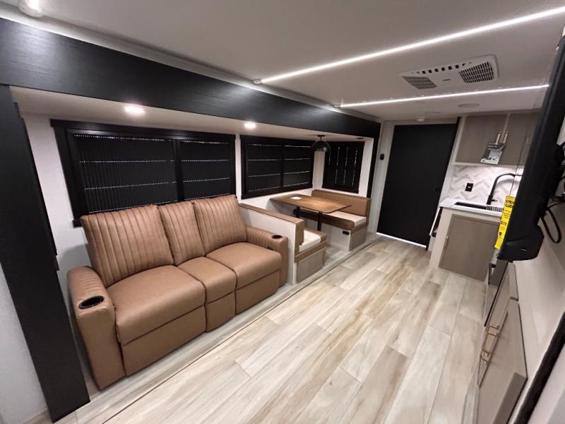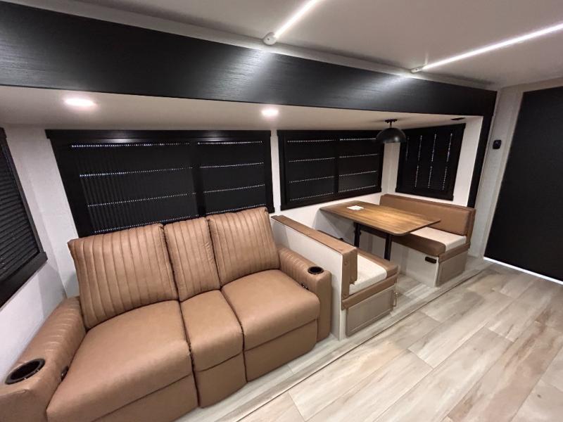 REAR BATHROOM / VERSA TILT QUEEN BED / THEATER SEATING / OUTDOOR REFER / 200WATT SOLAR PANEL