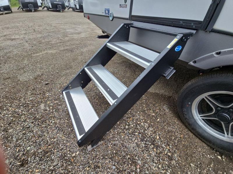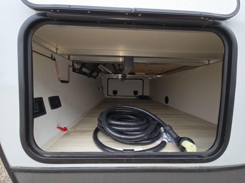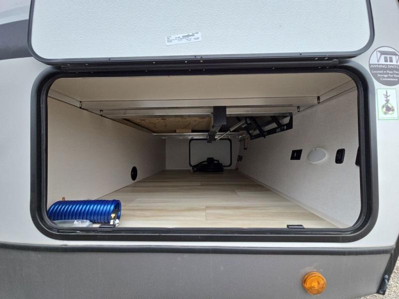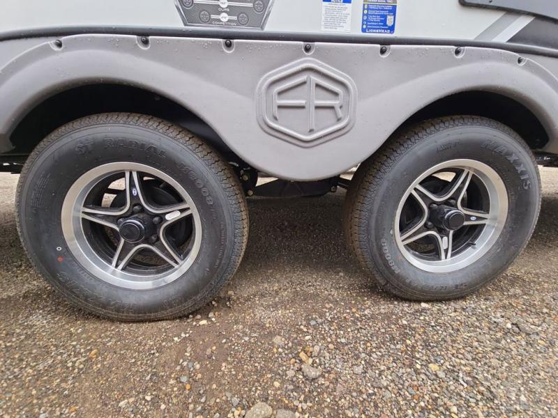 The Wildwood Heritage Glen Hyper-Lyte travel trailer by Forest River offers stability with a wide stance axle system, easy setup with a power tongue jack with an LED docking light, and safe entry with the Step Above aluminum entry steps. The interior includes Temple Cherry cabinetry with matte gold hardware, hidden hinges on the cabinet doors, and a residential single bowl undermount sink. You will also find a back-up camera prep and solar prep, an outdoor shower, Maxxis radial tires, and many more exterior conveniences.