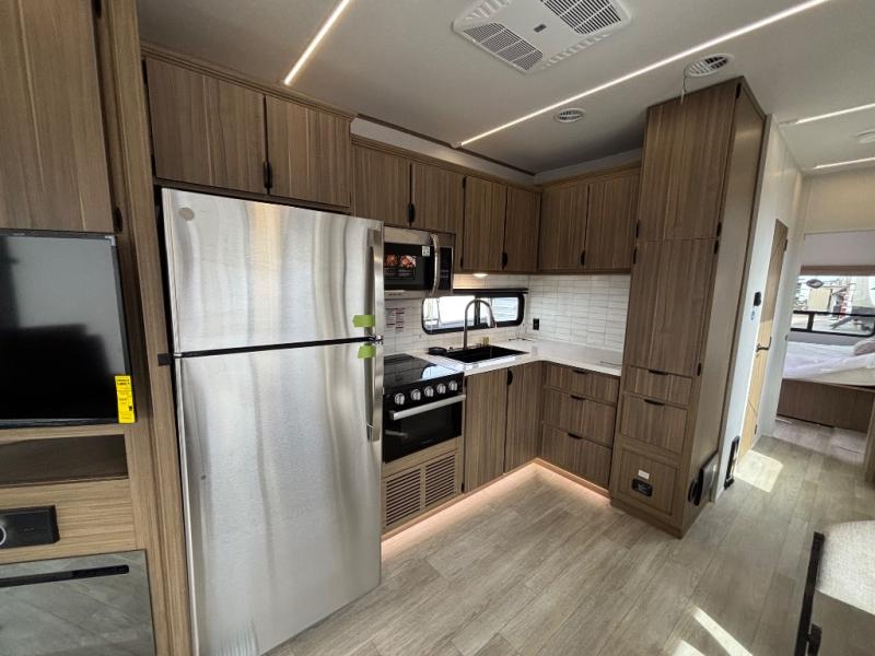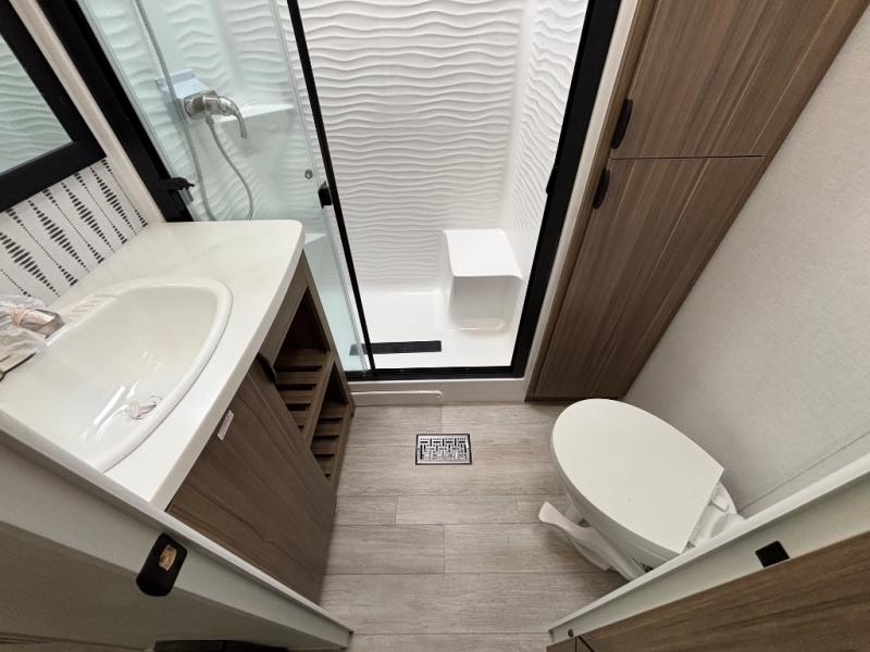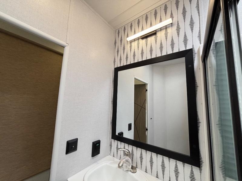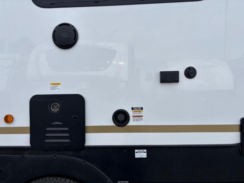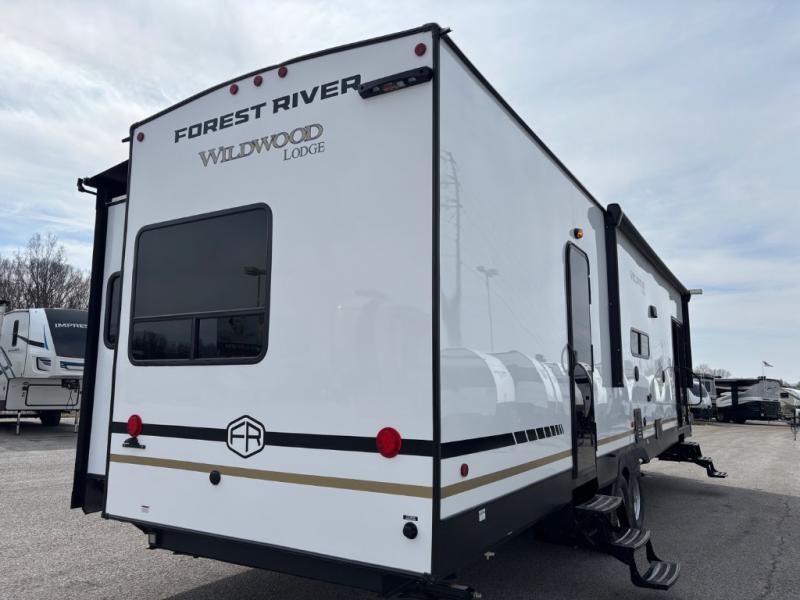 You just can't beat the Forest River Wildwood Lodge destination trailer! These trailers create the perfect camping destination in and of themselves. There is a new retro/metal redesign that is sure to turn heads at the campground, and the heated and enclosed Accessibelly provides added protection against the elements. Each model includes stainless steel kitchen appliances, a central vacuum with a sweep attachment, a Serta mattress, and kitchen backsplash to name a few comforts. Additional stand-out features include TFL cabinet doors, LED "Blade Lighting' under the awning, stylish roller shades, plus Lippert On-The-Go ladder prep for the option to add a ladder.