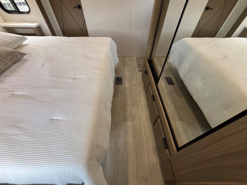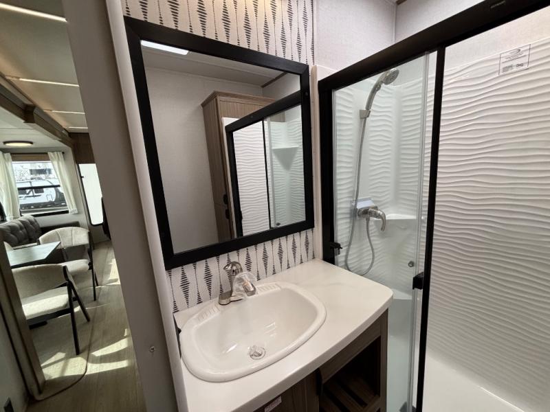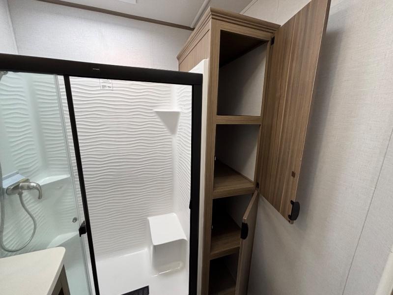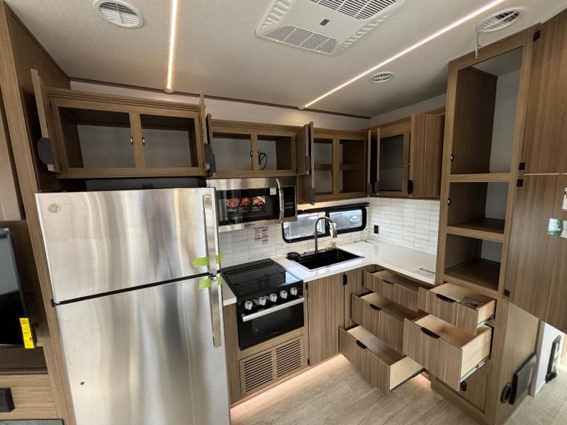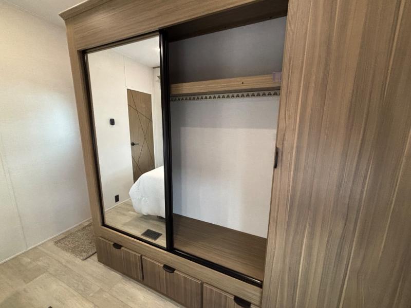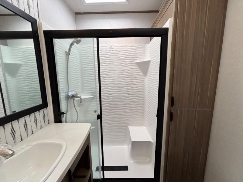 With plenty of space to stretch out and make memories, this Wildwood Lodge destination trailer is just what you need! The full bathroom is loaded with helpful amenities, like a walk-in shower and linen closet, and the bedroom is also filled with convenience as it contains a king bed with Versa-Tilt, a large closet, and the second exterior entry door. Out in the kitchen, you will find everything that you need to create family-style dinners, and the large slide is going to allow you to have plenty of space to work freely in the kitchen.