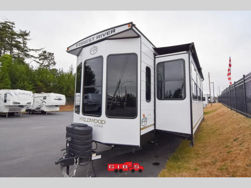 You just can't beat the Forest River Wildwood Lodge destination trailer! These trailers create the perfect camping destination in and of themselves. There is a new retro/metal redesign that is sure to turn heads at the campground, and the heated and enclosed Accessibelly provides added protection against the elements. Each model includes stainless steel kitchen appliances, a central vacuum with a sweep attachment, a Serta mattress, and kitchen backsplash to name a few comforts. Additional stand-out features include TFL cabinet doors, LED "Blade Lighting' under the awning, stylish roller shades, plus Lippert On-The-Go ladder prep for the option to add a ladder.