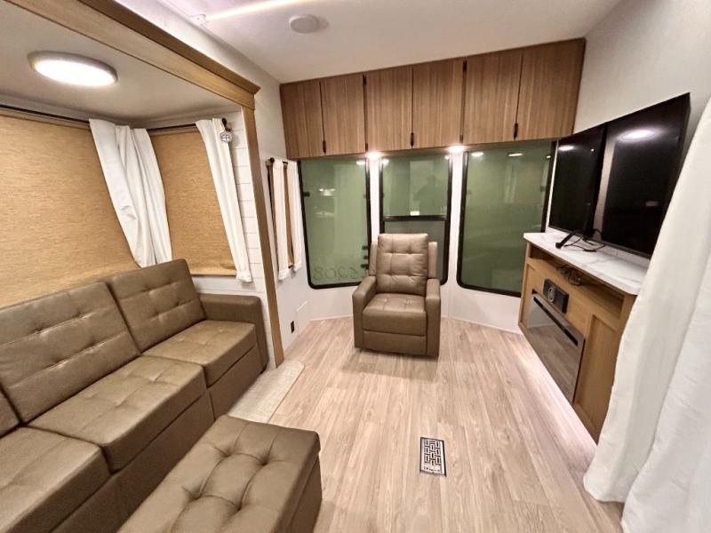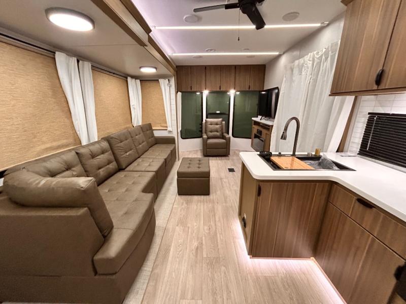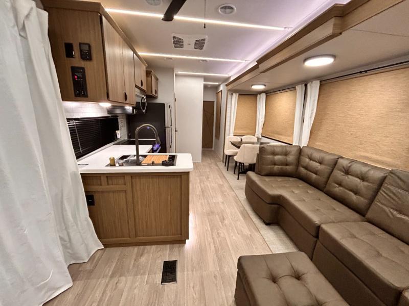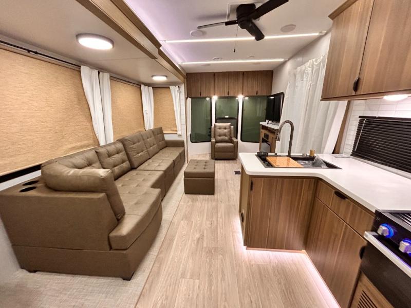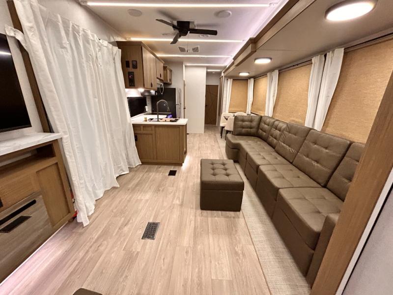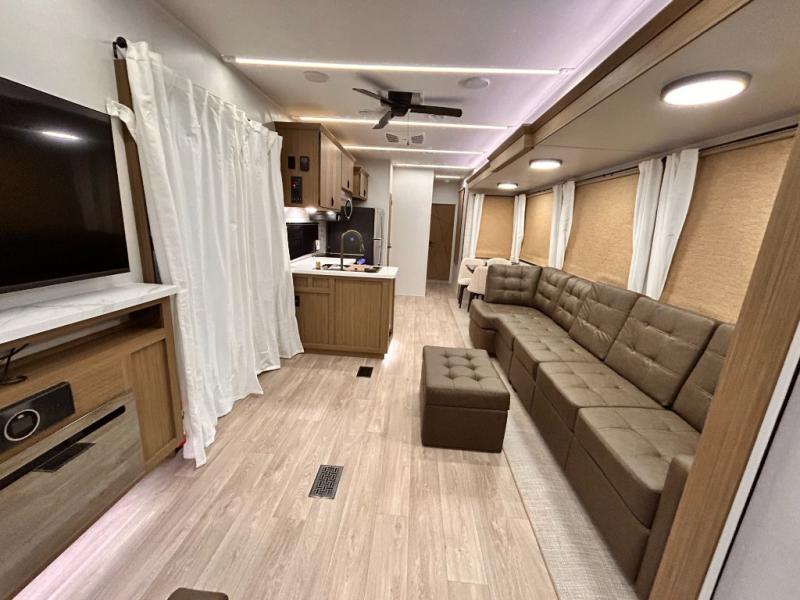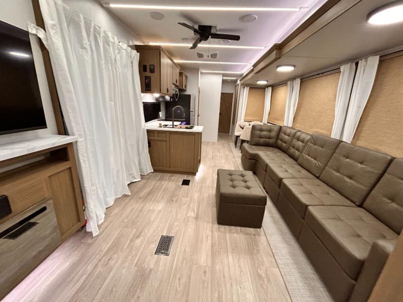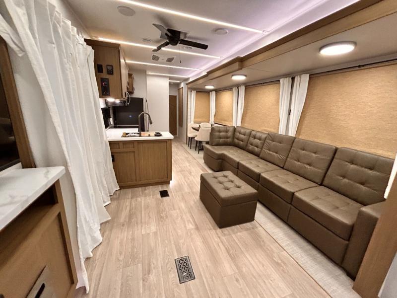 FRONT LIVING/ TWO SLIDEOUTS/ SOLID SURFACE COUNTERTOPS /TWO ENTRY DOORS/ 40” HD TV / 2 AC!!