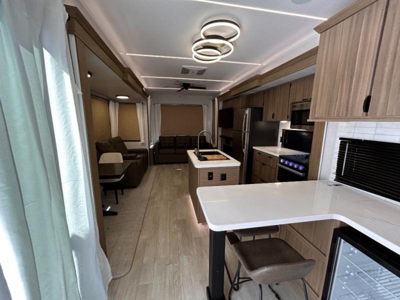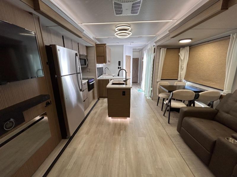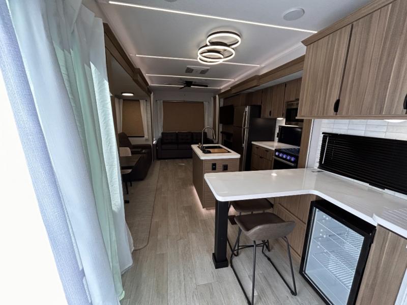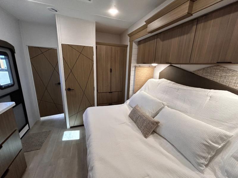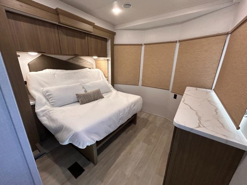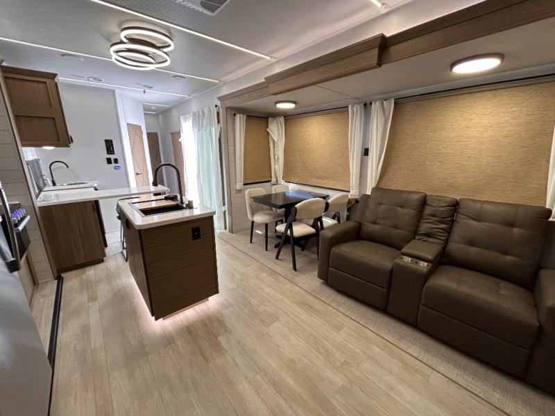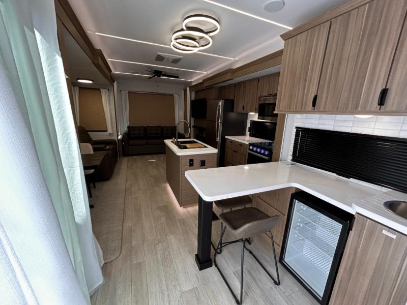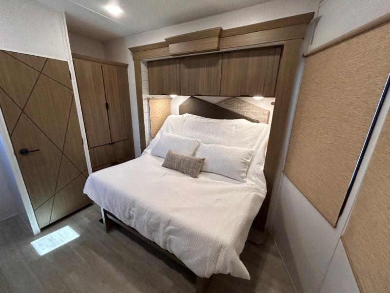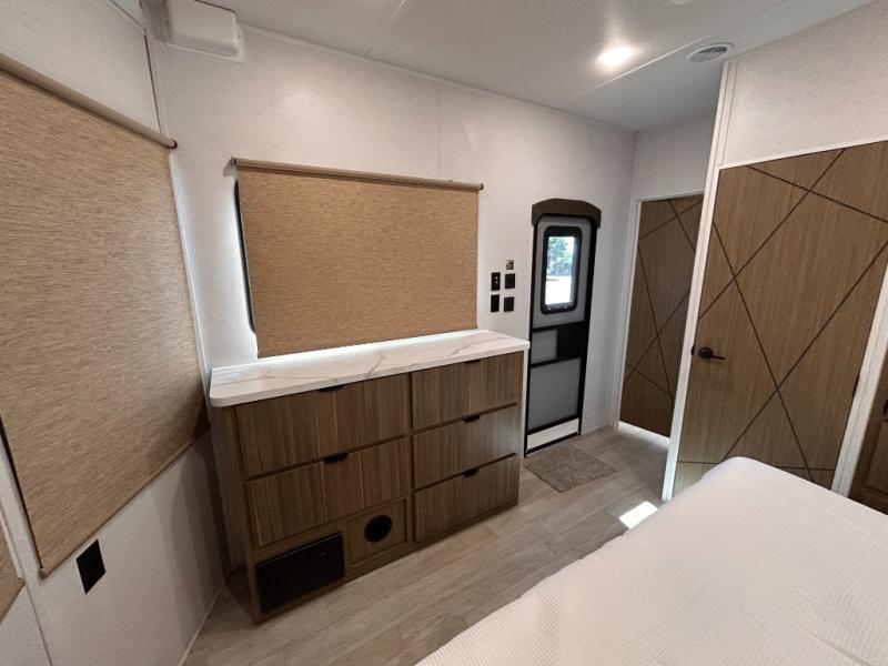REAR LIVING / FULL BAR / THEATRE SEATING / 3 SLIDE OUTS/ KING VERSA TILT BED/ TWO AC