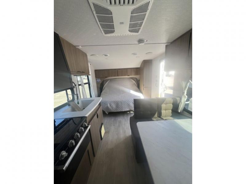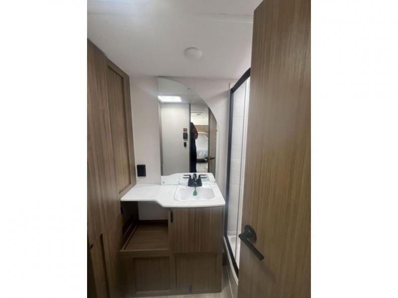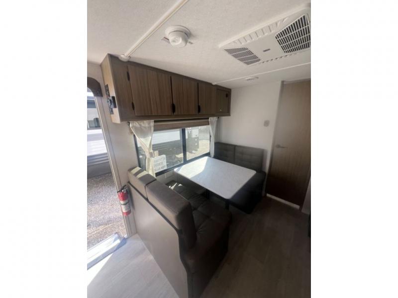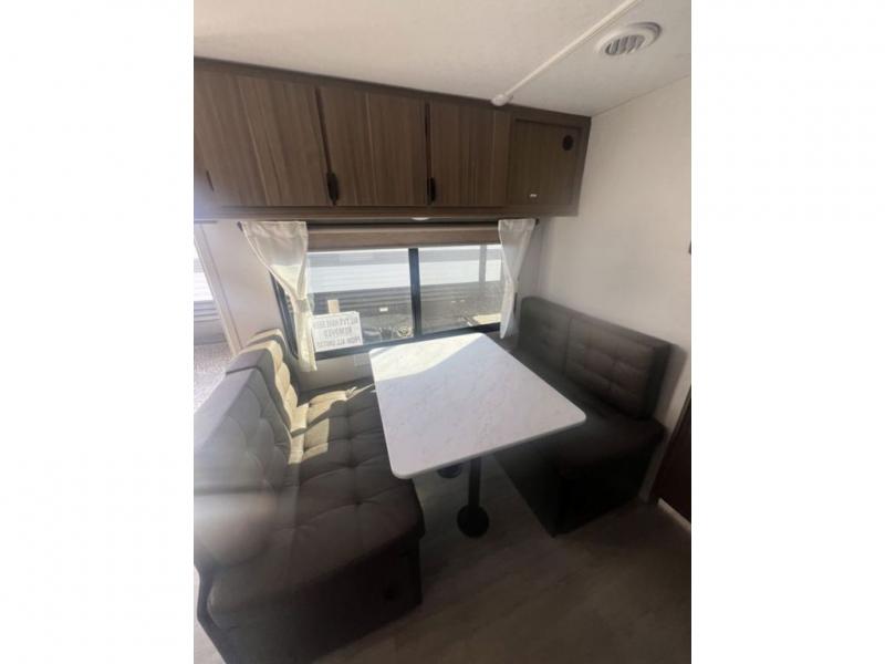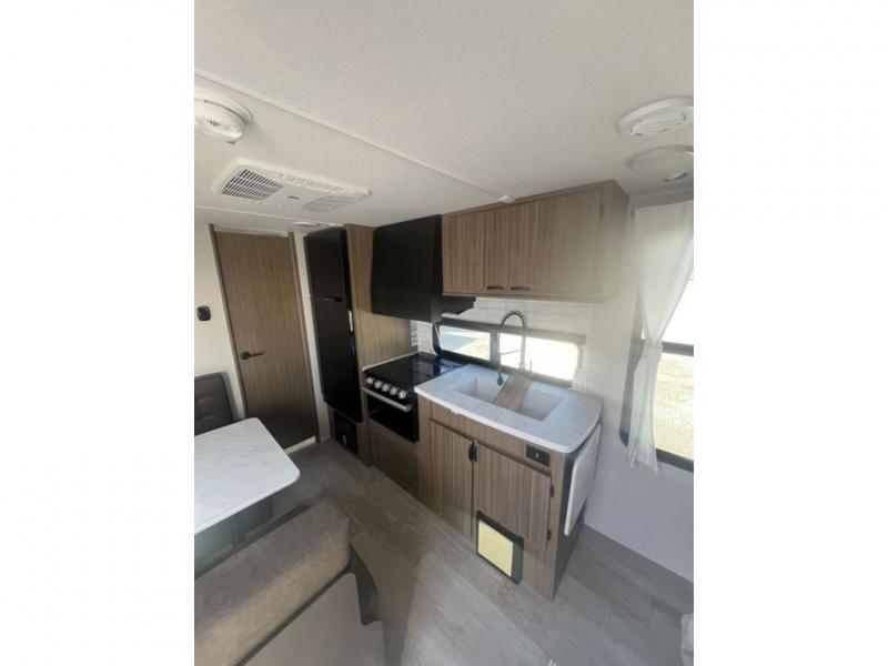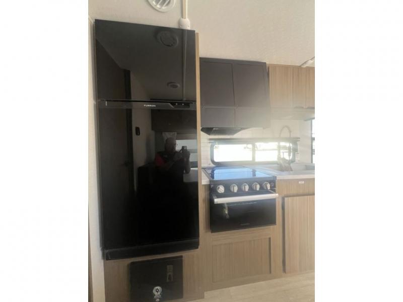 This Wildwood X-Lite travel trailer is a lightweight unit that offers you a spacious rear bathroom including a vanity with a medicine cabinet above, a walk-in radius shower, and additional mirrored linen storage for your towels and things. You will enjoy sleeping on a king-size bed each night, and the booth dinette is another place to relax and enjoy a meal, a card game, or a good book with a hot cup of coffee. The fully-equipped kitchen lets you create meals each day, and the oversized refrigerator will keep all your perishables fresh!