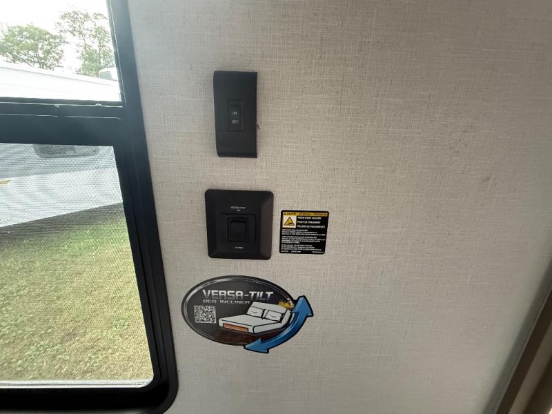 The double-size bunks pack a lot of extra sleeping space into this Wildwood X-Lite travel trailer! Some of the other comfortable features that you will find are the U-shaped dinette that has panoramic windows surrounding it, the entertainment center with an electric fireplace below, the private bedroom with a custom king bed with Versa Tilt, and the walk-in pantry that will make it easy to grab your spices and snacks. It is extremely easy to reach the bathroom from both the interior and exterior because it contains the second entry/exit door, and the oversized refrigerator in the kitchen is going to be able to hold all of the produce that your family likes to eat. You also have an 18' awning that provides a protected area to relax and enjoy nature and an exterior camp kitchen with a griddle!
