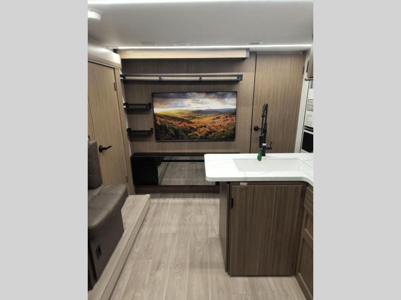 The double-size bunks pack a lot of extra sleeping space into this Wildwood X-Lite travel trailer! Some of the other comfortable features that you will find are the U-shaped dinette that has panoramic windows surrounding it, the entertainment center with an electric fireplace below, the private bedroom with a custom king bed with Versa Tilt, and the walk-in pantry that will make it easy to grab your spices and snacks. There is also a full bath with a walk-in shower plus a fully equipped kitchen, allowing you to make your best meals. Outside, you'll have an 18' awning that provides a protected area to relax and enjoy nature and a full pass-thru storage for all your camp gear!